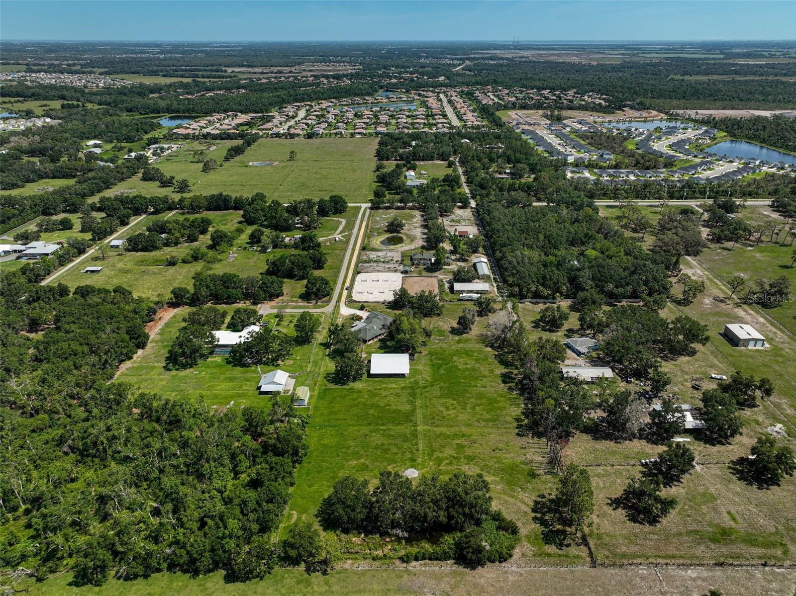 A Slice of Old Florida Charm, Luxurious 5-Acre Equestrian Retreat with Barn & Scenic Views! Escape to a lifestyle of serenity, space & timeless southern charm in this exceptional estate. Perfectly positioned just minutes from Lakewood Ranch yet tucked away on a quiet country road, this custom-built home offers the ultimate blend of privacy, elegance & freedom, w/ no HOA & over five acres of fully fenced land to call your own. From the moment you arrive, the home’s charm is undeniable, welcoming you with an expansive covered front porch adorned w/ stately columns & elegant slate tile underfoot. This inviting space sets the tone for the entire property, offering a peaceful place to sip your morning coffee or enjoy quiet evenings surrounded by lush landscaping & flowering accents. Designed for both comfort + function, the residence spans 2,543 sqft & features 3 bedrooms, 3 full bathrooms & a thoughtful split floor plan that offers flexibility for families, guests, or multigenerational living. Step inside to find light-filled living spaces with vaulted ceilings, flowing tile floors in the kitchen, dining & utility areas & wood-look tile running through the living room & guest wing. The living room is warm & inviting with rich wood-paneled ceilings, a cozy brick wood burning fireplace, elegant upgraded fixtures & beautiful crown molding, details that elevate the sense of classic Southern refinement. At the heart of the home, the chef’s kitchen is a dream with solid wood cabinetry, stainless steel appliances, and additional counter space are perfect for prepping meals or gathering with friends. A charming dinette just off the kitchen offers French doors that open to the oversized screened lanai, while the formal dining room, with its own crown molding, sets the tone for more elegant occasions. The primary suite is a true retreat, w/ French doors to the lanai, walk-in closet & a spa-like en-suite bathroom featuring a jetted tub, dual vanities & a separate shower. A split guest suite functions beautifully as a second primary, w/ its own sliding glass door to the patio, a walk-in closet & a recently updated en-suite bathroom w/ a new vanity, fixtures, chair rail molding, shiplap accents & a beautifully tiled shower. The third bedroom is ideal as a flex space, office, or den & sits adjacent to a fully updated bathroom w/ shiplap & new vanity. All windows + doors have been upgraded to hurricane-rated impact glass including both the living room & guest suite sliders. These open to one of the home’s standout features: a stunning screened paver patio. Partially covered & surrounded by lush views, this relaxing outdoor haven is perfect for enjoying morning coffee, entertaining guests, or simply taking in the beauty of your land. Outside, the property comes alive with opportunity. A 59’ x 56’, 4-stall (12x12 each) center-aisle barn w/ 12x24 tac room + workshop, electric & water is ideal for horses & the cross-fenced pastures, shaded by mature oak trees, create a picturesque & functional setting for a hobby farm or equestrian use. Raised garden beds, butterfly gardens, vibrant landscaping & whimsical sitting areas add to the charm & create peaceful spaces to unwind. W/ no deed restrictions & quick access to I-75, top-rated schools & all the amenities of Lakewood Ranch + East Bradenton, this home is a rare find. Beautifully realized, meticulously maintained & move-in ready. This isn’t just a home, it’s a lifestyle, ready to be enjoyed for years to come!