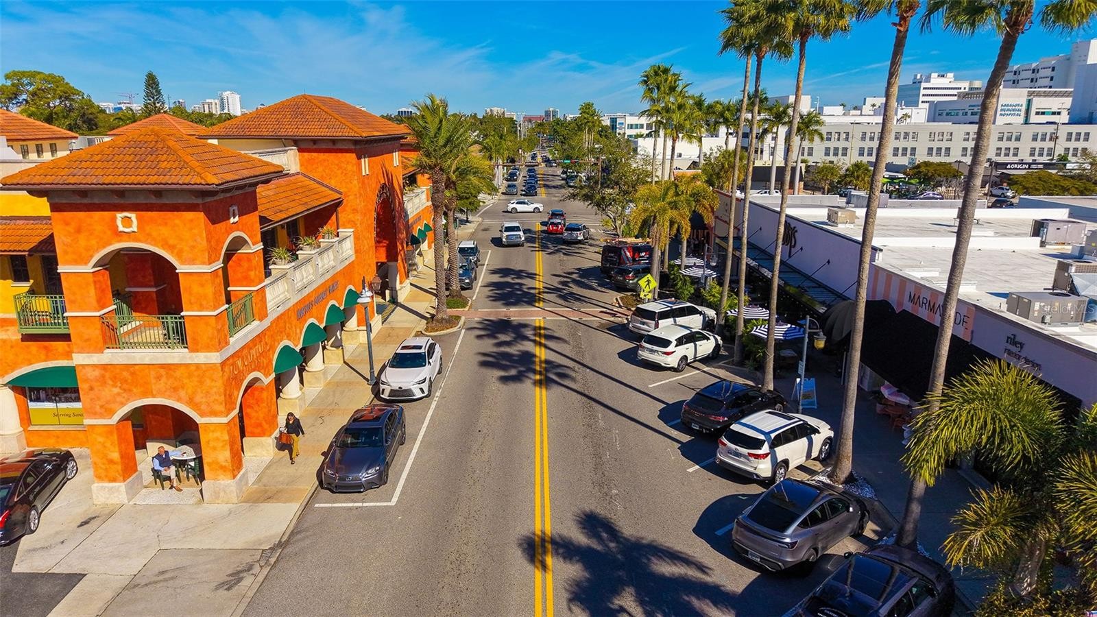 Exceptional Living in Sarasota's Premier Southside Village. Discover quality living in one of Sarasota's most sought-after addresses. This beautifully maintained 3-bedroom, 2.5-bathroom residence offers an excellent combination of thoughtful design, premium finishes, and an enviable location just half a block from the vibrant shops and restaurants of Southside Village. The heart of this home is a spacious great room with soaring 18-foot ceiling and tasteful hand-hewn hardwood oak flooring that exudes warmth and character. A convenient dry bar equipped with its own refrigerator, wine cooler, and adjacent powder room makes entertaining effortless. Integrated surround sound creates the perfect ambiance throughout the first floor, while French doors open to a generous 20' x 12' screened lanai featuring a private relaxing hot tub. The thoughtfully designed kitchen is well suited for the culinary enthusiast, featuring an abundance of custom cabinetry with pull-out shelves, under-cabinet lighting, and expansive counter space. Premium appliances include an island-mounted DCS gas range with professional-grade hood, Sub-Zero refrigerator, Bosch dishwasher, and a built-in Miele espresso/cappuccino maker for your morning ritual. The adjacent dining area provides ample space for gathering family and friends around the table. A downstairs office showcases custom-built cabinetry and shelving, creating an ideal work-from-home environment. Quality touches throughout include solid wood core doors and a convenient in-wall vacuum system. Retreat to your spacious primary bedroom where French doors open to a private balcony overlooking mature, lush landscaping. Dual walk-in closets feature organized closet systems, while the spa-inspired en-suite bath boasts stone countertops, a solid wood vanity with dual sinks, an oversized shower with rainfall sunflower head, and a stunning Oceania jacuzzi soaking tub. Two spacious secondary bedrooms share a Jack and Jill bathroom perfect for family or guests. The upstairs laundry room is thoughtfully equipped with its own sink, folding table, and storage cabinetry. A fully equipped outdoor kitchen and patio bar complete with refrigerator, sink, gas grill w/range hood, kegerator, and granite bar provide a great gathering spot. Hurricane impact windows throughout, a metal roof, and resilient Hardie board siding provide exceptional protection against Florida's elements. Situated 20+ feet above base flood elevation, flood insurance is not required, offering both security and long-term savings. 3-car carport. In addition to the amenities of Southside Village you're in close proximity to Sarasota Memorial Hospital, downtown Sarasota, top-rated schools including Sarasota High and Southside Elementary and only 5 miles to world-renowned Siesta Key beach Everything you love about Sarasota living is moments away. This exceptional residence offers the complete package: prime location, superior construction, thoughtful amenities, and the ultimate Sarasota lifestyle. Schedule your private showing today. ________________________________________