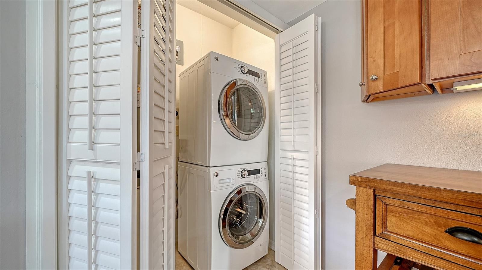Rare Opportunity – This Coveted West of the Trail Community. Discover this exceptional corner residence located just steps from the Intracoastal Waterway in one of Sarasota’s most sought-after communities, Baywood Colony Southwood. This beautifully remodeled 2-bedroom, 2-bath end unit offers abundant natural light through numerous windows adorned with plantation shutters. The inviting front screened lanai is fully enclosed with sliding glass panels and added plantation shutters for a moderns feel, providing the perfect space for year-round relaxation. The interior shows like a model home, featuring a gorgeous open kitchen with granite countertops, a wide breakfast bar, stainless steel appliances and top-of-the-line soft-close wood cabinetry with under-cabinet lighting. A washer and dryer are conveniently located inside the unit. Elegant tile flooring throughout. A/C system replaced in 2018, roof was replaced by HOA in 2019, and entire building was recently re-plumbed ensuring peace of mind. This ground-floor unit includes a covered parking space directly behind the residence, along with a secondary entry door from the carport for added convenience. Enjoy the Florida lifestyle in the saltwater heated pool, or play tennis and pickleball just steps from your door. Take a short walk to the Baywood Colony fountain to enjoy breathtaking sunsets over the bay. With only 32 condos in the community, residents enjoy a sense of privacy and tranquility reminiscent of a boutique resort. The location is ideal—just 2.2 miles to the nearest beach access and walking distance to Phillippi Estate Park, a scenic 60-acre natural area offering kayaking, fishing, nature trails, a playground, and a weekly Wednesday farmers market along with various community events such as art fairs, concerts, and cultural activities. This pet-friendly, maintenance-free community includes basic cable, exterior and grounds maintenance, roof and windows, and pest control all included in the low monthly fee of just $1,273 and best of all, it is not age-restricted. Experience the perfect combination of comfort, convenience, and coastal charm in this one-of-a-kind Sarasota retreat.