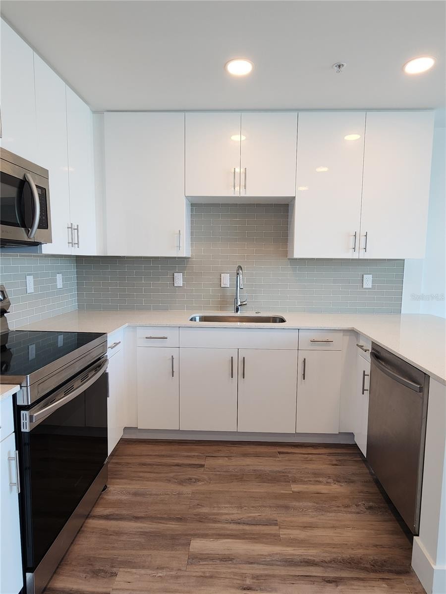 Welcome Boaters! This is your opportunity to own a top floor unit with peekaboo bay views and your own private dock at The Strand! Unit 507 offers the rare opportunity of an included deeded 32.5ft private dock with water and electric. After boating you can enjoy a beautiful sunset on your covered terrace with peekaboo bay and pool views. The large kitchen quartz counters and open floor plan make this condo great for entertaining. The primary suite offers a large walk-in shower and walk-in closet. The large den has a closet, making it a perfect bedroom for guests. The Strand offers a private dog park, floating kayak launch, pool and spa, gym, fire pit, and gas grills. All of this is located a short distance to 3 waterfront public parks, a 2 minute drive to downtown for weekend farmer's markets or an evening opera show. Lido Key beach is only 5 miles and the world famous Siesta Key is only 8 miles from your private garage parking spot.