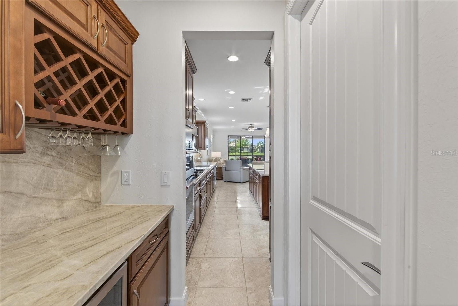 If you snooze, you’ll miss out on this exceptional opportunity! This immaculate Martin Ray model, built in 2016, has been meticulously maintained and is perfectly situated on a premium water view lot with desirable north/south exposure—ideal for embracing the Florida lifestyle. Discover this stunning home in a highly sought-after 55+ community, nestled within Lakewood Ranch, the nation’s top-rated multi-generational master- planned development. Offering 3 bedrooms, 2 bathrooms, and a versatile flex room, this thoughtfully designed home provides both comfort and flexibility for everyday living. A third bedroom was added as a builder upgrade, while the flex space is enhanced with a chair rail detail, making it ideal for a home office or hobby room. The home’s inviting curb appeal is elevated by natural stone accents and a well-manicured lawn. Inside, you’ll find 18” neutral ceramic tile flooring throughout, complemented by crown molding and 5 ¼ baseboards for a polished, elegant look. Designer lighting fixtures and ceiling fans added a modern touch throughout the home. The upgraded kitchen is both stylish and functional, featuring premium KitchenAid stainless steel appliances, including a 5- burner gas cooktop with wood canopy hood, built-in oven and microwave, quartz countertops and backsplash, and a French door refrigerator. A charming coffee and wine nook with cabinetry and a wine refrigerator adds convenience and sophistication. The owner’s suite is a relaxing retreat, highlighted by a tray ceiling and a luxurious ensuite with wood framed mirrors, a frameless glass walk-in shower, soaking tub, and a custom wood walk-in closet with built-in drawers and shelving. Guest accommodations are thoughtfully separate to provide privacy and comfort. Step outside to the extended lanai, where you can unwind or entertain while enjoying tranquil water views. The space features a 4-person hot tub and Kevlar hurricane rated remote screens, allowing for year-round enjoyment. Additional upgrades include hurricane shutters, select hurricane impact glass, a whole-home surge protector, and plantation shutters throughout. The custom painted garage is equally impressive, featuring epoxy flooring, cabinets and drawers and a convenient drop zone at the entry into the home. This exceptional Martin Ray Model offers a perfect combination of upgrades, functionality, and location—ready for you to move in and enjoy.