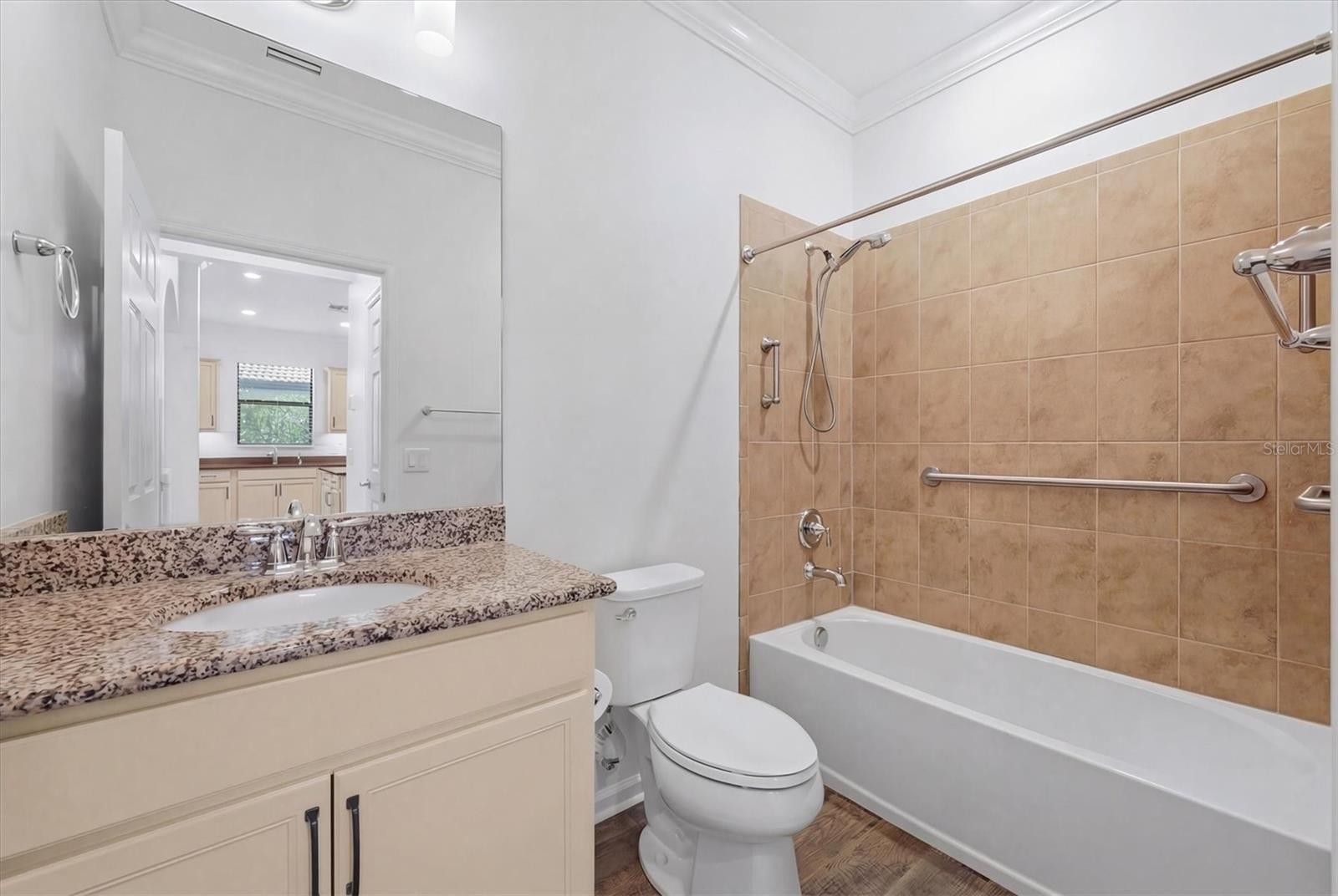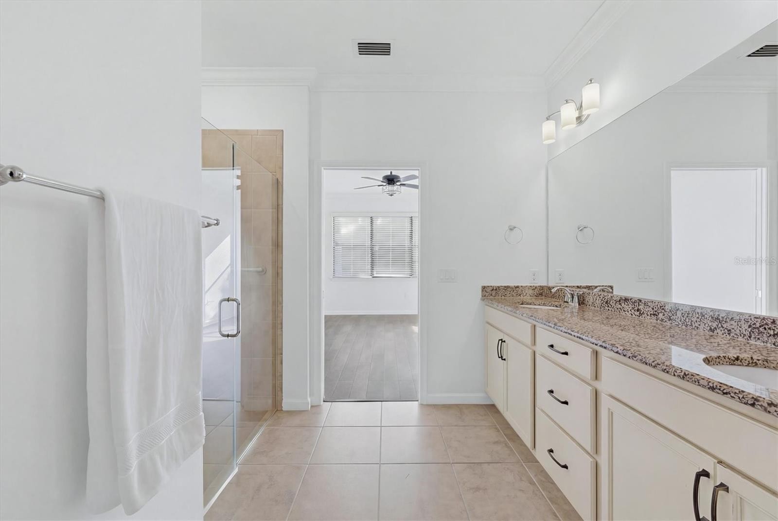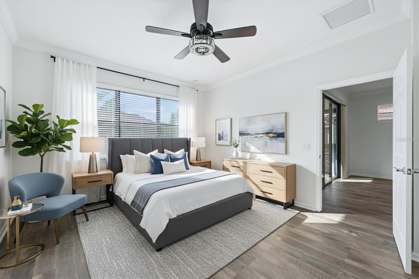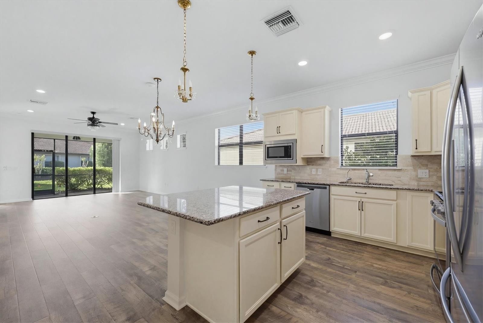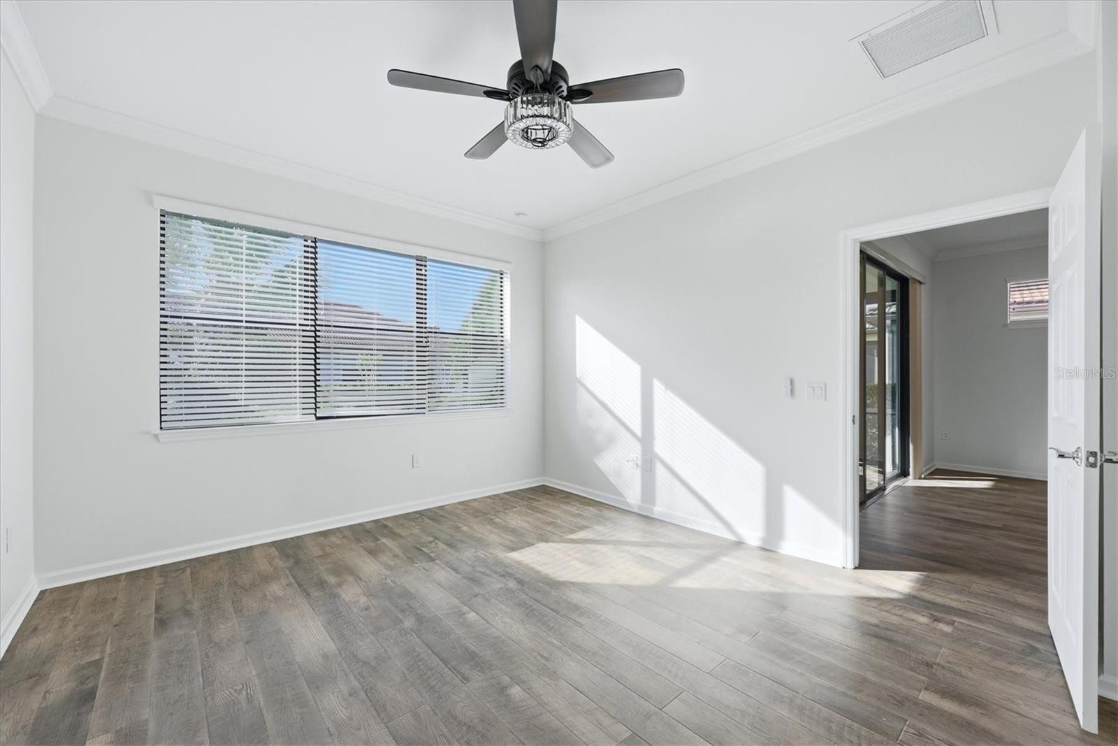 One or more photo(s) has been virtually staged. Welcome to one of the best-kept secrets in the premier 55+ Del Webb community of LAKEWOOD RANCH - where pristine condition, thoughtful design, and an unbeatable location come together in perfect harmony. Just a short stroll or golf cart ride to the amenity center, this beautifully maintained villa offers the ideal blend of privacy, comfort, and connection. This villa offers a flexible floor plan with 2 bedrooms plus a den, complete with solid French doors and a generous alcove-ideal as a third bedroom, office, or hobby space. From the moment you arrive, the curb appeal sets the tone with a paver driveway and walkway leading to a charming gated courtyard - and an inviting and private entry that feels both elegant and welcoming. Inside, the home shines with immaculate, like-new condition and newer waterproof laminate flooring flowing seamlessly throughout. The open-concept design features an extended kitchen, dining, and living space - perfectly arranged for easy everyday living and effortless entertaining. The kitchen overlooks the entire main living area, keeping everything connected and bright. Sliding glass doors lead to a brick paver, screened-in lanai, offering a peaceful outdoor retreat with a glimpse of the lake and a sense of privacy. The primary suite, privately situated at the rear of the home, offers a quiet retreat with an en-suite bath featuring dual vanities, granite countertops, a glass-enclosed shower with dual showerheads, and a spacious walk-in closet. Guests will appreciate the secondary bedroom and full bath located at the front of the home, ideal for visiting family and friends. Additional highlights include: Generac full house generator, Culligan water purification and softener systems, hurricane protection panels, freshly painted garage floor. exceptionally clean, move-in-ready condition. Residents of Del Webb Lakewood Ranch enjoy a vibrant lifestyle with resort-style amenities including a stunning pool, state-of-the-art fitness center, pickleball and tennis, social clubs, dining, and endless opportunities to connect or simply relax. All of this within Lakewood Ranch, the nation's top-ranked multi-generational community, known for its lifestyle, beauty, and convenience. Just a short ride from the renowned UTC shopping and dining complex, downtown Sarasota, and her award-winning beaches... Welcome home!