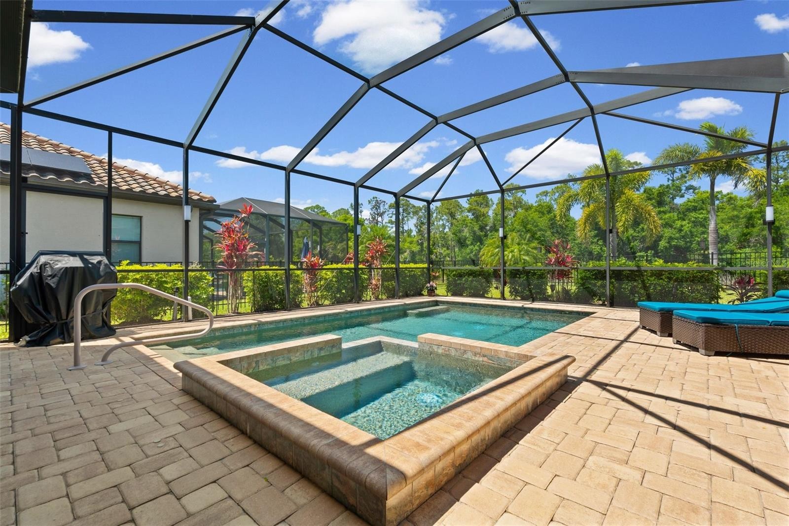 Welcome to this stunning Doral Model located in the highly desirable, solar-powered community of Polo Run in Lakewood Ranch! This 4-bedroom, 3-bathroom home offers an open-concept layout with beautiful upgrades throughout and elegant crown molding, creating a refined and inviting space. Enjoy peaceful preserve views as you step outside to your private oasis featuring a pool and spa, enhanced by gorgeous lanai accent lighting, perfect for relaxing or entertaining. The fenced-in yard is perfect for pets or added privacy. Additional features include a full-house generator, whole-home water filtration system, and convenient garage storage shelving. Enjoy resort-style amenities and energy-efficient living in one of Lakewood Ranch’s most sought-after communities—this is Florida living at its finest!