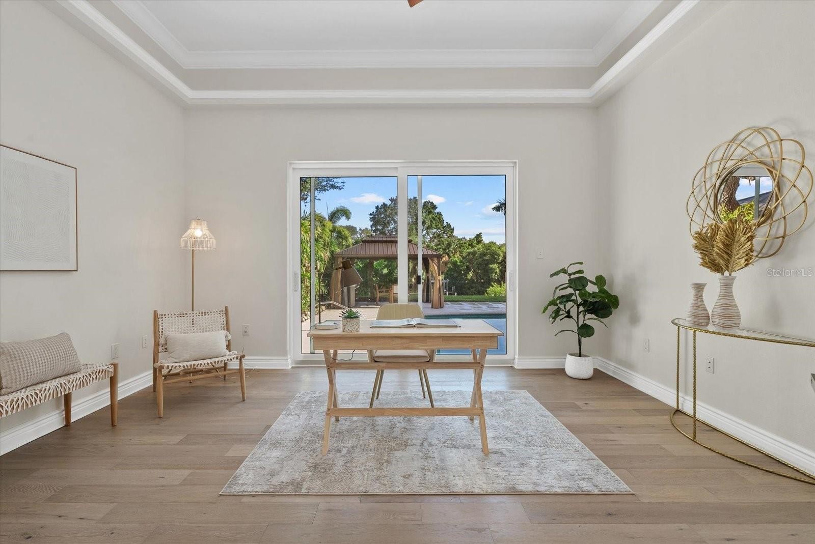 Fully renovated British West Indies–style waterfront estate in the Coral Cove Community, where homes rarely come to market. Situated on a 0.59-acre corner lot across from the private neighborhood park and boat launch, this elevated residence offers peace of mind with NO flooding during recent hurricanes. Spanning over 5,000 sq. ft., the home was extensively renovated from 1999–2004 and again in 2023–2024, giving it an effective year built of 2009. Featuring 4 bedrooms and 3.5 baths, including dual primary suites on both floors, this property is designed for comfort and flexibility. The upper-level primary suite includes a spa-style bathroom with a freestanding tub, dual vanities, walk-in shower, and an oversized custom closet. The heart of the home is the chef’s kitchen, showcasing Café Series appliances, fluted designer range hood, Dolomite countertops, soft-close cabinetry, a waterfall-edge peninsula, and walk-in pantry. Seamless indoor-outdoor living is achieved through French doors opening to the pool, limestone deck, lush lawn, and a new dock with floating jet ski pad. Additional upgrades include impact-rated windows and doors, a new metal roof, two fireplaces, solid core interior doors, engineered hardwood flooring, and custom organized closets. Located just minutes from Siesta Key beaches, shopping, dining, and Sarasota’s cultural arts scene, this home offers the ultimate West of Trail lifestyle.