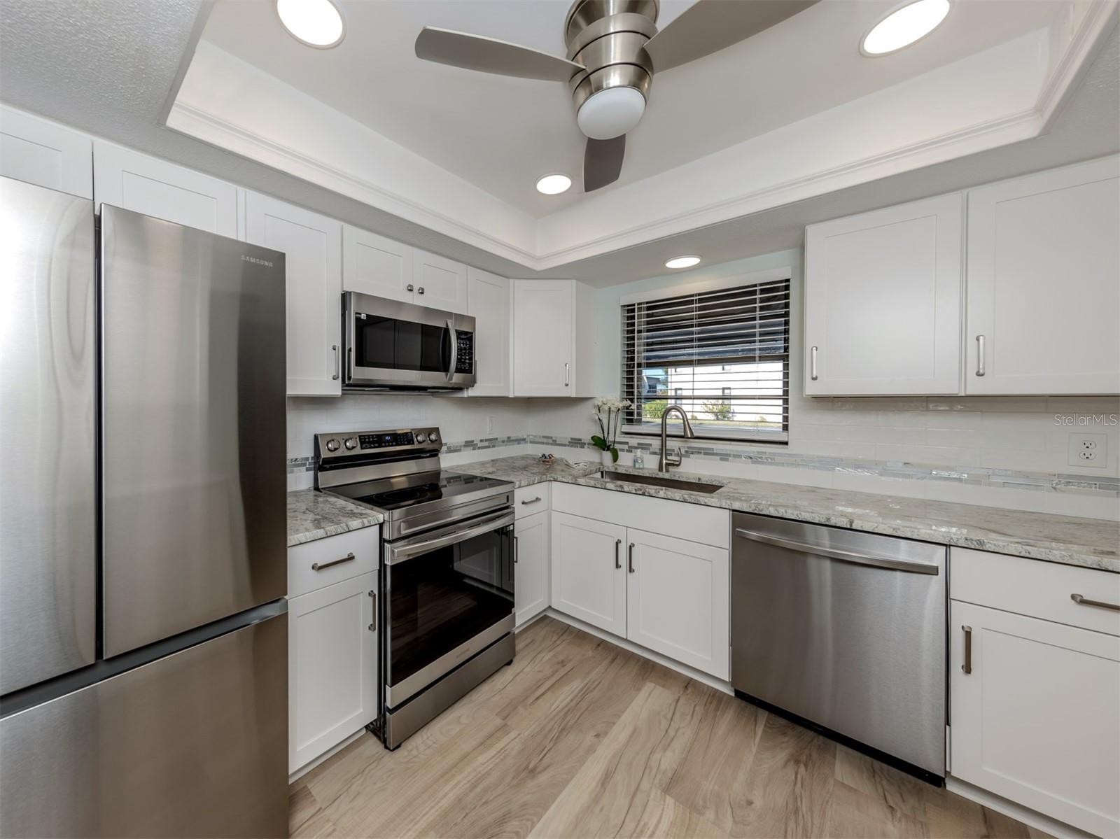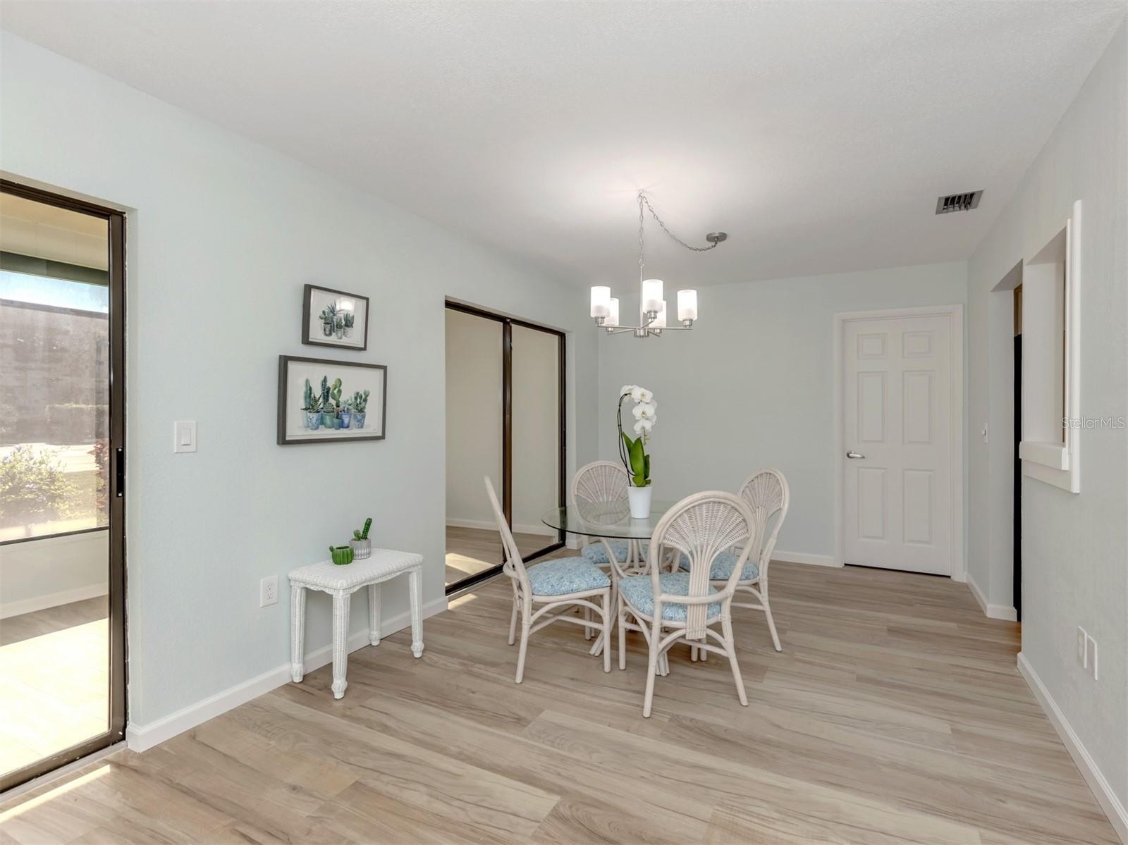 Beautifully updated first-floor paired villa offering the privacy of no unit above. Enjoy a relaxed, low-maintenance lifestyle in this friendly 55 plus community. This move-in-ready home features a new roof and HVAC system (2025), luxury vinyl plank flooring throughout, and a freshly painted interior down to the baseboards. The completely redesigned kitchen showcases new cabinetry, granite countertops, tile backsplash, updated sink and faucets, modern appliances, and a finished ceiling with LED lighting and a ceiling fan. Additional upgrades include new window blinds and an enhanced laundry room with new washer, dryer and cabinetry for additional storage. A standout feature is the bonus enclosed lanai, heated and cooled with dedicated vents, finished with new LVP flooring and baseboards, providing versatile additional living space year-round. Additional improvements include a new Square D electrical panel and outdoor water main shutoff plus a thoughtfully renovated carport completed just three years ago. Every detail has been carefully considered, making this an exceptional opportunity for carefree Florida living. Villa Nova boasts a community pool and clubhouse for social and recreational activities, plus it’s in a prime location near an array of shopping, dining and cultural options. It's also a short drive to charming Venice Island, where 14 miles of pristine beaches meet the sparkling Gulf Coast. All this comes together to ensure an exceptional blend of comfort, style and everyday convenience.