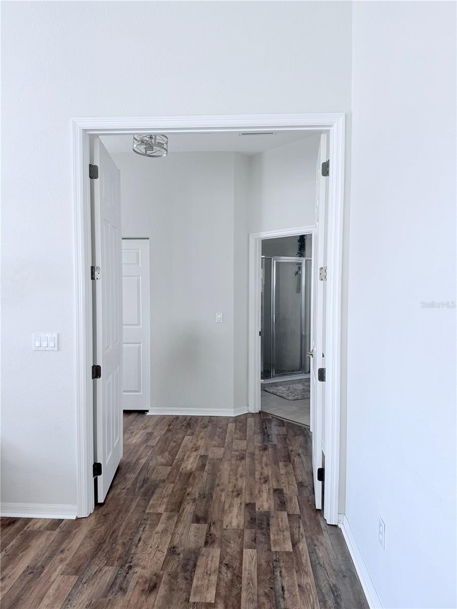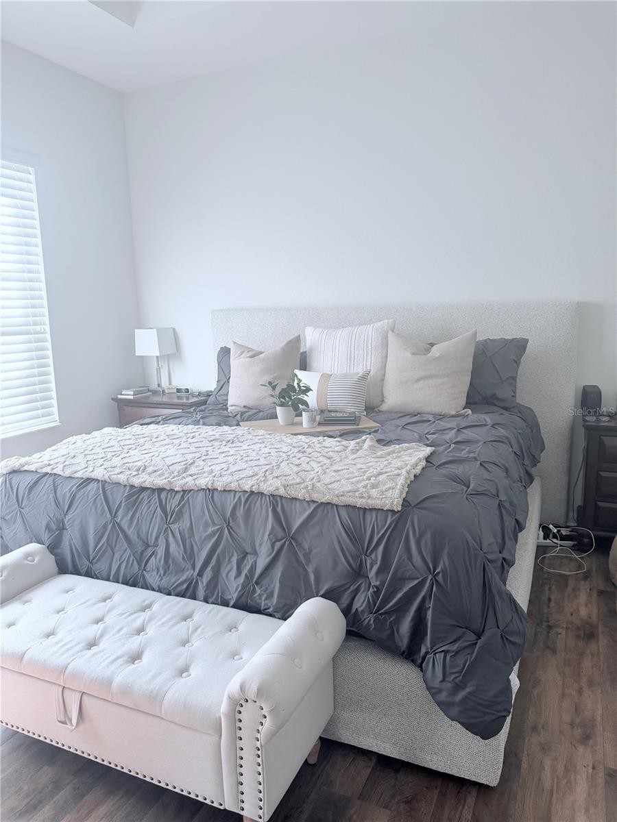 This stunning home boasts the best view and price per square foot in the community! Low HOA Fees for the area and NO CDD FEES! Welcome to this beautiful, resort-style gated community, minutes from downtown Venice, Venice Beach, and I-75. Conveniently located near shopping and restaurants, yet nestled in a private, hidden paradise. A beautiful golf course is within walking distance. This community offers a large clubhouse, full gym, heated pool in a tropical setting, and a private nature walk with waterfalls, perfect for relaxation. This 3-bedroom, with den, 2-bath, 2 car garage end unit is bright and open, with pool and pond views from the great room and primary bedroom. The home features many windows for natural light and is great for entertaining, with guest parking nearby. New laminate flooring throughout, with tile in wet areas. The primary bedroom has dual closets, tray ceilings, and tropical views. The en-suite has a garden tub, separate shower with new stone floor, dual vanities, and two linen closets. The bright, open kitchen features granite countertops, new stainless steel appliances (range, microwave, refrigerator, and dishwasher). New garbage disposal. There are 2 additional spacious bedrooms with walk-in closets, and one bedroom has a pocket door to the guest bathroom. A large inside laundry room with a washer and dryer (less than 4 years old). Coat closet for even more storage. Volume ceilings and oversized doors make the home feel even larger. New paint, laminate, and appliances were installed in 2022. The home is move-in ready, and a new tile roof was installed in 2025. New lighting fixtures, ceiling fans and kitchen backsplash installed 2026. All buildings were painted last year, and there are new exterior light fixtures. Don't miss this amazing home – schedule your private showing today! The owner is a licensed sales agent in Florida. The first floor is the 2-car garage; the living area is upstairs.
