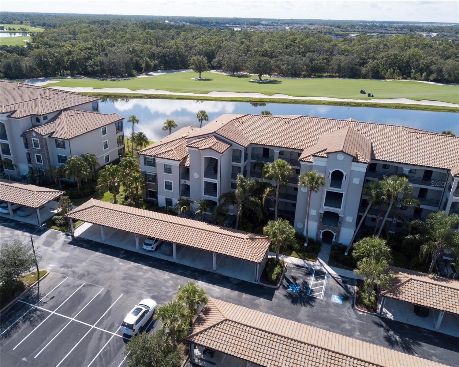 Welcome to Lakewood National, where this fully furnished 2-bedroom, 2-bath condo offers resort-style living with a golf membership included. Located on the second floor with elevator access, the unit overlooks a scenic preserve and championship golf course, providing tranquil lake views from the screened-in balcony. The kitchen features solid wood cabinetry, granite countertops, stainless steel appliances, and a spacious island with seating for three or more, accented by stylish pendant and chandelier lighting. The primary suite includes plush carpeting, a large walk-in closet, and a private en-suite bath with a walk-in shower, while the second bedroom is beautifully decorated and adjacent to a full guest bath. Additional features include impact-resistant windows and doors, surge protection, a private storage closet for bikes and beach gear, and a covered carport. The HOA covers cable, internet, water, sewer, pest control, building maintenance, and access to a private condo pool. Residents enjoy full access to Lakewood National’s luxury amenities, including two Arnold Palmer-designed championship golf courses, a resort-style pool, clubhouse, tennis and pickleball courts, a state-of-the-art fitness center, spa, and on-site restaurant. Located in Lakewood Ranch, the #1 multi-generational community in the U.S. for seven years running, this property is close to top-rated schools, dining, shopping, parks, and Gulf Coast beaches. With 30-day rentals allowed, it’s ideal for seasonal living, downsizing, or investment.