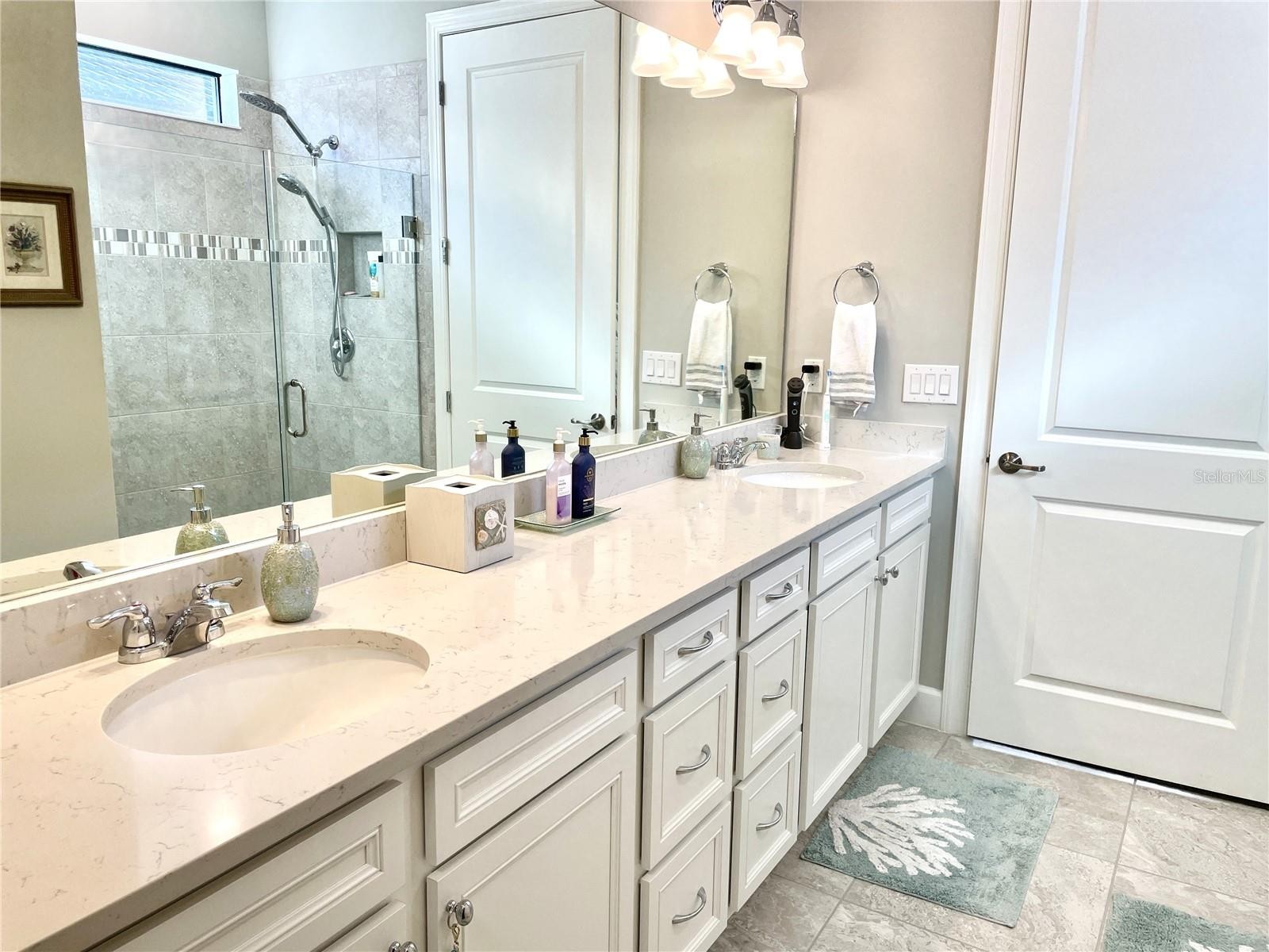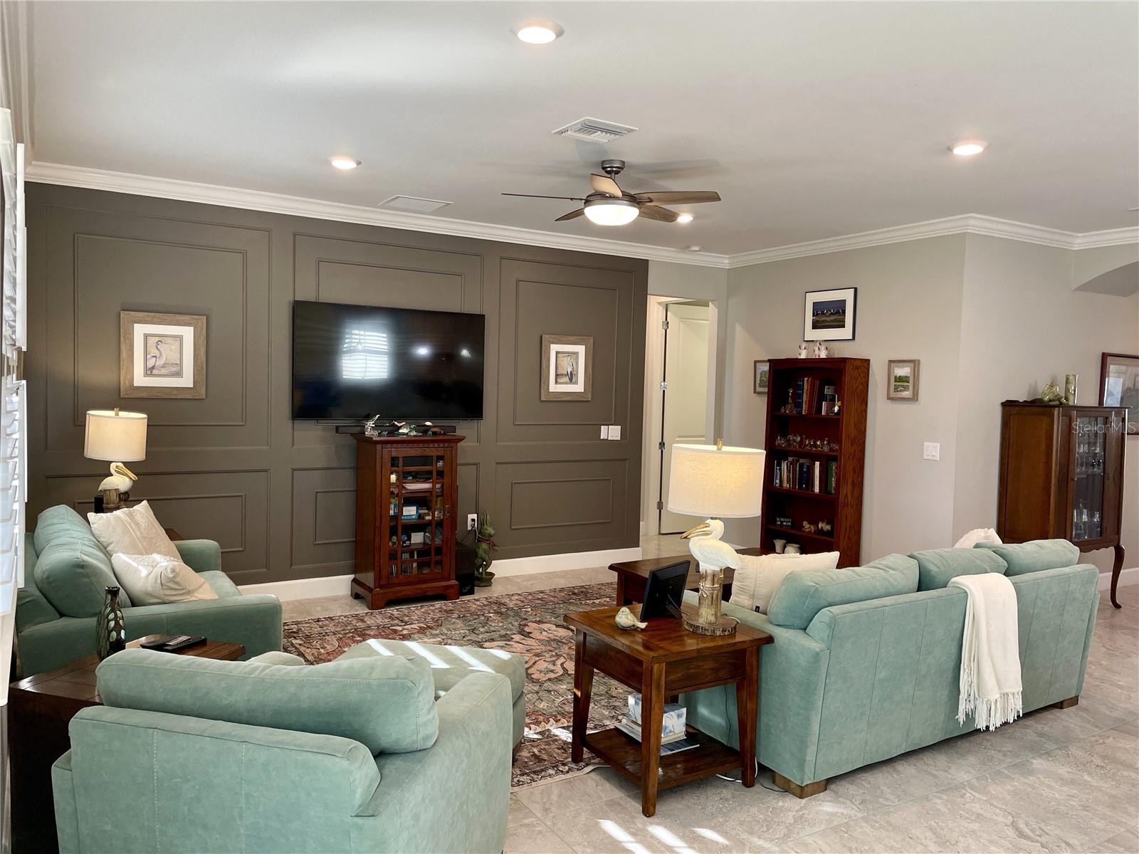 Stunning home situated in Cypress Falls, a 55+ Del Webb resort style gated community! This 2021 built, water view, split/open floor plan, 1789sf, 2/2/2 with a Den/Study, added Sunroom, screened lanai/patio extension, and so many more updates, is waiting for you to tour and fall in love! There are high ceilings, planation shutters, crown molding, ceiling fans, Quartz counter tops, white cabinets, updated a/c to equally distribute the air flow in each area of the home (very important update), feature wall in the Great room, closet designs in the kitchen pantry, Primary bedroom walk-in closet, and added cabinets/closets and shelving in the Laundry room. There is tile throughout the main living areas. The Kitchen, Great room, Casual dining all share space. The large Kitchen has 42" white cabinets, banks of drawers, additional cabinets in the island/breakfast bar, stainless appliances, under cabinet lighting, large sink, accent backsplash, and a pantry. The Great room has windows that look out over the outdoor living space and backyard view of Lake Wilson. It also has a beautiful feature wall. The Casual dining is between the Kitchen and Sunroom. The Sunroom has windows on 2 walls and sliders out to the screened Lanai. The Sunroom allows nature light into the large shared living space. The Primary bedroom and inside Laundry room are off of the Great room. The bedroom has a view of nature with the landscaped yard and lake. The Primary bathroom has a spacious walk-in shower, long vanity with 2 sinks, many cabinets and banks of drawers, water closet, and a huge Walk-in closet that has been organized with many shelves, drawers and racks. The 2nd Bedroom is in the front of the home and has a wall of windows. The guest bathroom is between the 2nd bedroom and Den/Study. It has a tub/shower. The Den/Study has a double door entry Across the main hallway is a smaller hall with a linen closet and air handler closet and access to the garage. The Laundry room has been updated with cabinets, closets and shelves for additional storage in the home. The Outdoor living space is peaceful. It is a great space to sit back and enjoy nature or entertain friends. The community has so much to offer with the amenities center, activities director and many social neighbors. The golf cart is sold separately. The washer, dryer and additional garage refrigerator do not convey with the home.
