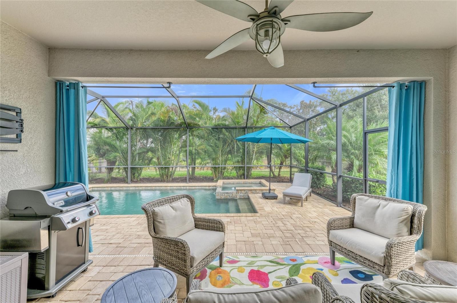 Discover this move-in-ready gem in beautiful Lakewood Ranch! Located in the gated community of Polo Run, this is Lakewood Ranch's ONLY solar-powered community. This home features an open-concept living room and dining room, with a modern open kitchen, equipped with a spacious quartz island and stainless steel appliances, including a natural gas stove. Soft close cabinetry, smart home technology throughout, a tankless water heater, and a durable tile roof add to the ease and comfort of this home. With 3 bedrooms and 3 full baths, you have plenty of room to host family and friends or set up a home office. In addition to a beautiful interior, the seamless lanai and modern, sleek, custom built heated pool and spa make this property perfect for enjoying the beautiful Florida weather. Equipped with a fenced-in backyard, that looks out onto greenery and a pond, you can enjoy all of these top-notch features with exceptional privacy. Flow effortlessly from the open floor plan interior to the beautiful and tranquil exterior for entertaining ease. With a North-South exposure you can enjoy sunlight from sunrise to sunset! Enjoy premium community amenities such as a resort-style clubhouse, heated pool, BBQ area, fitness studio, tennis, pickleball, bocce, basketball, dog park, and playground—all in a prime location minutes from trendy shopping, renowned restaurants, the UTC Mall, Lakewood Ranch's Town Center, schools, parks, premier sports fields, and easy access to major airports. You won't want to miss this opportunity!