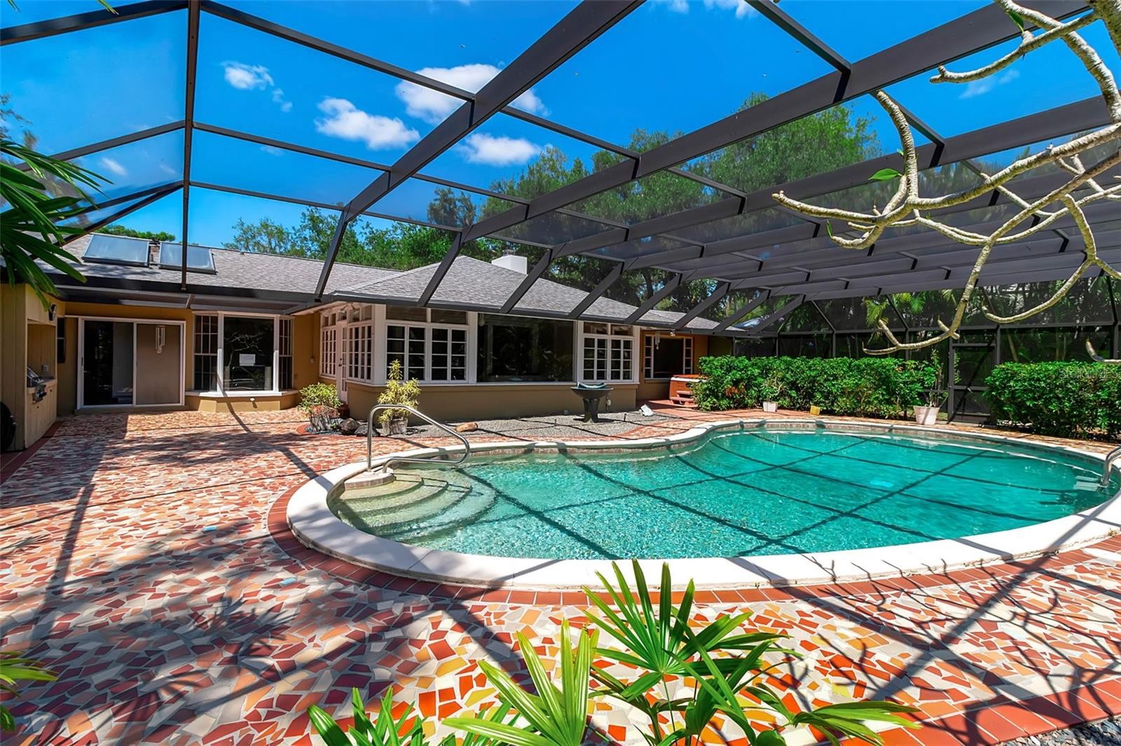 One or more photo(s) has been virtually staged. Tucked beneath a canopy of mature trees in one of Sarasota’s most coveted neighborhoods, 1714 South Drive presents a rare opportunity to secure a prime homesite in Cherokee Park, West of the Trail and moments from the very best of Sarasota living. Set on a beautifully established lot with lush, mature landscaping, a paver driveway, and a combination of garage and carport parking, the property offers an immediate sense of privacy and presence. Inside, the home unfolds with a surprisingly expansive footprint and a floor plan that captures natural light throughout. A welcoming entry with a leaded stained-glass door opens to multiple living spaces, including a living room with a wood-burning fireplace, custom built-ins, and distinctive Saltillo tile flooring, alongside a light-filled family room wrapped in windows with views of the pool and direct access to the lanai. The dining room, positioned with a bay window overlooking the pool, connects seamlessly to the kitchen, which features granite countertops, glass-front cabinetry, a center island with cooktop, and a breakfast nook with access to a private side deck. The layout offers flexibility with multiple bedroom and office options, including a front bedroom or office with a wall of windows and an in-wall safe, and a private guest suite with its own bath showcasing vintage turquoise tile and retro detailing. A secondary guest bedroom includes built-in workspaces and shelving, ideal for dual office use or creative space. The primary suite is tucked privately toward the rear of the home, offering direct access to the lanai, abundant natural light, and a spacious bath with dual vanities, soaking tub, walk-in shower, and skylight above. Additional spaces include a bonus room off the garage with bedroom conversion potential, a pool bath, and a separate flex space off the lanai with wood-paneled walls and its own mini-split system, ideal for a studio, gym, or additional lounge. Outdoors, the home continues to deliver with an oversized, caged pool and covered lounging areas, surrounded by mature landscaping, stone walkways, and a fully fenced yard. An existing outdoor kitchen structure and multiple access points from the home create a true indoor-outdoor flow that aligns perfectly with Sarasota’s year-round lifestyle. What truly elevates this property is its location. Just moments from the shops and restaurants of Southside Village or downtown Sarasota’s waterfront, cultural venues, and marina. It is close to Sarasota Bay and just a short drive to Siesta Key’s north bridge. This is a setting that defines convenience and coastal luxury. Cherokee Park remains one of the most desirable addresses in Sarasota, and 1714 South Drive offers the rare combination of location, lot, and layout, an exceptional opportunity in the heart of Sarasota.