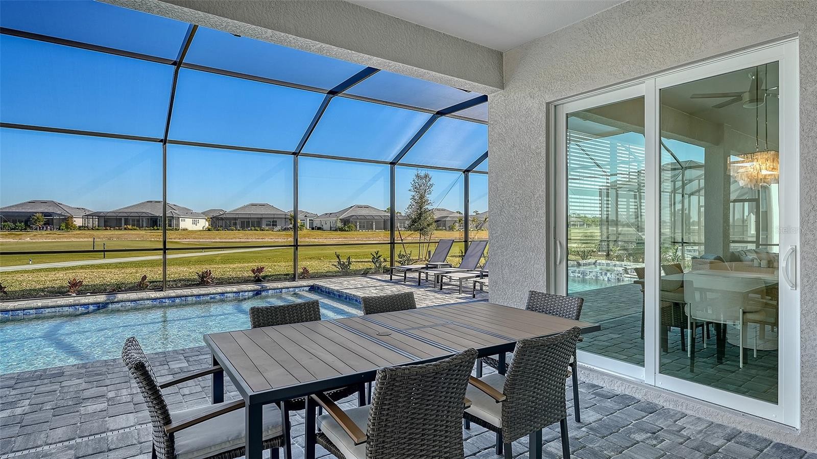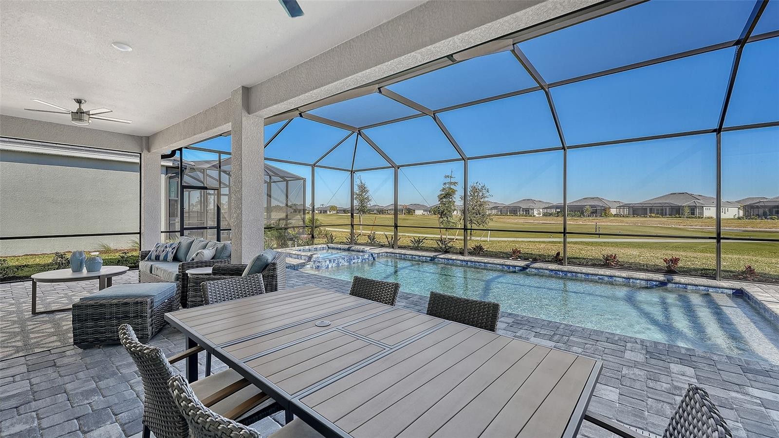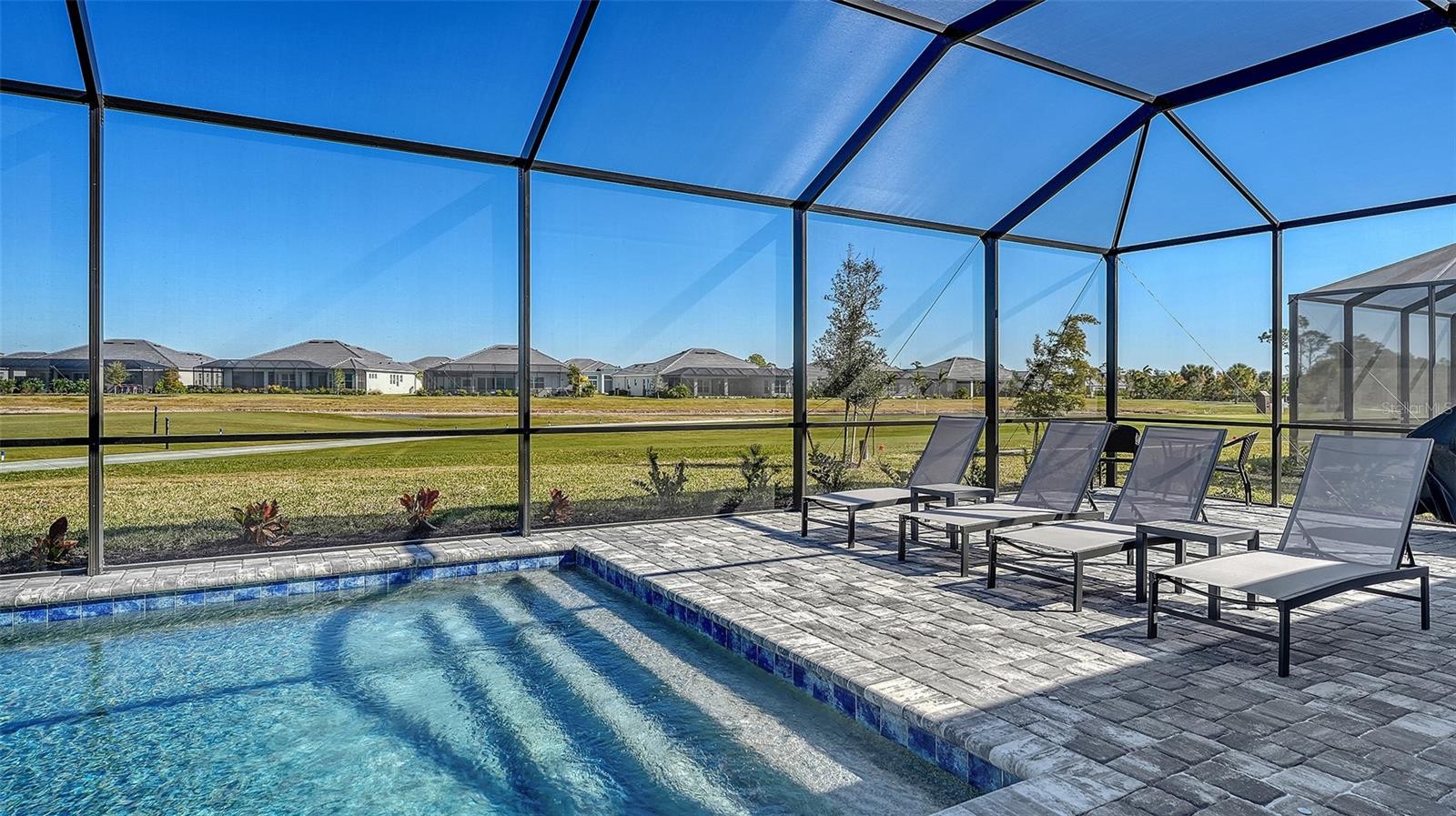 Welcome to the premier gated Community of Wellen Park Golf & Country Club. This beautifully appointed Estate home offers three-bedrooms, three bathrooms, plus a den, private heated pool and spa with a wonderful water view of the 12th hole. This gorgeous sanctuary offers comfort, elegance and a refined Florida lifestyle within one of Venice's most desirable gated golf Communities. This thoughtfully designed home blends spacious indoor living with inviting outdoor areas, creating an ideal environment for everyday relaxation as well as effortless entertaining. Upon entering, the foyer opens to a bright, open-concept layout enhanced by high ceilings, fine furnishings and abundant natural light. This clever open floorplan creates a seamless flow between the main living spaces. The open kitchen/dining area is the heart of the home and shares the peaceful view of the 12th hole, the pond and surrounding greenery. The kitchen is designed for both style and function featuring stainless steel appliances, ample cabinetry and a large island for casual seating and entertaining. The primary suite provides the ultimate private restful retreat offering a spacious bedroom, king size bed, walk-in closets and bright beautiful spa-like en-suite bath with double sinks very large tiled walk-in shower with separate water closet. The second guest suite offers a queen size bed with private en-suite bath that offers private access to the pool/spa area and seconds as a pool bath. The third bedroom features two extra-long twin beds. A separate den/flex room offers a versatile space for office or additional guest sleeping quarters featuring a pull-out sofa. Large sliding doors open to the covered lanai inviting you to enjoy the gorgeous Florida lifestyle where an outdoor living area offers ample seating and a grill. This home presents an amazing opportunity to spend the winter months in your very own private oasis. Nice three car garage provides space to keep cars and toys cool and dry, plus third bay offers easy access for your golf clubs and a golf cart. SOCIAL MEMBERSHIP FOR $150.00 IS AVAILABLE. $65.00 monthly food & Beverage minimum is required. NO GOLF MEMBERSHIP IS OFFERED WITH THIS PROPERTY.