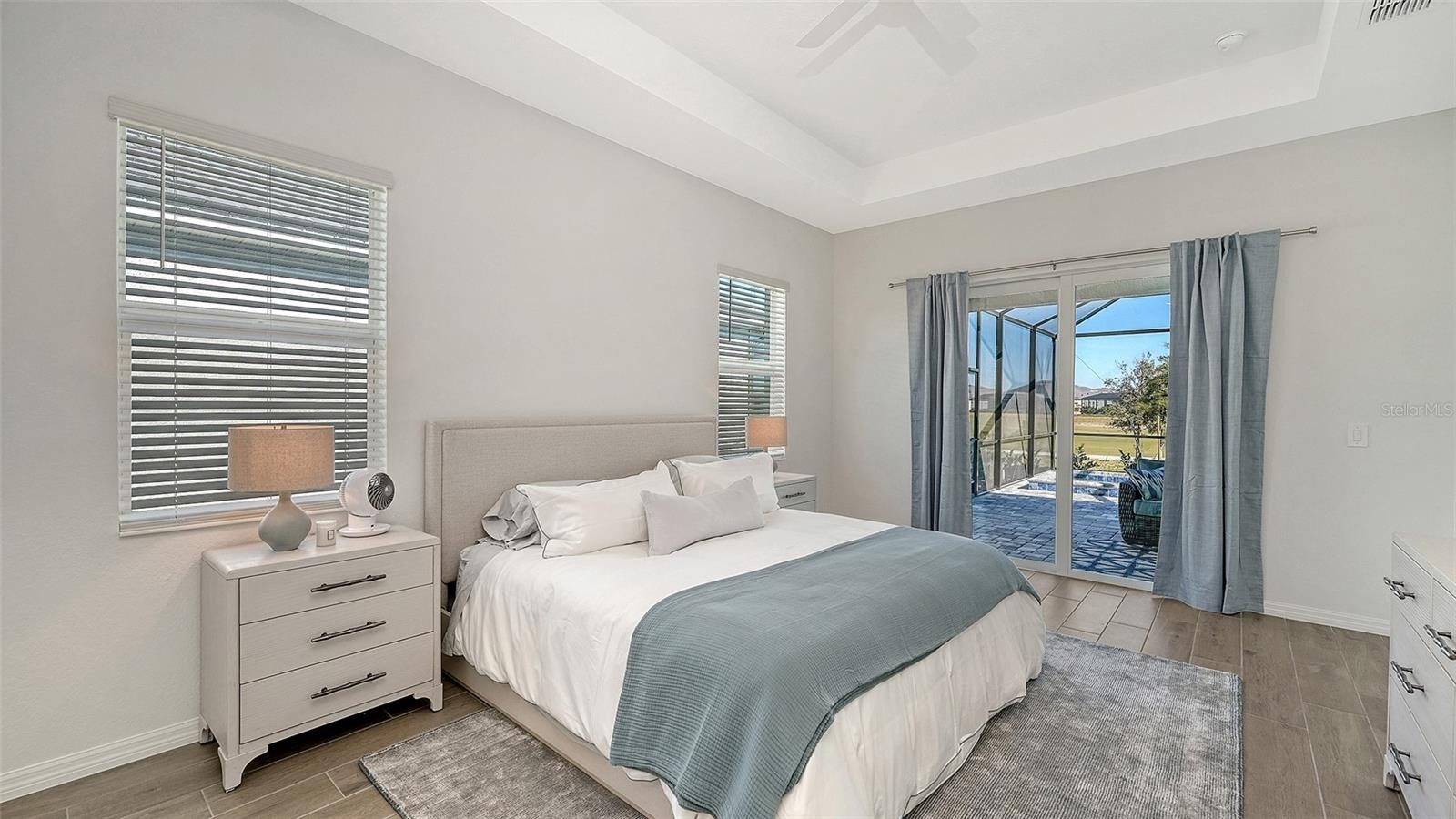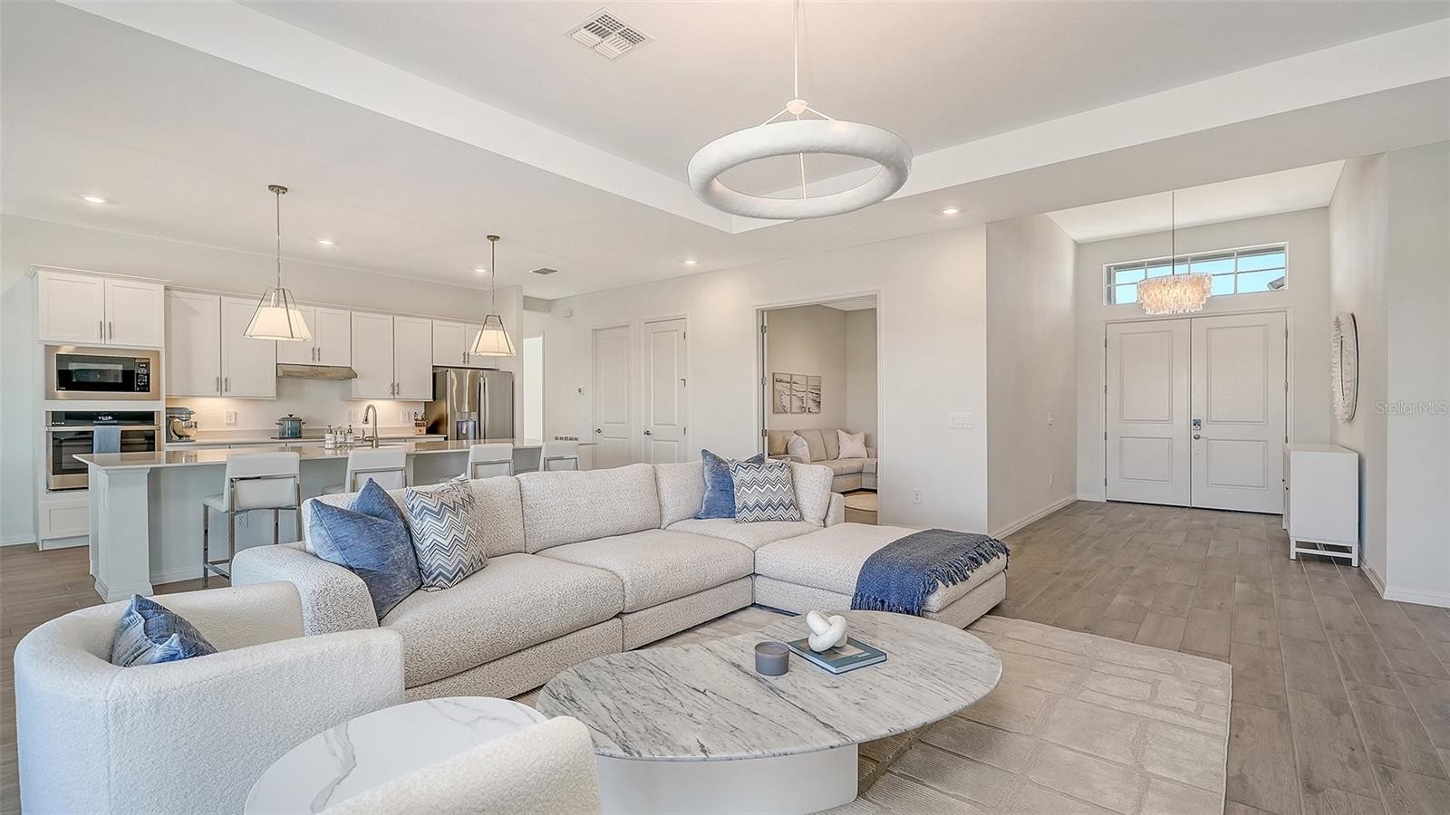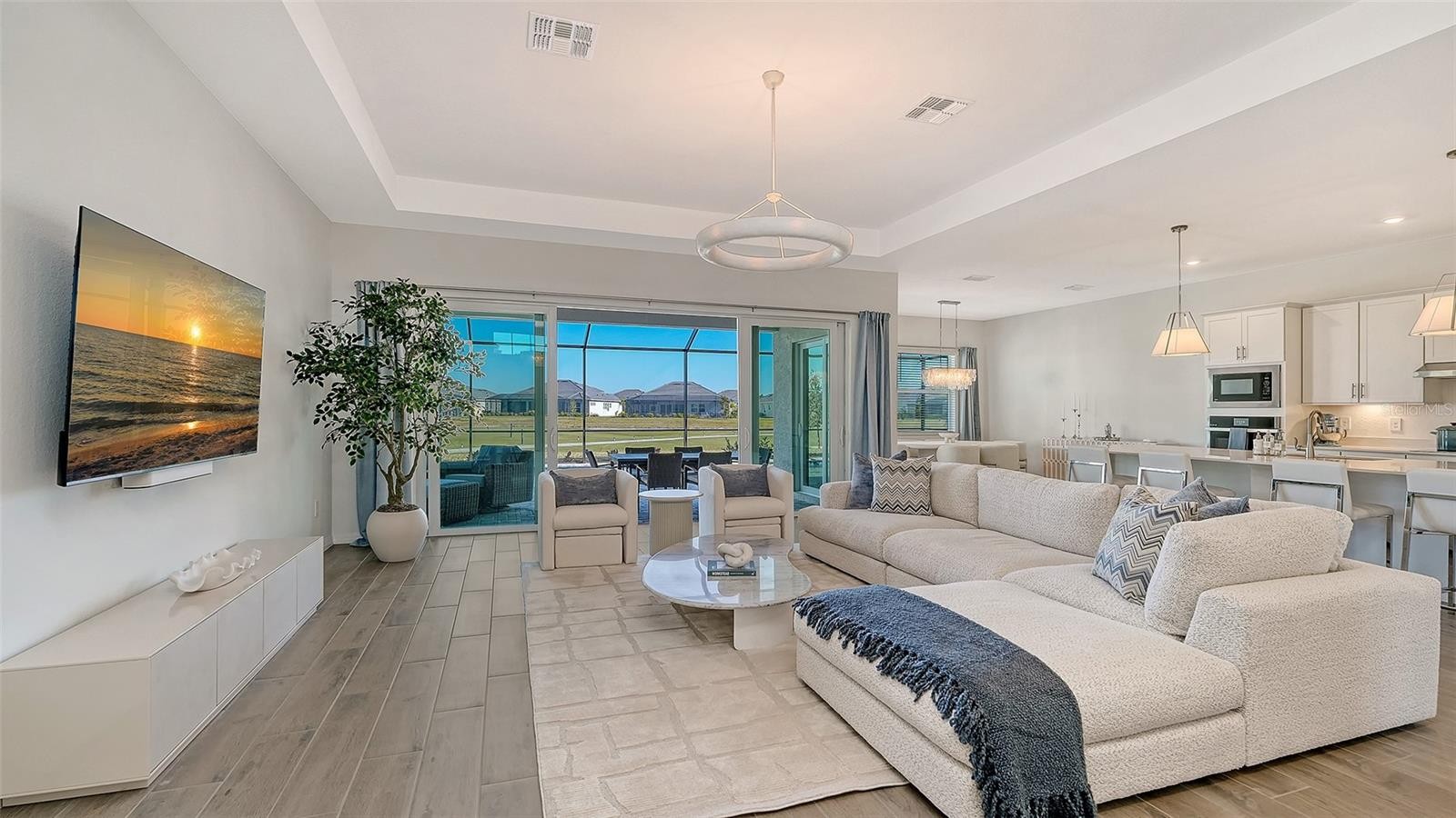 Welcome to the premier gated Community of Wellen Park Golf & Country Club. This beautifully appointed Estate home offers three-bedrooms, three bathrooms, plus a den, private heated pool and spa with a wonderful water view of the 12th hole. This gorgeous sanctuary offers comfort, elegance and a refined Florida lifestyle within one of Venice's most desirable gated golf Communities. This thoughtfully designed home blends spacious indoor living with inviting outdoor areas, creating an ideal environment for everyday relaxation as well as effortless entertaining. Upon entering, the foyer opens to a bright, open-concept layout enhanced by high ceilings, fine furnishings and abundant natural light. This clever open floorplan creates a seamless flow between the main living spaces. The open kitchen/dining area is the heart of the home and shares the peaceful view of the 12th hole, the pond and surrounding greenery. The kitchen is designed for both style and function featuring stainless steel appliances, ample cabinetry and a large island for casual seating and entertaining. The primary suite provides the ultimate private restful retreat offering a spacious bedroom, king size bed, walk-in closets and bright beautiful spa-like en-suite bath with double sinks very large tiled walk-in shower with separate water closet. The second guest suite offers a queen size bed with private en-suite bath that offers private access to the pool/spa area and seconds as a pool bath. The third bedroom features two extra-long twin beds. A separate den/flex room offers a versatile space for office or additional guest sleeping quarters featuring a pull-out sofa. Large sliding doors open to the covered lanai inviting you to enjoy the gorgeous Florida lifestyle where an outdoor living area offers ample seating and a grill. This home presents an amazing opportunity to spend the winter months in your very own private oasis. Nice three car garage provides space to keep cars and toys cool and dry, plus third bay offers easy access for your golf clubs and a golf cart. SOCIAL MEMBERSHIP FOR $150.00 IS AVAILABLE. $65.00 monthly food & Beverage minimum is required. NO GOLF MEMBERSHIP IS OFFERED WITH THIS PROPERTY.