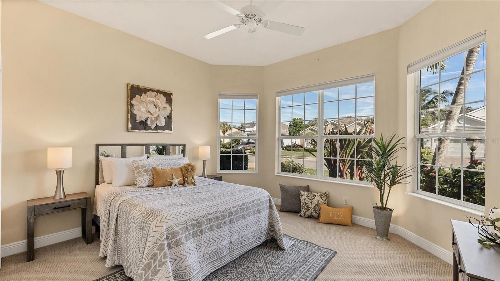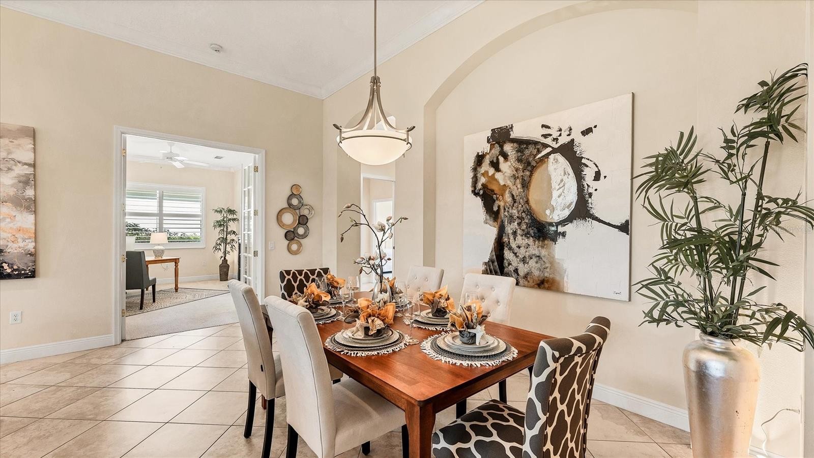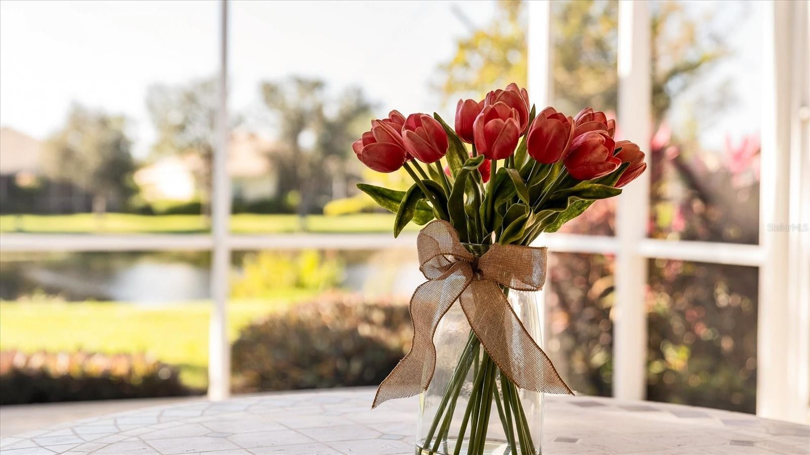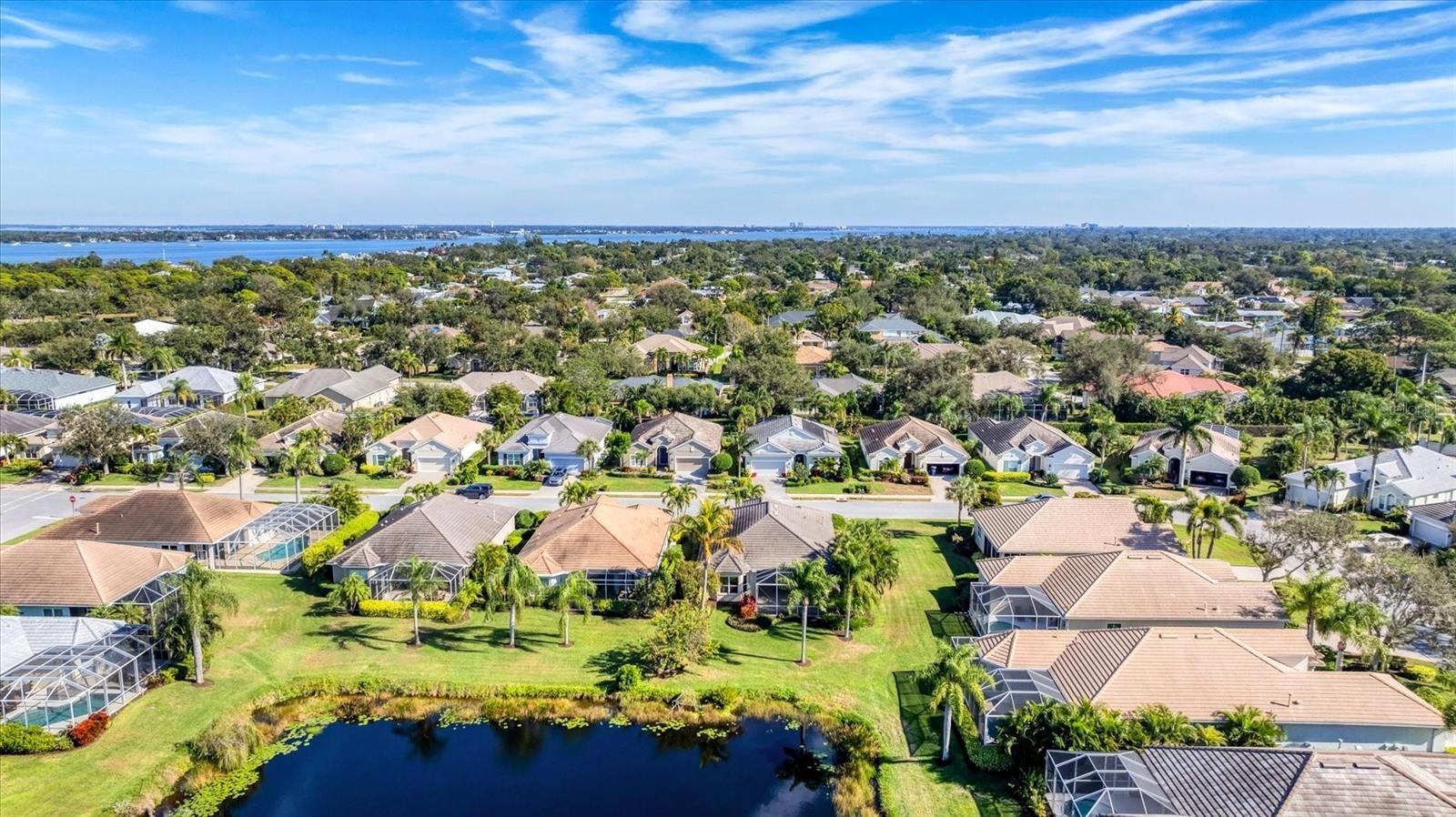 Enjoy coastal living at its finest in this stunningly maintained three bedroom two bath water view home nestled within an enclave of beautiful residences in the highly desirable maintenance free Neal Community of Wisteria Park. This residence immediately impresses with the paver driveway, tile roof and meticulously landscaped grounds. The interior reveals dramatic 12 foot ceilings and an open airy floor plan designed for relaxed Florida living. Expansive 8 foot sliding pocket doors and abundant windows fill the home with natural light seamlessly connecting the expansive screened lanai to the sweeping outdoor water views. Every room reflects a casually warm, elegant and inviting atmosphere. Neutral tile on the diagonal flows through the main living area enhancing the space and continuity with 8 foot French doors opening to a versatile, office, den or third bedroom. The kitchen, which has been designed to inspire, features beautiful stone countertops, classic white wood cabinetry and stately crown molding offering the perfect ambiance for entertaining. Your outside oasis has been positioned to showcase the landscape, nature and peaceful water views of this tranquil bird sanctuary where egrets, blue herons and cormorants visit regularly. Retreat to the luxurious Primary Suite where you'll enjoy panoramic views of the pond in its natural setting. The primary bath features a garden soaking tub, glass enclosed shower with river stone accented walls, custom pebble stone flooring, dual vanities and a spacious walk in closet. Additional details include a 2007 tile roof, 5 yr. A/C and a 2025 water heater. This is a well designed layout that provides privacy for both owners and guests. Conveniently close to Robinson Preserve, Palma Sola Botanical Gardens, DeSoto Park, Geraldson’s Farmer’s Market, Bradenton's beautiful beaches and the Anna Maria Island boutique shops. Follow the link and experience this Virtual Tour. Come visit and fall in love!