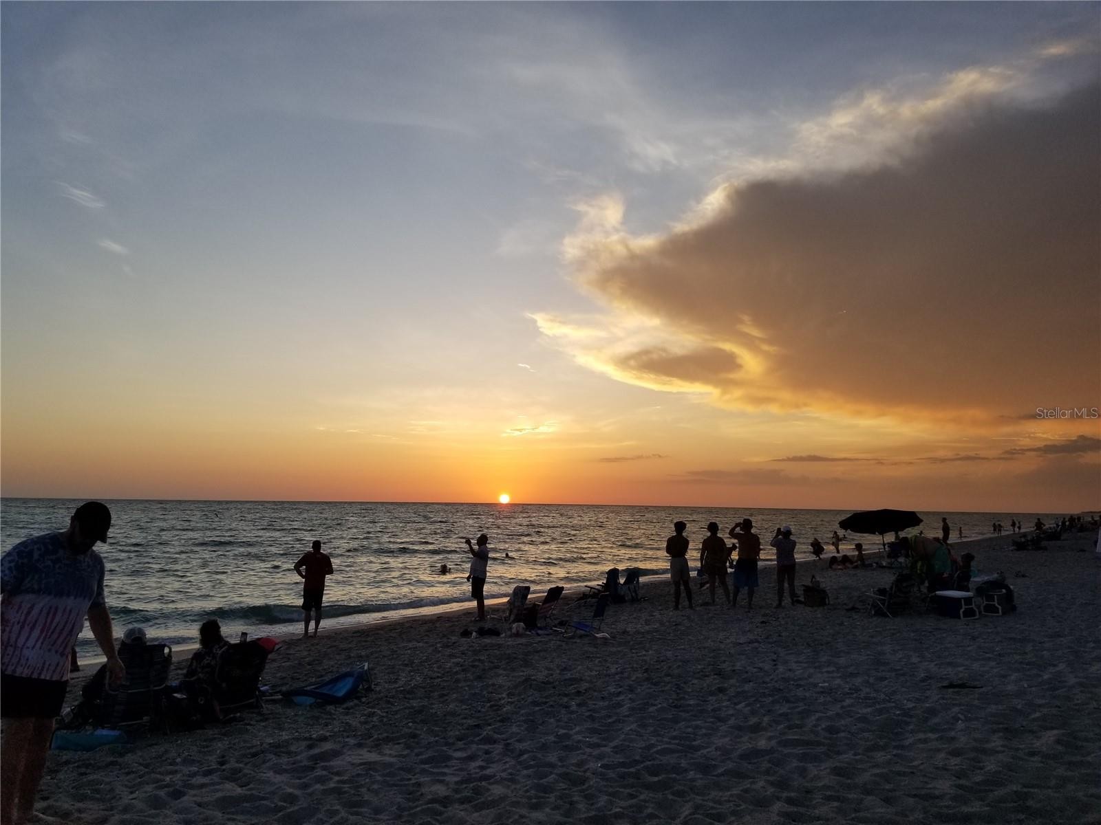 A Beach Lovers Dream!! A half mile to the best beach in Sarasota county and on the West coast of Florida. Ever want to live close enough to walk or bike to beautiful sand and Gulf waters? This home will check ever box on your list. Tucked away on a quiet dead end street, this home has been in the family for 27 years, second owner/agent. Every update has been done, the list is long and the pictures will show how beautiful it is. Surrounding by majestic oaks on a beautiful yet easy to maintain landscaped yard, the freshly exterior painted, roofed in 2019 home with a 2025 hurricane garage door and opener awaits you. Walk in the entry way, greeted by a solid wood french door leading you into a formal foyer. Just off the entry is direct access to the 2 car garage which features a stationary tub and a side man door leading to the fully fenced side to back yard. Immediately off the foyer is a beautiful private office that can also be used as a 4th bedroom, formal dining room, media room as it has extra insulation for a more quiet space with two sets of french doors. But the most pronounced feature are the beautiful custom build solid wood floating shelves, a ceiling fan with an overhead light. Once you pass the office, you enter the Great room that flows into the brand new kitchen. A custom build solid wood island with quartz countertops and room for 4 bar stools. The kitchen was designed for several chefs to work at once. Main counter are 48 inches from island allow a great work space. An oversized, 33x22x10 stainless steel sink allow for large pots and baking sheets to easily fit for cleaning. All appliances are new matching with the NEW Refrigerator and Stove in their boxes waiting for the new buyer. Under cabinet lighting, stainless pull outs and organizers with great island lighting. Perfect for entertaining and a large family. The dining area is centered in the back with 4 sets of 2025 installed hurricane french doors. The side leads to an open patio overlooking the Zen house and manicured garden area under a grand oak tree. The other 3 sets open to a large screened with gutters lanai, large enough for a dining area, ping pong table, sitting and tiki bar areas. The yard is securely fence with an additional patio on the east side, perfect for your grill. Back inside a split plan with the master on the west side as well as a full inside dedicated laundry room with custom cabinets and overhead shelving for extra pantry storage. The Master Bedroom is large and overlooks the Zen garden the features include a large walk in closet double barred and a brand new en suite bathroom, with a large Ikea Vanity, low flusher and beautiful fully tiled walk in shower with built in shampoo shelf. On the other side on the home are 2 more large bedrooms, freshly painted with ceiling fans and blinds. One is the official SPONGEBOB SUITE! Custom painted larger than life making it a fun place to hang out or sleep if you can stop laughing. Updated main bath features beautiful marble top vanity, low flusher a brand new tub, fully tiled with shampoo shelf and dual shower heads. Double linen closets just off the main bath. Every room is tiled, including the same tile in the entryway and the lanai. There is also a large 12x9 storage shed attached to the house, large enough for all your garden tools, mower and other items, allowing your garage to be just for cars and beach gear! Repiped 2017, Roof 2019, kitchen & baths 2025, sewer lined 2025, Full list is available.