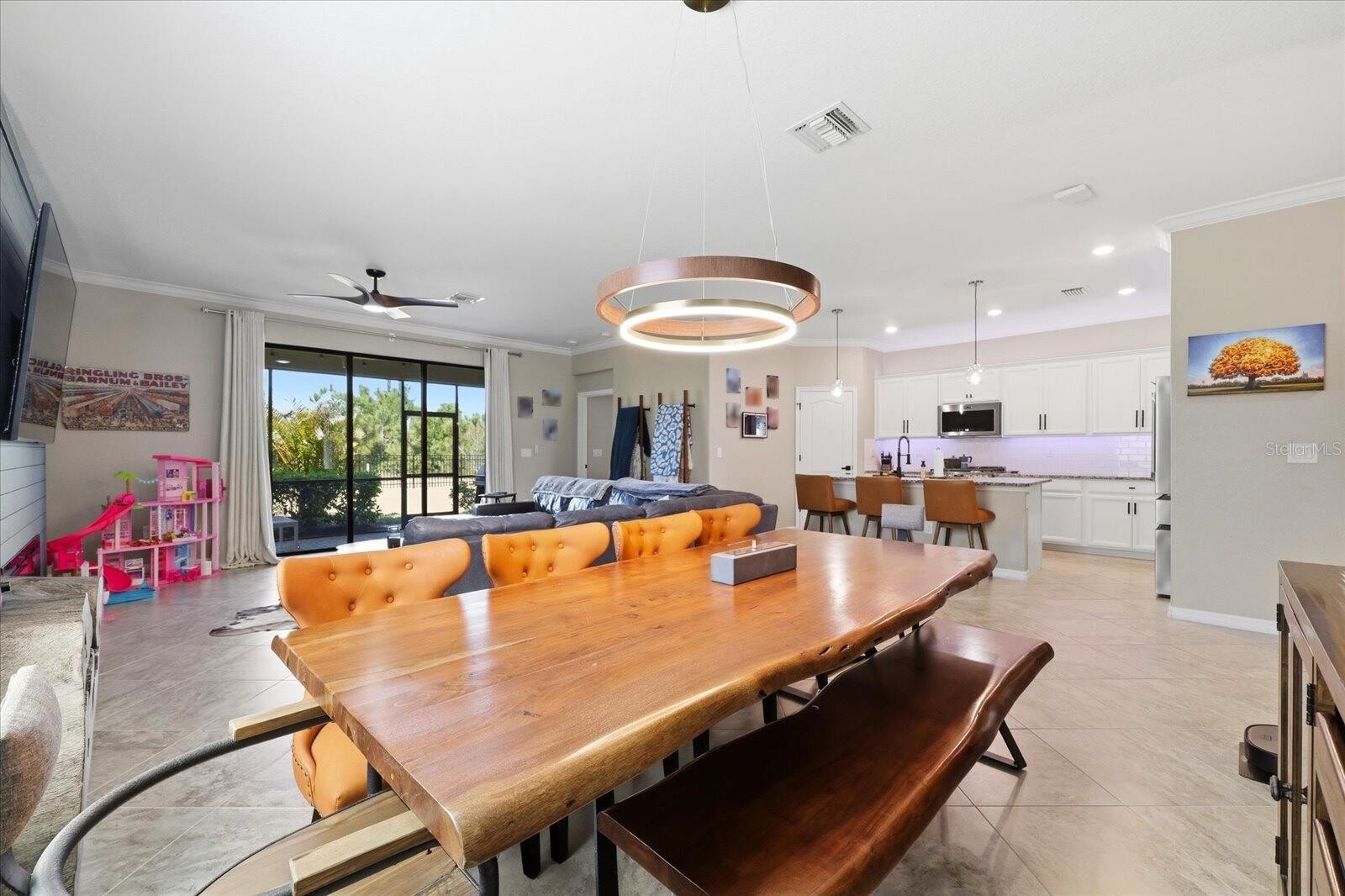 Step into comfort and luxury in the resort-style community of Polo Run, conveniently located off route 70. Find thoughtful upgrades at every turn in this smart, solar-powered 3-bed, 3-bath home. Starting outside, effortlessly park your large vehicles in your newly expanded driveway. The newly epoxied garage is perfect for storing your golf cart—ready for a quick ride through the neighborhood. Unwind in your newly fenced backyard, where serene tree-lined views provide added privacy. Inside, the home welcomes you with a stunning shiplap entertainment wall with an electric fireplace—ideal for cozy, relaxing evenings. The kitchen is designed for both everyday living and entertaining, featuring brand-new 2026 appliances, including a six-burner convection range, refrigerator, microwave, and new cabinet hardware and faucet. Each bathroom features new lighting and updated faucets. The primary bathroom has been upgraded with a modern pivot shower door, creating a spa-like retreat. Smart home features enhance convenience and security, including an ADT Command Smart Security Panel, keyless entry lock, smart thermostat, and an Echo Show 15 Full HD 15.6" smart display in the kitchen, along with connected room screens—allowing you to control music and more from anywhere in the house. Residents of Polo Run enjoy access to exceptional amenities, including a well-equipped fitness center, yoga and ballet studio, resort-style community pool, playground, and tennis and pickleball courts. Enjoy grocery stores and shopping centers 5 minutes away, central location to schools, the brand new Lakewood Ranch Public Library, all while being proximate to Siesta Key beach, rated #1 in the U.S. by U.S. News & World Report for 2026. Schedule your showing today!
