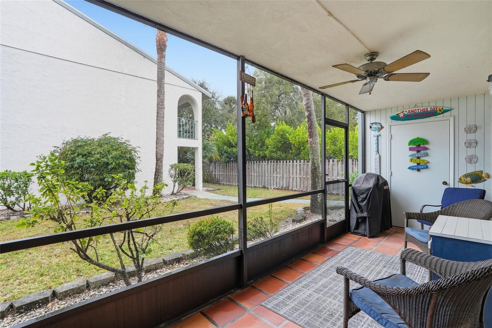 Remodeled and move in ready, this first floor end corner unit in the highly sought after Manasota Beach Gardens perfectly blends style, comfort, and coastal convenience. ONLY 1/2 MILE TO MANASOTA KEY BEACH! Imagine starting your mornings with a short stroll to the sand, spending afternoons soaking up the sun, and enjoying sunset walks along the Gulf just steps from your front door. Step inside to the EXTENSIVELY REMODELED KITCHEN with tile flooring, thoughtfully reconfigured by the seller from the original layout to maximize both function and storage. The KRAFTMAID CABINETRY features soft close doors, dovetail drawers, and quality craftsmanship, paired with STAINLESS STEEL APPLIANCES for a clean and timeless look. A PANTRY CLOSET WITH PULL OUT STORAGE was added during the renovation and is unique to this unit, offering convenient space for small appliances and pantry goods while keeping the kitchen organized and clutter free. The kitchen flows effortlessly into the dining area, living room, and screened in lanai, creating a bright open space ideal for entertaining or relaxing after a day at the beach. The split bedroom layout provides privacy and flexibility, making it ideal for guests or rental use. The guest bedroom features PLANTATION SHUTTERS and is conveniently located near the guest bathroom, creating a comfortable and welcoming space for visitors. The spacious primary bedroom is located on the opposite side of the unit and is paired with a FULLY REMODELED PRIMARY BATH. Vinyl plank flooring in the bedrooms adds warmth and durability, while the bathrooms and kitchen feature tile flooring for easy maintenance and a polished look. The FULLY REMODELED PRIMARY BATH features MATCHING KRAFTMAID DUAL SINK VANITIES with countertops that match the kitchen and guest bath, creating a cohesive and consistent finish throughout the home. Lighted mirrors add a modern touch, while the WALK IN GLASS ENCLOSED SHOWER was completely remodeled and includes a BUILT IN BENCH for everyday comfort. Interior upgrades include CROWN MOLDING THROUGHOUT, NEW LVP FLOORING AND BASEBOARDS, and MATCHING KRAFTMAID VANITIES WITH GRANITE COUNTERTOPS in both bathrooms. Additional highlights include a PRIVATE BACK PATIO AND TWO EXTERIOR STORAGE CLOSETS, perfect for bikes, paddleboards, beach chairs, and all your coastal gear. This property also presents an exceptional opportunity for a buyer seeking a seasonal residence or short term rental investment. The community allows 30 day rentals up to 12 times per year, making it highly appealing for snowbirds or Airbnb guests who will love being able to walk to the beach and experience the ultimate Florida lifestyle. Enjoy a low maintenance lifestyle with access to the COMMUNITY POOL AND CLUBHOUSE, along with nearby INTRACOASTAL WATERWAY ACCESS, KAYAK AND BOAT LAUNCHES, SHOPPING, DINING, MEDICAL FACILITIES, AND MAJOR ROADWAYS, all just minutes from the pristine Gulf shores of Manasota Beach, where every day truly feels like a vacation.