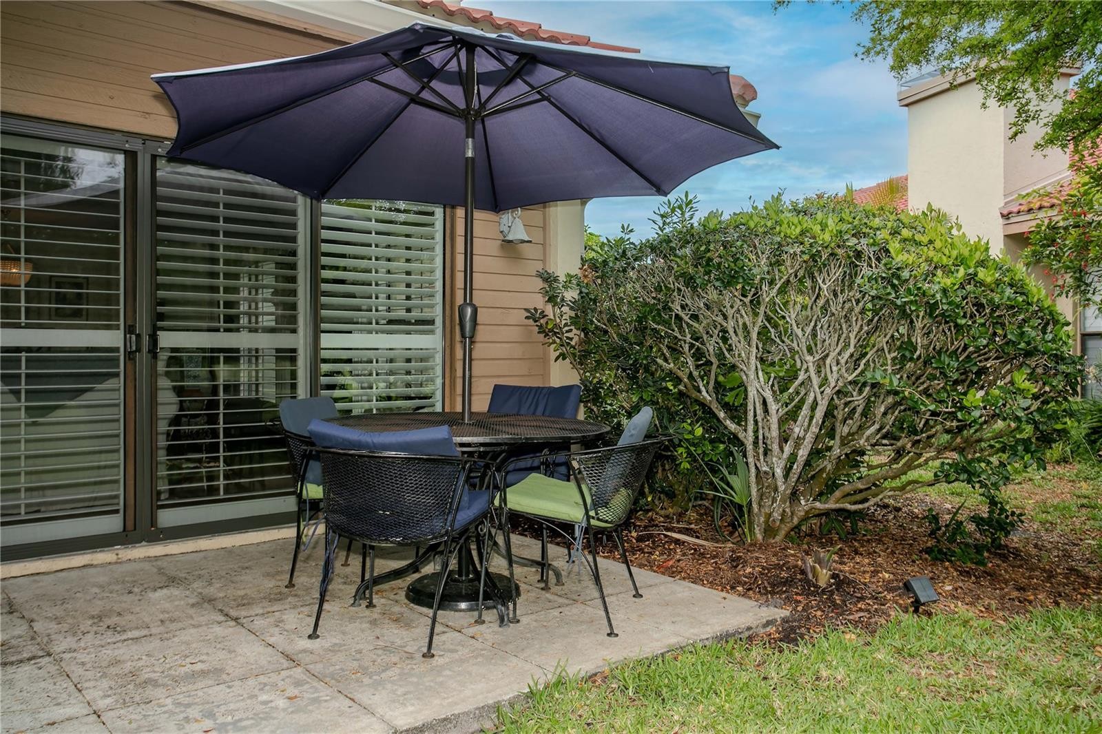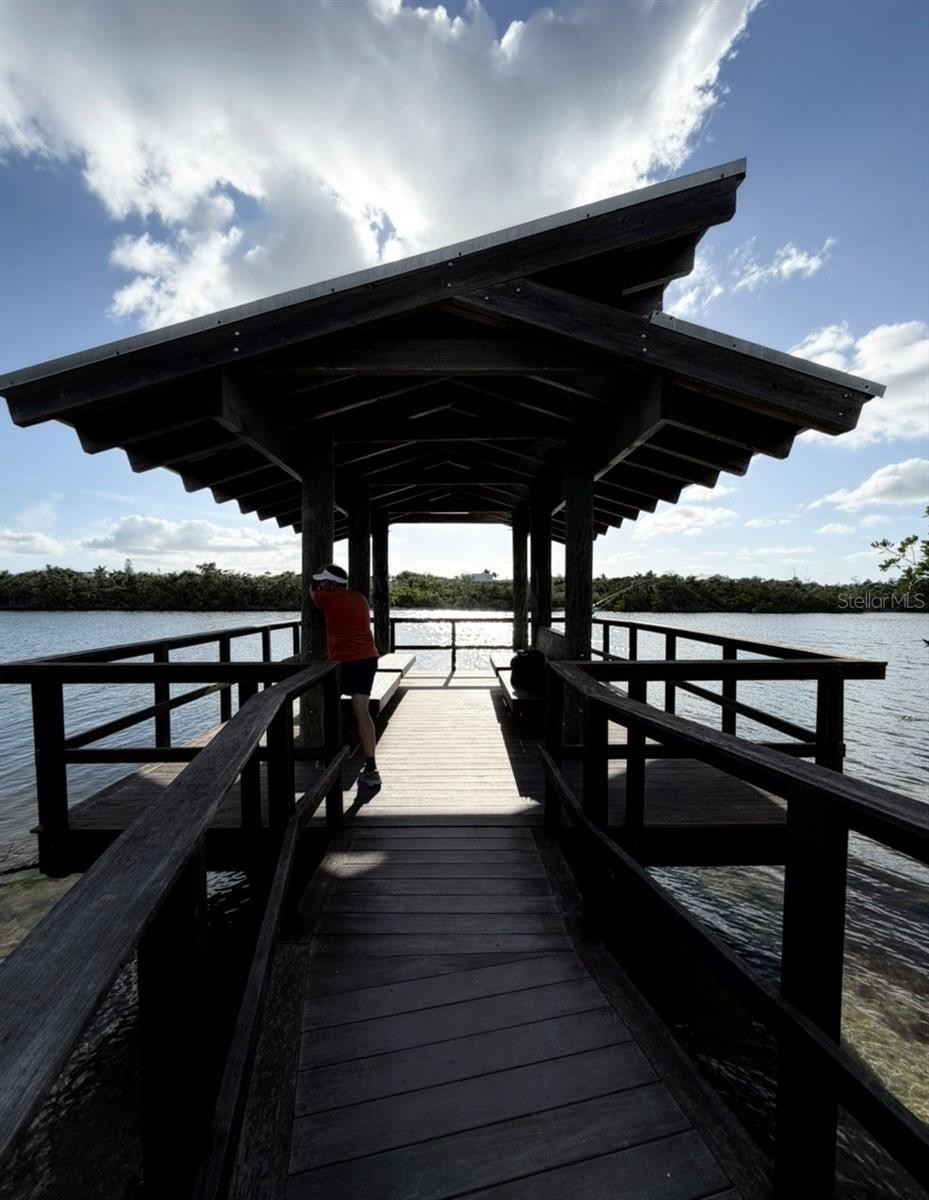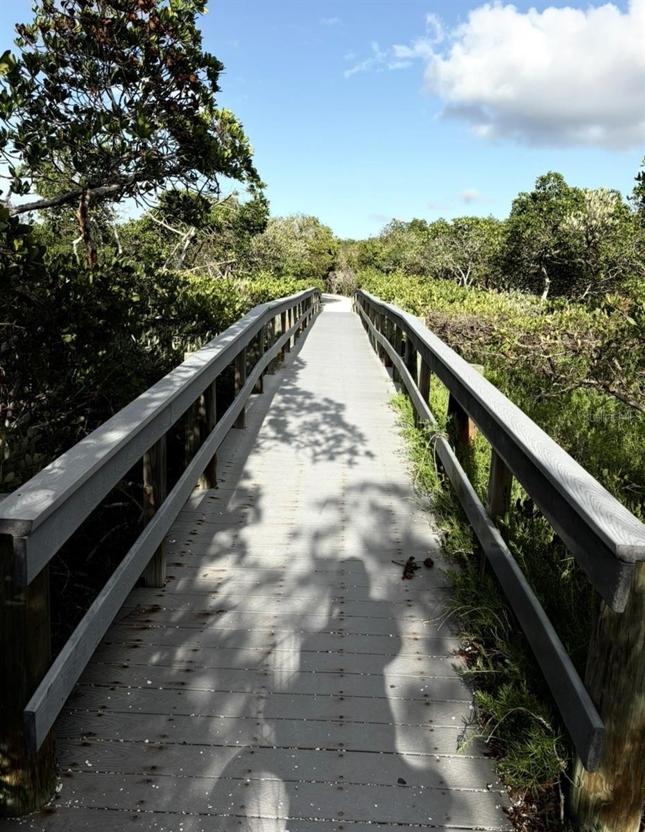 THIS RARELY AVAILABLE and highly sought-after Landings Carriage Home, nestled within mature landscaping and offering verdant vistas from every room, is ready for its next owner. This residence lives like a single-family home, featuring a charming living area with a wood-burning fireplace, custom mantle, glass-topped shelf divider, and LVT plank flooring. Abundant windows fill the home with natural light, while plantation shutters provide privacy and character. The surrounding landscaping includes hibiscus, palms, ferns, and flowering trees, supported by an irrigation system, creating a peaceful garden setting. A paver driveway and walkway enhance the welcoming curb appeal. The split floor plan offers privacy, with a spacious primary suite featuring a dressing-room-style closet. The updated primary bathroom includes a walk-in shower with travertine, stone vanity top, high ceilings, and mirrored and tiled accents. The suite also features a ceiling fan and access to a private patio. The guest bedroom offers two closets and a full patio door for natural light. The second bathroom includes a granite-top vanity and tub/shower combination. The dining area is highlighted by a coastal-style glass bead chandelier. A glass-enclosed lanai provides flexible space for an office, den, or guest area. The kitchen features newer stainless steel appliances, granite countertops, a breakfast area, and a patio door leading to a private walled courtyard with a ceramic tiled fountain—ideal for relaxing or outdoor dining. Residents of The Landings enjoy scenic nature trails leading to Roberts Bay, along with a private fishing gazebo and kayak launch. Conveniently located between the Siesta Key bridges and approximately seven miles to downtown Sarasota. THIS IS THE LOCATION!! New additional gutters (2025), new TPO lanai roof (2026), new barrel tile roof (2022 association maintained), tankless hot water heater, new GE stacked full size washer and dryer with wifi capability (2021), new stainless steel Kitchen Aid appliances (2023), new garbage disposal (2024), new wifi controlled thermostat (2022), newer A/C system, create a home for you to easily move right into. Landscaping and building exterior maintenance are included in the monthly fees, so you are free to take advantage of the ideal Landings location—strategically developed as one of Sarasota’s premier gated communities with optional Racquet Club membership with 8 Har-Tru tennis courts, pro shop, fitness center, meeting rooms, pool and spa. The Landings has a lush well maintained nature trail that leads to Roberts Bay with a private fishing gazebo and rental space to park your kayak. Midway between the two Siesta Key bridges and approximately 7 miles from downtown—this is THE LOCATION.”