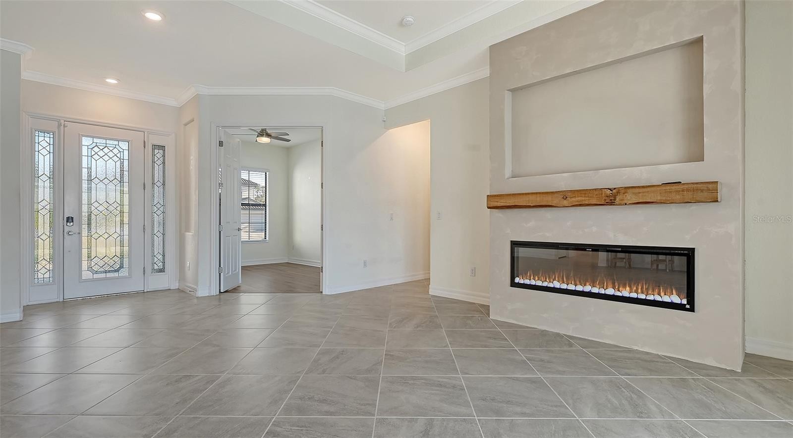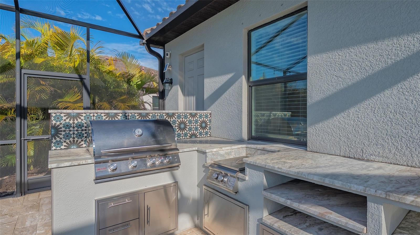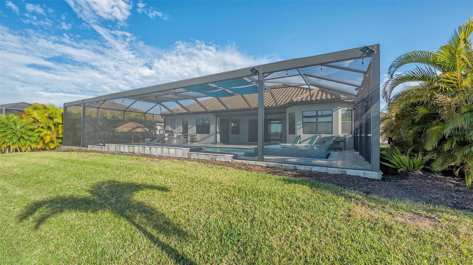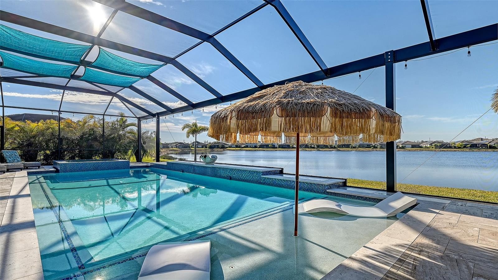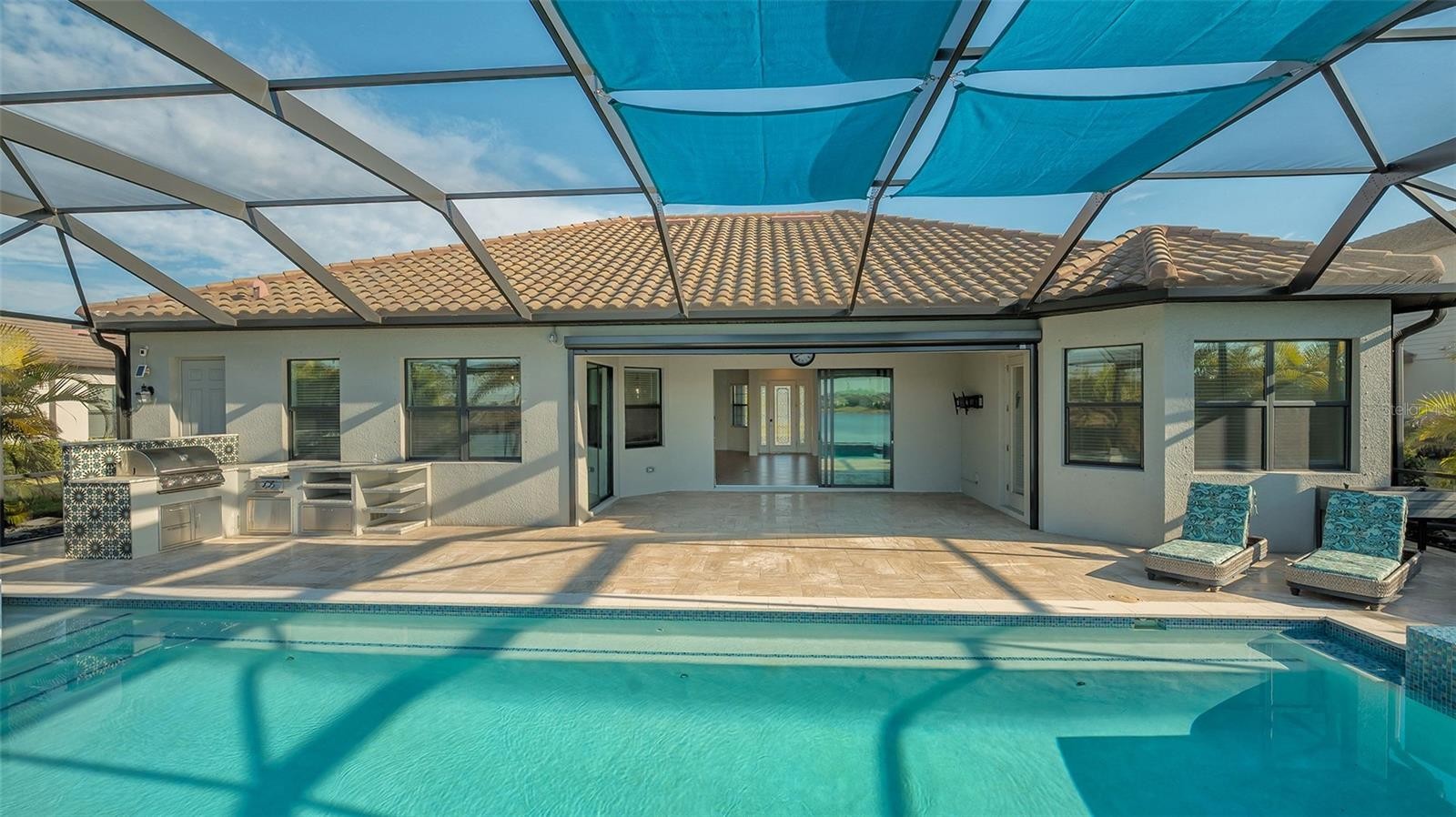 Step into effortless elegance in this open and and bright 4 bedroom, 2.5 bath beauty designed for both comfort and entertaining. A bright, flowing floor plan welcomes you with abundant natural light and a cozy electric fireplace in this open floor plan. The custom TV build-out adds a sleek, modern touch while providing stylish display options. At the heart of the home is a spacious kitchen featuring a large island - perfect for meal prep, casual dining and gathering with family and friends. The kitchen opens seamlessly to the main living areas, creating an ideal space for hosting and everyday living. This gracious home extends beautifully outdoors, where a natural gas outdoor kitchen invites al fresco dining and weekend gatherings. Enjoy peace of mind and year-round comfort with hurricane screens, a whole-home water purification and softener system, and generator prep already in place. There is also garage A/C and insulated garage ceiling and door panels. Your private backyard oasis is truly show-stopping, featuring panoramic screening for unobstructed views, outdoor kitchen, travertine tile, a gorgeous custom saltwater pool with both natural gas and electric heater, a relaxing Roman shelf, an inviting hot tub, and elegant Sunbrella pool shades for sun-soaked days or cool, shaded lounging and Fenetex Hurricane Screen. Whether hosting friends or unwinding after a long day, this special home offers the perfect blend of luxury, functionality, and resort-style living. Polo Run is a solar community with numerous community amenities including a clubhouse, resort style pool, fitness center with aerobics room, tennis, pickleball and bocce courts, playground and dog park. Polo Run is a solar community. Lease transfers to buyer at close.