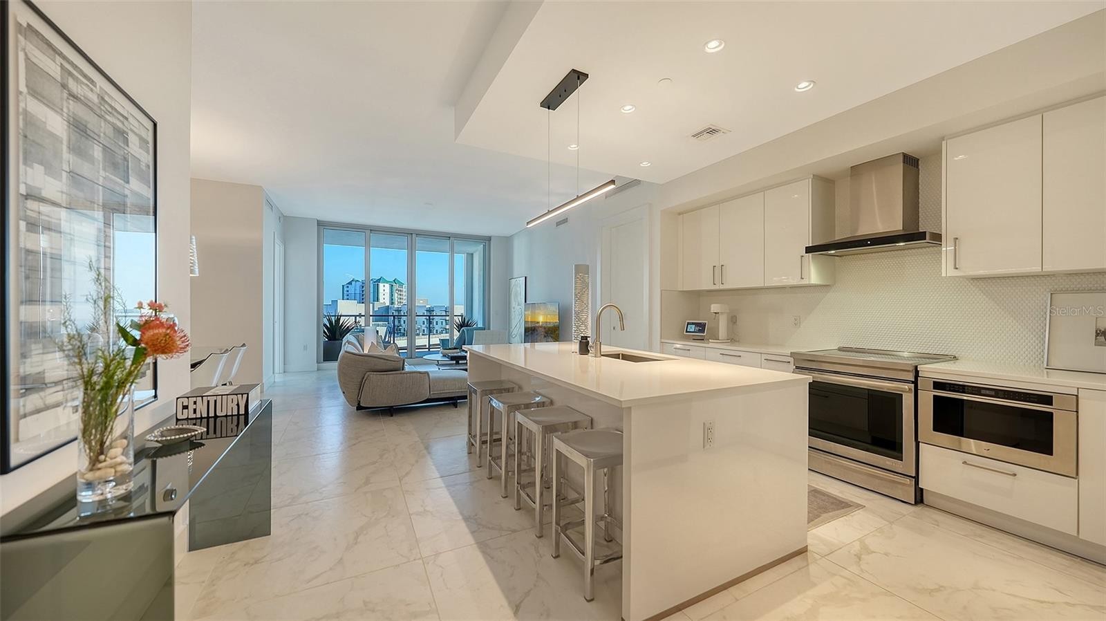 Convenient LOCATION! Expansive WATER VIEW! Handsome RENOVATION! Welcome to your Personal Paradise! DOWNTOWN Sarasota on prized GOLDEN GATE POINT. View of SARASOTA BAY and the elegant John Ringling bridge from all rooms. This Third Floor Condo has been beautifully redone. *New Kitchen from studs out *High Quality GE Café Kitchen Appliances *Convenient Undercounter Microwave Drawer *All New Electrical Wiring and Electric Panel *CAT5 Wiring installed *Stylish -not the usual- Ceiling Fans and Recessed Lighting *New HVAC Air Handler and Compressor *New Water Heater *New Bathrooms, one with Rain-showerhead *New Crown Molding *New Wood Flooring throughout. Light and Bright Kitchen with its Sea green Quartz Countertop, Ample Cabinets and Storage, with a hidden stacked Full-sized Washer/Dryer on the pantry end of the kitchen. Living Room space features a sleek, electric Fireplace, with decorative color-changing crushed glass rocks, that also provides heat. Hunter Douglas Window shades for all windows. Two Bedroom Suites, each with plenty of closet area, split plan, one currently being used as an office/guest suite. Closets with Container Store quality closet organizer, shelving changeable as you choose. Assigned carport parking with your own storage room, ready for your beach chairs, bicycles and paddleboards! SARASOTA is known for its beaches, its restaurants, its arts and entertainment: this Central Location lets you easily reach them all! And if you don’t want to leave home, most delightful is being able to enjoy this wonderful view from your armchair in your modern condo!