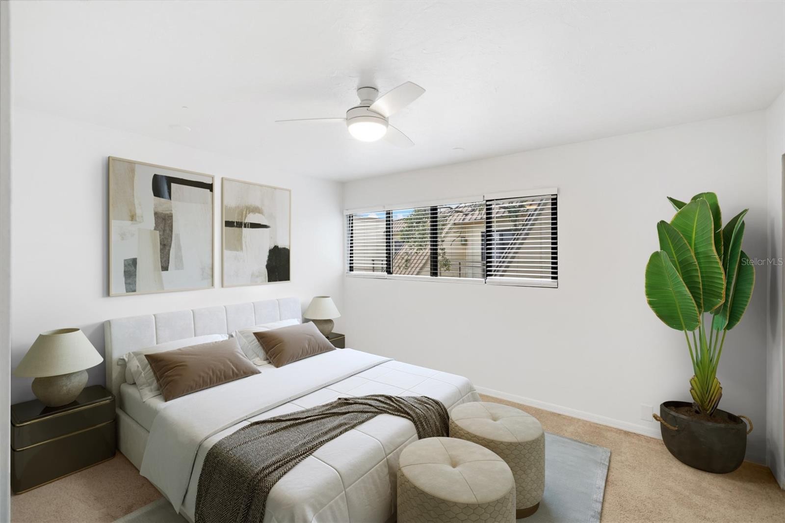 Hudson Oaks offers true waterfront living in the heart of downtown Sarasota, set in a lush and tranquil setting with water views and boating access. This beautifully updated 2-bedroom, 2-bath, two-story condo is part of a hidden-gem community tucked between historic Laurel Park and vibrant Burns Court. You’re just minutes from Sarasota’s top restaurants, boutique shops, Selby Gardens, the Bayfront, and a short ride to Lido Beach and St. Armands Circle. Hudson Oaks provides a blend of waterfront serenity and downtown convenience. Residents enjoy access to private boat docks, a kayak launch, a swimming pool, a grilling area, and a pedestrian bridge that connects directly to Laurel Park. The Hudson Bayou is a protected waterway with small-boat access to Sarasota Bay—ideal for kayaking, paddleboarding, or simply taking in the views. Inside, the home features a split-bedroom layout with both bedrooms located upstairs for privacy. The primary suite includes a walk-in closet and a private covered balcony with beautiful water views. The en-suite bathroom has been tastefully renovated with an upgraded vanity and a walk-in tiled shower with a glass door. The second bedroom is also spacious and filled with natural light. A fully updated guest bathroom with a modern vanity and tiled walk-in shower completes the upper level. Downstairs, the open-concept living and dining areas are bright and airy, with large sliding glass doors leading to a balcony that overlooks the bayou—perfect for relaxing or entertaining. The updated kitchen features granite countertops, pull-out shelving, stainless steel appliances, a subway-tile backsplash, and a pantry closet. A large center island offers additional prep space and room for casual seating. The layout is open to the living area and provides direct access to the fully screened-in balcony off the kitchen with a peaceful pool view, offering a separate outdoor space to enjoy. Recent upgrades include a new roof (2020), kitchen renovation (January 2025), and refreshed bathrooms with new vanities, sinks, faucets, and toilets. All windows and sliding doors come with clear hurricane panels, which are included in the sale. This condo also comes with the largest storage room in the building—perfect for bikes, beach gear, or seasonal items—and a covered carport with an EV hookup, exclusive to this unit in Building B. The HOA is financially strong and fully compliant with Florida’s updated SIRS (Structural Integrity Reserve Study) requirements, with a licensed reserve study specialist having completed the analysis. Schedule your private showing today and experience this rare opportunity for waterfront living in downtown Sarasota.