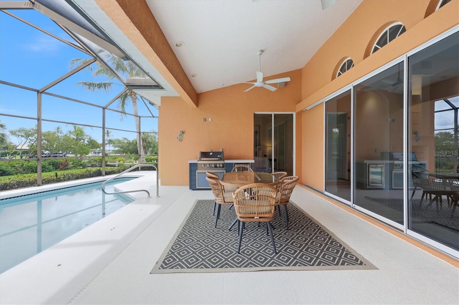 Welcome to this EXCEPTIONAL waterfront residence in the exclusive gated community of Amberwynd on Snead Island where you'll enjoy the luxury of living on a protected canal waterway that spills right into Terra Ceia Bay and the Gulf of Mexico .... and your every day paradise! Enter through double leaded glass doors into this custom built John Cannon home situated on a large half acre property offering four bedrooms and three bathrooms thoughtfully designed for versatility that also includes a private In-Law Suite with kitchenette, a dedicated study, a sitting room and an additional second floor hobby room above the garage. Inside, the home showcases impressive architectural details including soaring 12 foot tray ceilings, crown molding, arched doorways, transom windows, central vacuum system, two fireplaces, multiple niches and a custom built entertainment center. The open concept design flows seamlessly to the outdoor living space through disappearing sliding glass doors creating the perfect indoor-outdoor lifestyle. The kitchen is designed for entertaining and creating your special dishes with stylish glass display cabinetry, abundant cabinet space, pendant lighting and an expansive bar seating area. A cozy breakfast nook, surrounded by aquarium windows, captures the stunning swimming pool and water views. Step outside to your large screened lanai and beautiful caged swimming pool & spa complemented by a new outdoor summer kitchen complete with a wine refrigerator. The future owner of this gorgeous home will be pleased to know that there's a 10,000 lb. boat lift in addition to a 2026 dock ($55,000), which is in the process of being installed. This spectacular home is set in a backdrop of lush tropical landscaping that blends in perfectly adding to the relaxed island ambiance. Highlights include a three car garage, a 2025 tile roof, paver driveway entry and lanai, outdoor shower, sprinkler system with a new well, motor and pump, an updated 2019 and a 2024 HVAC system. This is a rare opportunity to own a luxurious waterfront retreat in one of Snead Island's most desirable communities.