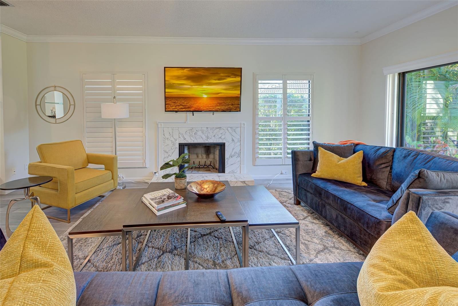 Welcome to the gated community of the Landings and the Landings Racquet Club in Sarasota. Currently available off-season starting May 15, 2025 at 3000/mo. Association rules allow 2 rentals in a calendar year. A rare find to lease this beautiful carriage house condo at The Landings! This two bedroom, two bath +den, one story Carriage House is where you want to be! Bed sizes are King and Queen. The large living room has designer tile flooring, marble wood burning fireplace, crown molding and park like views leading to a small pond with a fountain and the community pool. The dining area overlooks the living room with new floor tile, crown molding and plenty of room for family gatherings. The sunny bonus room off the dining area is set up as an office with 2 desks and a sofa sleeper for extra company. The master suite has a King bed with newer carpeting, shutters, crown molding, walk-in closet and a remodeled bathroom. The guest bedroom has a Queen bed and the guest bathroom has a tub and shower combination. The eat in kitchen has granite counter tops, tile backsplash, refaced cabinets and all new Whirlpool appliances. There is a delightful small courtyard perfect for morning coffee or outside grilling. There also two outside sitting areas off the Living and master bedroom to enjoy the calm and peaceful views. The Landings Racquet Club membership transfers to the guests. Tennis players will love the Har-Tru tennis courts, and guests will get a good work-out in the lap pool. Relax in the hot tub to soothe sore muscles. The clubhouse has a fitness center, meeting rooms and a library. Guests pay the monthly electric bill on off-season rentals. Off-season rate in effect from May-November. Not available January 1 - April 30, 2026.