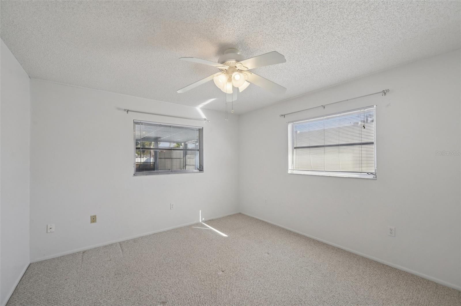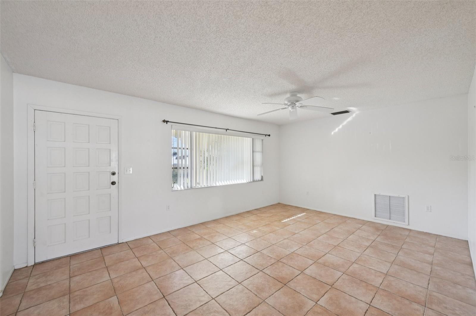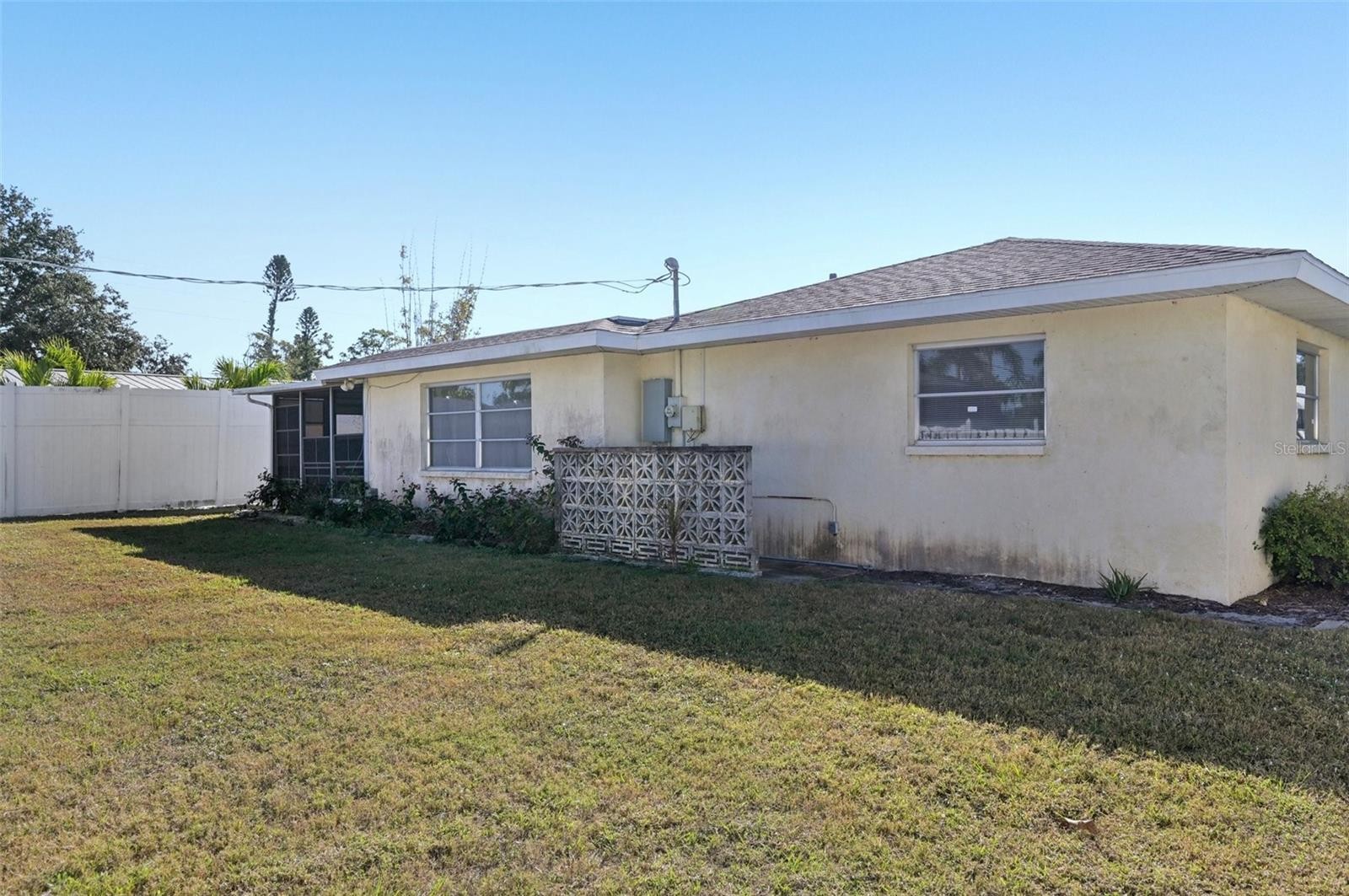 Charming Florida-Style Home with Inviting Curb Appeal! Welcome to this inviting Florida-style residence (not in a flood zone), offering classic charm, a bright and airy feel, and a thoughtfully designed single-story layout for comfortable living. A soft stucco exterior, arched architectural details, mature tropical landscaping, and a curved walkway create a warm and welcoming first impression, while the covered entry adds both character and convenience. Inside, fresh neutral interiors are filled with natural light and complemented by ceramic tile flooring throughout the main living areas, with soft carpeted bedrooms providing comfortable retreats. The open living and dining areas flow seamlessly, making the space ideal for everyday living or entertaining. The kitchen features light cabinetry, a mosaic tile backsplash, generous counter space, and included appliances. The primary bedroom includes a walk-in closet. The guest bedroom provide flexibility for guests, a home office, or hobby space. Enjoy year-round comfort with central air and heat, ceiling fans throughout, and durable concrete block construction. Outside, low-maintenance landscaping completes this move-in-ready home, offering a pleasant outdoor setting ready to be enjoyed or personalized. Washer and Dryer are very old. Hot water heater is 2009. Roof is 2015. AC is 2.5 years old.