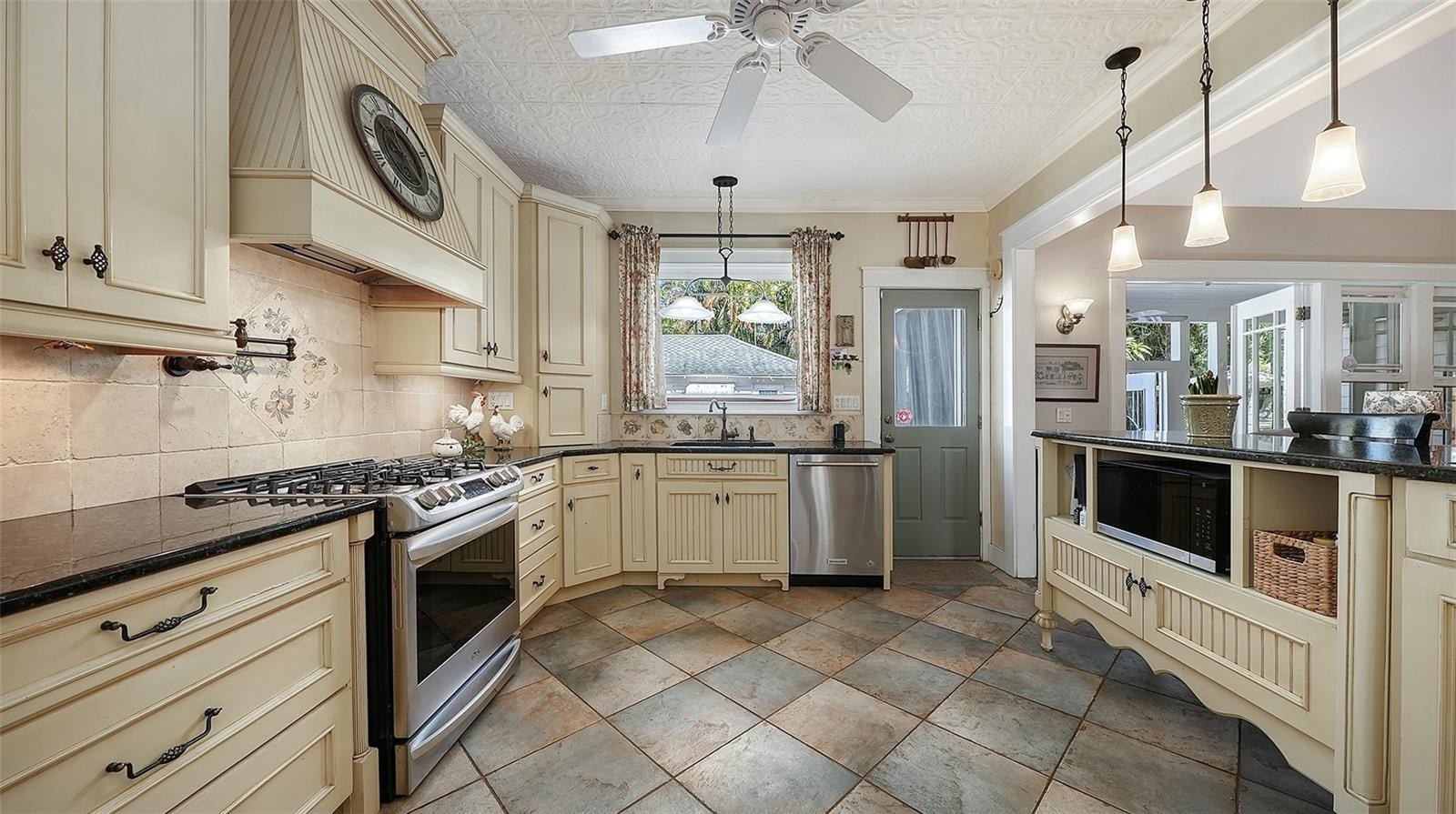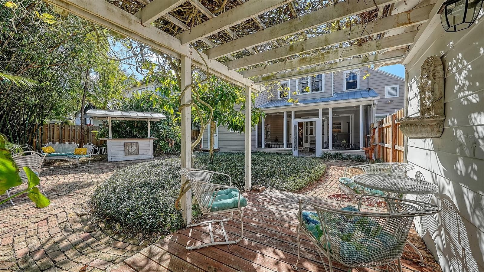 In the "heart" of the most popular West of Trail neighborhood, step into a rare piece of Sarasota history just a short stroll to Southside Village restaurants and shops, downtown and 2 blocks to Sarasota Memorial Hospital. Behind a classic white picket fence, this 1926 home welcomes you with a generous yard framed by mature landscaping and colorful gardens. A cozy front porch sets the tone for your entrance into timeless architectural details which blend seamlessly with modern updates. Wood floors run throughout the living areas with natural light pouring in through numerous windows. Tall ceilings are complimented by original wood trim. All the details we love in an older home yet with many updates. The main home offers 2,575 sq ft thoughtfully laid out for everyday living and entertaining. The main level features multiple living spaces, separate dining room, a guest bedroom, a dedicated office and laundry room. Upstairs, the spacious owner's suite plus an additional bedroom with ensuite bathroom provide comfort and privacy. The remodeled kitchen is beautifully appointed with granite counters and custom cabinetry AND....a charming 306 sf studio-style guest cottage that has its own entrance and patio. COME SEE THIS BEAUTY, you will LOVE it.