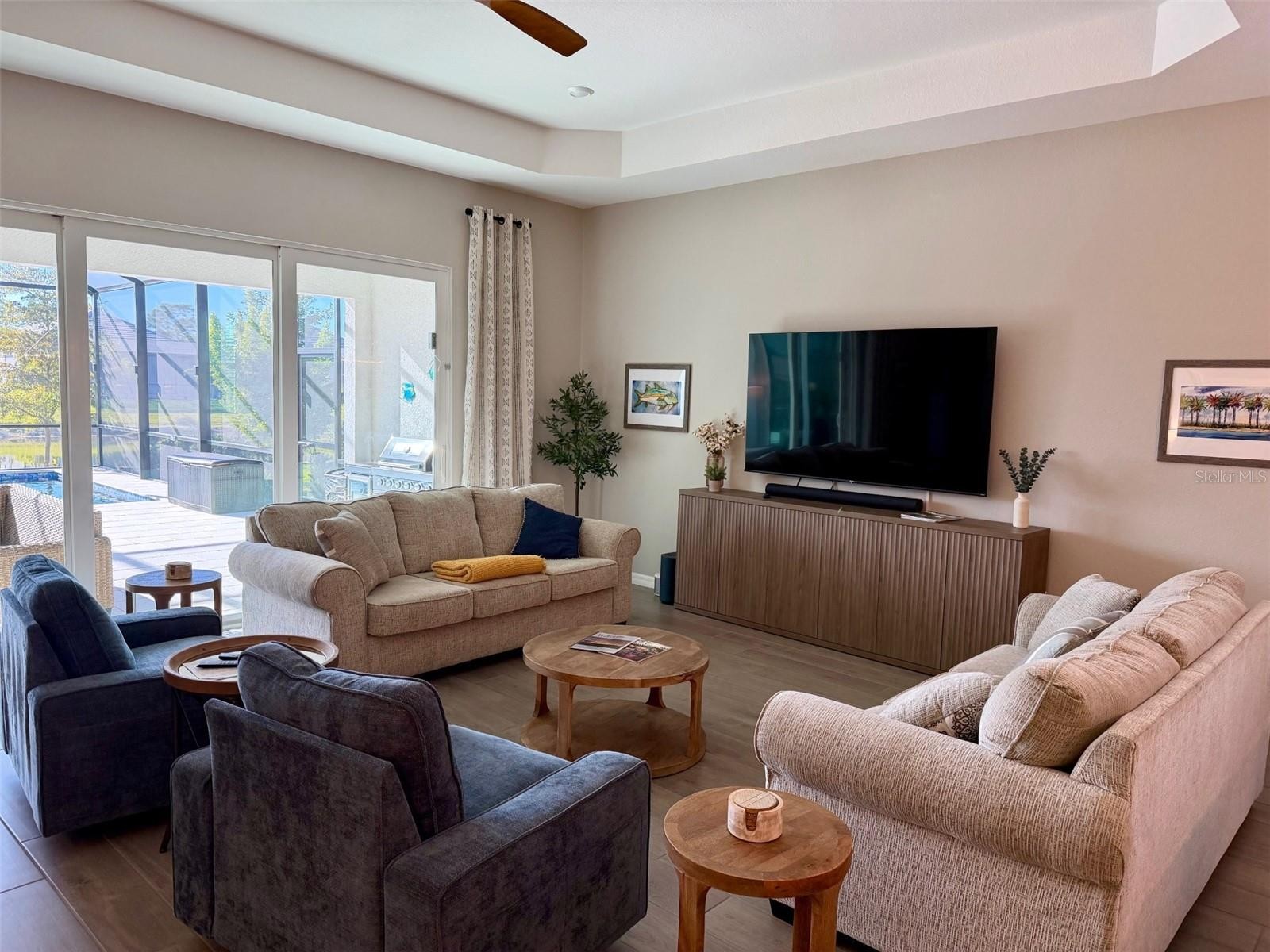 Welcome to 17577 Santorini Ct, a stunning 3-bedroom, 2-bath home designed for effortless Florida living. Perfectly blending comfort and style, this residence offers an open-concept layout with spacious living areas, abundant natural light, and a seamless flow ideal for both everyday living and entertaining. The kitchen overlooks the main living and dining spaces, creating a warm and inviting atmosphere for gathering with family and friends. The primary suite serves as a private retreat with generous space, a well-appointed en-suite bath, and peaceful views of the outdoor area. Two additional bedrooms provide flexibility for guests, a home office, or hobby space. Step outside to your own private oasis. The screened-in lanai features a sparkling private pool and a fully equipped outdoor kitchen—perfect for hosting weekend barbecues, enjoying sunset dinners, or simply relaxing in the Florida sunshine. With plenty of space to lounge and entertain, the backyard truly sets this home apart.
