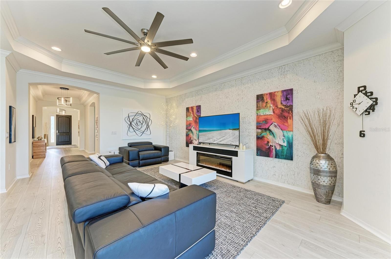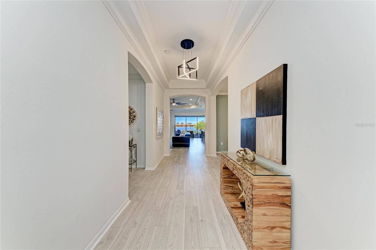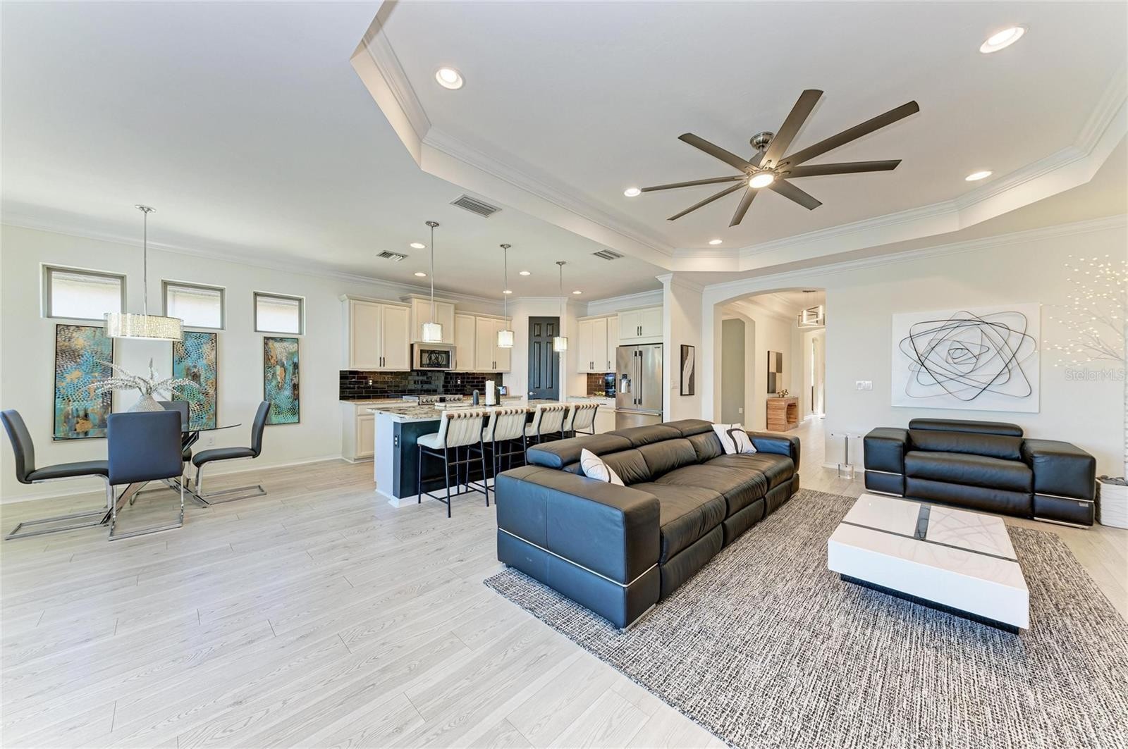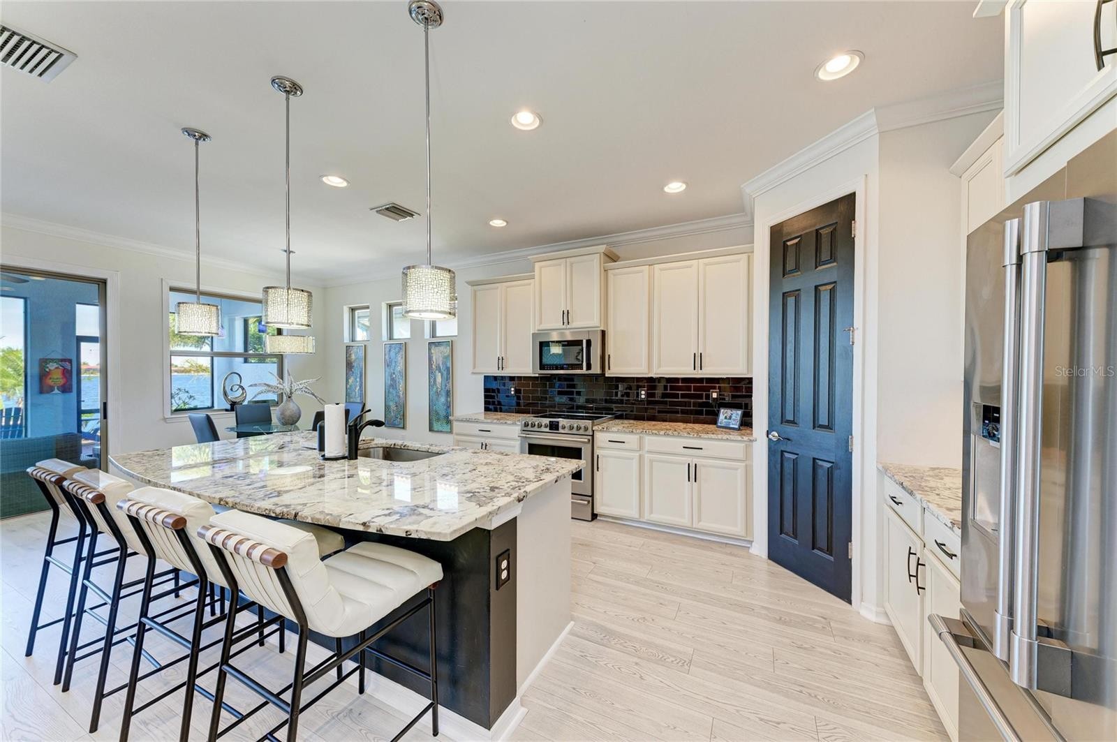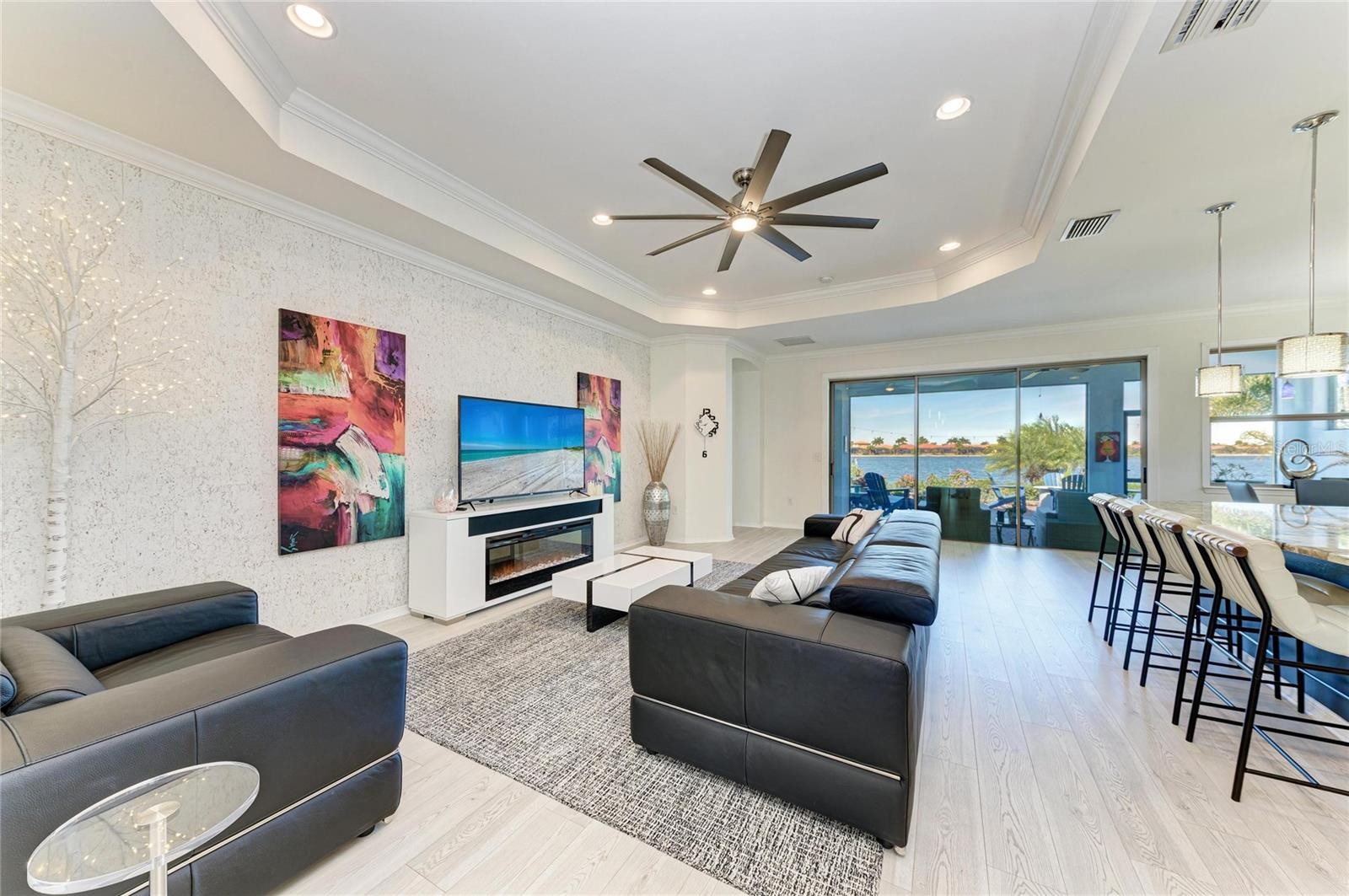 Your dream waterfront oasis is here! Welcome to this beautifully updated 4-bedroom, 3-1/2 bath home, perfectly nestled on one of the best lakefront lots in the community. Prepare to be captivated by the breathtaking views of Lake Awesome! Step inside and feel the spaciousness of the interior, designed with all the modern features that today’s buyers desire. The highly sought-after Ashbury floor plan highlights exquisite architectural details, such as elegant tray ceilings, lavish crown molding, and impressive 8-foot interior doors. The open layout allows for effortless living with split bedrooms, featuring the serene primary suite at the back, where you can wake up to those picturesque lake views. The thoughtfully placed secondary bedrooms at the front and side of the home offer perfect privacy for family and guests alike. Culinary enthusiasts will adore the open kitchen, showcasing stunning Level 5 granite countertops, a stylish backsplash, and upgraded stainless steel appliances. The large dinette area, bathed in natural light and overlooking the lake, is perfect for casual meals, while the formal dining room can easily transform into an inviting den or cozy sitting area for entertainment. You’ll love the convenience of a spacious laundry room adjacent to the garage, equipped with built-in cabinets, a practical laundry sink, and chic designer tile flooring. The owners have elegantly updated the secondary bathrooms with high-end tile and modern sinks, while warm wood plank vinyl flooring flows throughout the main living areas, including the primary and third bedrooms. Finishing touches like ornate wall treatments and designer lighting elevate the overall sophistication of this home. Experience a lifestyle that feels like a daily vacation in Toscana Isles, a gated, resort-style community designed for active living! Imagine kayaking, canoeing, or fishing on over 200 acres of interconnected lakes! The impressive 8,000-square-foot clubhouse is a fantastic hub filled with amenities, including a fitness center, ballroom, and a billiards room with a big-screen TV, perfect for creating unforgettable memories. Just a quick 10-minute drive takes you to the gorgeous Suncoast beaches, the scenic Legacy Bike Trail, and all the vibrant shopping, dining, and cultural attractions in Venice and Sarasota. With the new Sarasota Memorial Hospital campus right nearby, you have everything you need conveniently at hand. Seize this amazing opportunity! Discover the exceptional lifestyle awaiting you in this remarkable home and community. Contact us today for your private showing, you’ll be so glad you did!