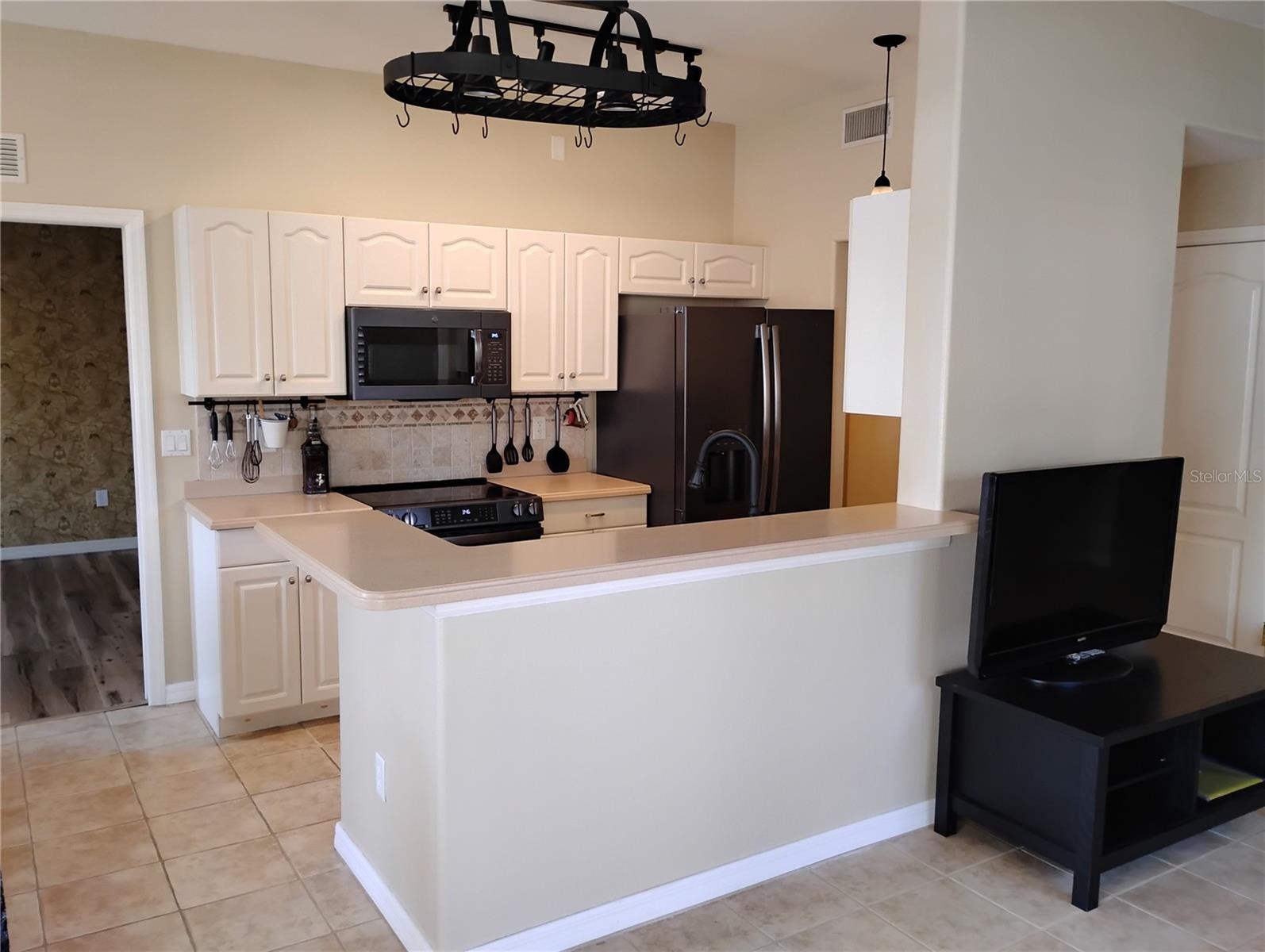 WOW!! Check out this beautiful first floor end unit Condo with views of the heated community pool and clubhouse. The location is so convenient to everything in Venice and the surrounding area. Just off East Venice Ave, your are less than 10 minutes from the best beaches in Southwest Florida, Venice Island and all the great shops and restaurants, 3 miles to I-75 with access to the entire state and Sarasota only 20 minutes away. A true 3 bedroom, split plan with a lovely great room open kitchen and dining area overlooking the lake. Each bedroom offers privacy, nice closets and window treatments. The first of three bedrooms, as you enter the unit was used as media room wired for surround sound. The second of three is down another hall offering more privacy, just off that hall is your main bath with a rain shower head, a full linen closet with plenty of room for guests and family. The master is just off the kitchen area featuring a pocket door, no wasted space, large with a view of the lake. Enjoy the oversized master bath, featuring a full walk in closet with built in shoe rack, a second standard closet, double sink vanity, large shower with built in seat, private water closet. All with pocket doors, saving the floor space. The great room features include a recessed area b=perfect for a Large TV or sitting nook, a breakfast bar and direct access to a wonderful lanai, fully screened with exit door leading to the pool, almost feels like it's your own. Room for a 4 seat patio set and table and a great view of the lake. The exterior was recently painted, March 2026 by the HOA, no special assessments and it looks amazing. The kitchen is a chef's dream with all new appliances, Microwave have never been used, still has the packing tape on it. Large side by side and beautiful stove. Lots of cabinets and the crown jewels include a Pot rack light above breakfast bar, a full pantry closet, large enough for your extra appliances and food, no need to leave them on the counter. The inside laundry has an extra bonus area that the seller used as an office. Large enough for a full side execute desk, file cabinet and addition storage. Laundry room includes Maytag washer and dryer, storage and the new H2O Heater, replaced in March 2026/AC replaced in June 2025. Outside you will find a full 1 car garage with a automatic opener with Keypad and 2 remotes, belt just replaced April 2026, great to store your car if you are only here part time. Room for storing your beach chairs and floaties too. Don't miss this unit, it will not last at this price, some furnishing may convey or they can be removed, buyers choice.