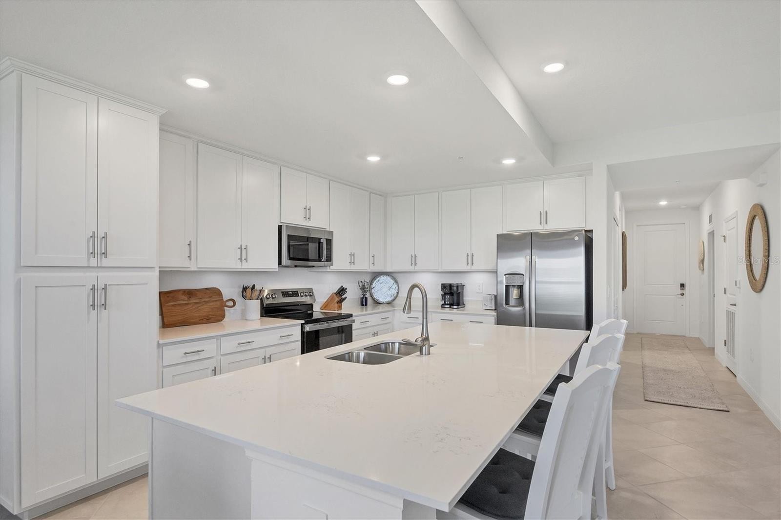 Turn-Key, brand NEW, beautifully furnished 2-bedroom, 2-bath FIRST floor condo on the 6th hole of the Wellen Park Golf & Country Club Championship Golf Course, a guard-gated community located in the heart of Wellen Park. This home reveals a bright and airy open-concept floor plan with the main living, kitchen and lanai area overlooking this amazing golf course ideal for entertaining, watching the golfers or taking in the magnificent Gulf Coast sunsets. The generous kitchen is well appointed; a chef’s delight and a full-size washer and dryer in the laundry room. The master bedroom has a king bed, walk-in closet, wall-mounted TV and ensuite bathroom, the guest bedroom has a queen bed. Residents can enjoy the resort-style amenities including a full-service tiki-bar, state of the art fitness center with a luxurious sauna, a full-service spa, sparkling resort style pool, bocce courts, pickleball and tennis courts with a resident pro, a fully stocked golf pro shop, and amazing aqua driving range with FULL GOLF MEMBERSHIP. Minutes away is the Cool Today Park (Atlanta Braves Stadium), the ever-growing jubilant downtown Wellen Park with a myriad of eateries, fine waterfront dining, local boutiques and vibrant arts and cultural events, miles of pedestrian trails and parks, and the gorgeous Gulf Coast beaches for the ultimate Florida lifestyle. Lease price may vary depending on duration and season.
