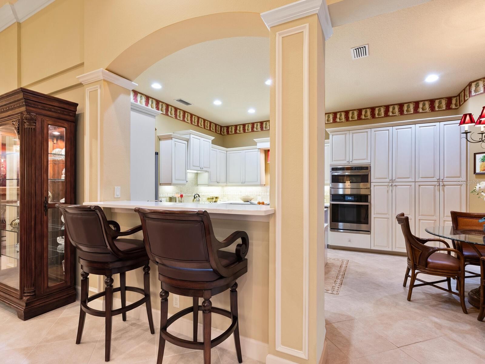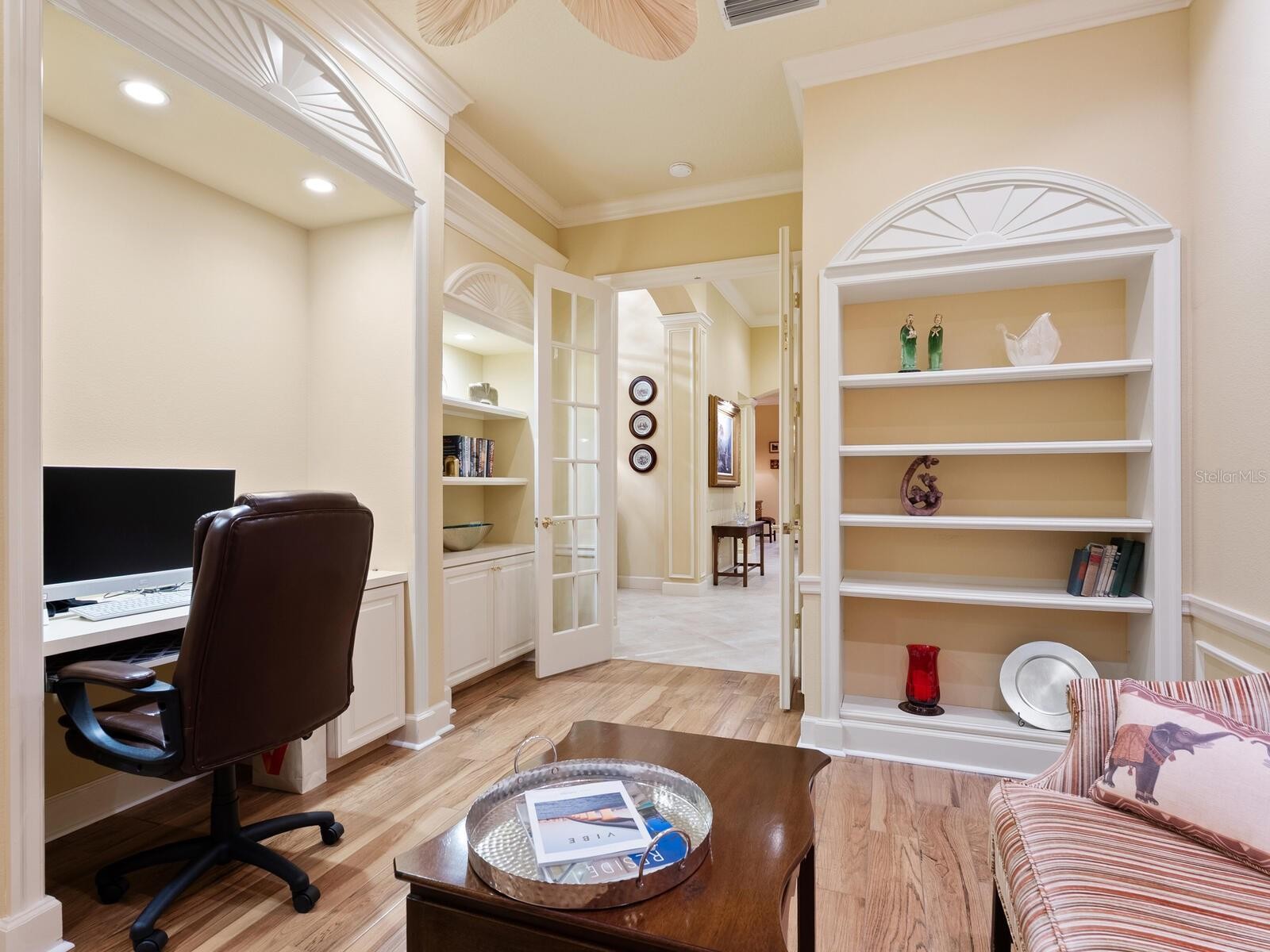 This custom Arthur Rutenberg Bardmoor II is in pristine condition and maintenance free! The dramatic Tuscan exterior has actual stone appointments. As you enter through the double leaded glass doors, you are greeted by grand archways, tray and waffle ceilings and detailed built-ins. An ideally sized home with great room, formal dining room, three bedrooms and three baths (den or fourth bedroom). The gourmet kitchen with stainless appliances, quartz, custom cabinetry and a pass-thru wet bar open to grand views through aquarium windows in the breakfast nook. The den/library boasts hardwood flooring and detailed moldings. The large primary bedroom has a double tray ceiling, expansive bay window and private entry to the pool. The spacious paver outdoor living area has a Jacuzzi and pool overlooking a private preserve with grand lake views. The oversized garage has a separate door for your golf cart. Feel secure with the new barrel tile roof. The Country Club offers golf, tennis, pickleball, restaurant, bar and many activities, phenomenal dog park and close to the beach! Soon, Boca Royale’s gates will open in Wellen Park for dining, shopping and the ballpark.