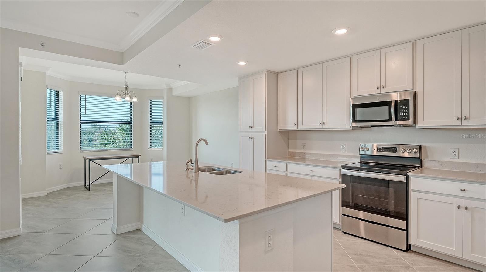 Welcome to Paradise and Lakewood National where you can enjoy a resort lifestyle that includes 36-holes of an Arnold Palmer designed golf course and amenities galore such as a Grand Clubhouse with restaurant, a zero entry swimming pool with lap lanes, heated spa, Tiki bar, 8 lighted Har-Tru tennis courts & more. This 2BR/2B condo is in impeccable condition, move-in ready and is located on the third floor near one of the satellite pools. You will enjoy memorable sunsets and for your peace of mind, the windows are all hurricane-impact glass. You will particularly appreciate the open floorplan with a well appointed kitchen that includes stainless appliances, shaker cabinets, quartz countertops and tiled backsplash. For your convenience, there is an in-unit washer and dryer. Elevators are available within the building for access to all floors. Ideal to live-in or to rent out with a minimum 30-day lease, up to 12 times per year and located in Lakewood Ranch, which has been voted #1 US multi-generational community five years in a row, providing a rich-social environment of fine shopping and dining, outdoor activities that include music, Polo matches, art festivals, farmer's market, miles of walking trails and more. Why don't you call today?