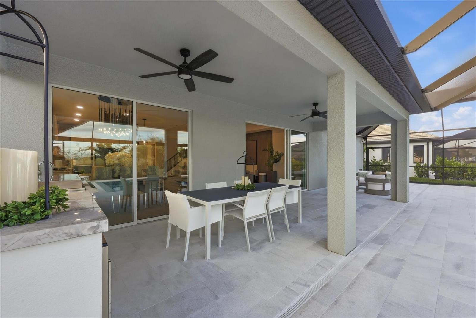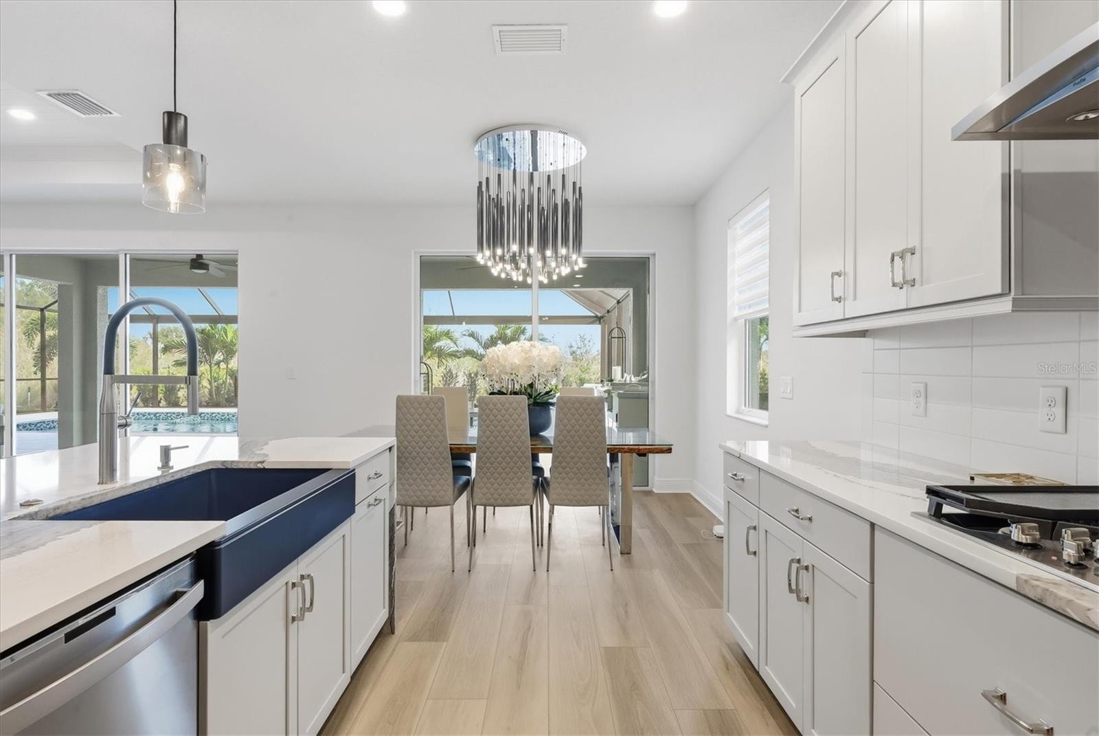 This stunning custom four-bedroom residence with a private office and expansive bonus room, located within the Sweetwater neighborhood of Lakewood Ranch, represents an exceptional blend of refined design, thoughtful upgrades, and effortless Florida living. Every element of the home has been carefully curated to balance beauty with function, creating a residence that feels both elevated and warmly inviting. Upon entering through the custom hurricane-rated glass panel front door, you are welcomed into a thoughtfully designed floor plan featuring three bedrooms conveniently located on the main level, along with a private office framed by elegant double doors—ideal for working from home or creating a quiet retreat. Throughout the home, custom architectural wall and ceiling details, designer lighting, and fine finishes reflect a level of craftsmanship and timeless sophistication rarely found. At the heart of the home, the main living areas flow seamlessly, offering an inviting setting for both everyday comfort and gracious entertaining. The chef’s kitchen is beautifully appointed with upgraded appliances, beautiful cabinetry, and a custom-designed pantry, thoughtfully created to satisfy even the most discerning home chefs. The oversized primary suite serves as a serene sanctuary, offering generous proportions, custom-designed closets, and a stunning spa-inspired en-suite bathroom with upscale finishes that elevate daily routines into moments of indulgence. Upstairs, a generously sized bonus room provides the perfect space for hosting guests or creating a secondary living area, complete with a dry bar and ample storage. This level also includes a spacious bedroom with a built-in desk area, walk-in closet, and en-suite bath, offering comfort and privacy for guests or family members. Outdoor living is equally impressive. The expansive lanai is designed for year-round enjoyment and entertaining, featuring a fully equipped outdoor kitchen, a large resort-style pool accented by beautiful leathered pavers, and a custom built-in spa, all set within a private, beautifully landscaped setting. Modern conveniences enhance peace of mind and future-ready living, including a generator hookup, EV charger, and a whole-house water purifier and softener system, providing comfort, efficiency, and quality throughout. Located in Sweetwater at Lakewood Ranch, residents enjoy close proximity to world-class amenities, exceptional dining and shopping, top-rated schools, and the lifestyle that has made Lakewood Ranch one of the most desirable communities in Florida. This is a rare opportunity to own a home where architectural detail, modern luxury, and an exceptional location come together seamlessly.