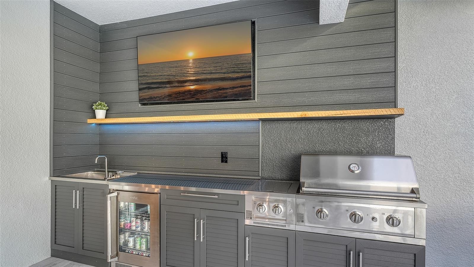 Rare, refined, and truly one of a kind, this stunning EMERALD SERIES HAWTHORNE MODEL is NO LONGER AVAILABLE TO PURCHASE NEW in Star Farms, making this an opportunity you simply cannot replicate. This exceptional 4-bedroom, 3-bathroom, 3-car garage residence has been elevated far beyond its original build with a curated collection of designer upgrades and outdoor amenities that must be seen to be believed. Step outside and enter your own private resort. The centerpiece is a sparkling POOL AND SPA wrapped in elegant MARBLE DECKING, complete with both a POOL HEATER AND CHILLER so you can swim in comfort year-round. The fully equipped OUTDOOR KITCHEN is ready for everything from casual weeknight dinners to weekend entertaining, all framed by FIVE MATURE PALM TREES that set a lush, tropical tone. But the showstopper? A PRIVATE 16.5' x 32.5' PUTTING GREEN, a feature so rare in a residential setting that your guests won't believe it's real. Inside, every detail has been thoughtfully considered. Sleek BLACK HARDWARE on cabinetry, doors, and the kitchen faucet creates a cohesive, modern aesthetic that feels both bold and timeless. Fresh INTERIOR AND EXTERIOR PAINT gives the home a crisp, move-in-ready feel, while upgraded LIGHTING AND CEILING FANS throughout add warmth and style to every room. The front entry makes a grand first impression with stunning MARBLE PAVERS, while the EPOXY-COATED GARAGE FLOORS add a clean, polished finish. Additional upgrades include WHOLE-HOME GUTTERS and a REVERSE OSMOSIS DRINKING WATER FILTRATION SYSTEM for pure, clean water right at the tap. Star Farms is one of the most dynamic and amenity-rich communities in all of Lakewood Ranch, offering resort-style pools, fitness facilities, walking trails, and a true sense of community — all within minutes of world-class dining, shopping, top-rated schools, and the beautiful Gulf Coast beaches. This is more than a home. It's a lifestyle upgrade. Schedule your PRIVATE SHOWING today — homes like this don't come around twice.