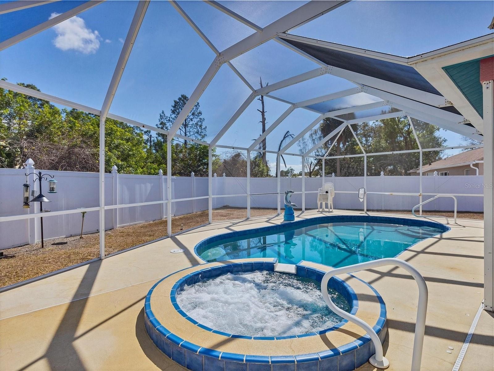 Welcome to your slice of paradise in beautiful North Port! This inviting 3-bedroom, 2-bath home at 1782 Shevlin offers a thoughtfully designed split floorplan that blends comfort, functionality, and privacy. From the moment you step inside, you’re greeted by soaring high ceilings and an abundance of natural light that fills the living spaces, creating a bright and airy atmosphere you’ll love coming home to. The open-concept layout is perfect for both everyday living and entertaining. The spacious primary suite is privately situated on one side of the home, while the guest bedrooms are tucked away on the opposite side—ideal for family or visitors. Large windows and sliding glass doors draw your eye to the sparkling pool and spa, inviting you outdoors to relax and unwind. Step outside to your private backyard retreat featuring a screened-in pool with spa—perfect for morning coffee, weekend gatherings, or peaceful evenings under the Florida sky. Whether you’re hosting friends or enjoying quiet time, this outdoor space is designed for year-round enjoyment. Located in the heart of North Port, you’ll appreciate the easy access to shopping, dining, parks, and everyday conveniences. Enjoy nearby outdoor adventures at Warm Mineral Springs Park, explore scenic trails and wildlife at Myakkahatchee Creek Environmental Park, or spend the day soaking up the sun at the Gulf beaches just a short drive away in Englewood and Venice. If you’re looking for a home that offers space, light, privacy, and the true Florida lifestyle, this one checks all the boxes. Come experience the warmth and charm for yourself—your North Port oasis awaits!