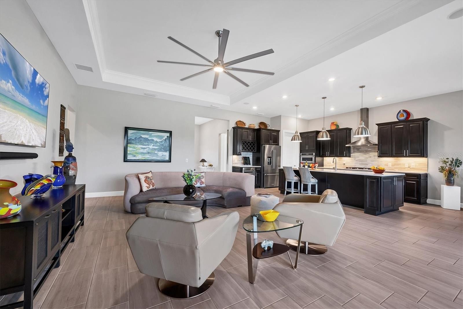 Under contract-accepting backup offers. Welcome to resort-style living in Del Webb at Lakewood Ranch, a vibrant 55+ gated community designed for ease, connection, and comfort. This beautifully situated 2021-built home offers peaceful water views and expansive nature preserve scenery from your private screened pool courtyard. Enjoy the best of Florida’s indoor-outdoor lifestyle with sliding glass doors that stack open from the great room to the patio, creating a seamless flow for indoor-outdoor living, entertaining, and relaxing. The open-concept Stellar floor plan features 11-foot ceilings, porcelain tile flooring, a neutral color palette, and a split-bedroom layout for maximum privacy. The spacious primary suite includes a double vanity, water closet, walk-in shower with a bench, linen storage, and an oversized walk-in closet. The guest suite offers an en-suite bath and charming bay window, while the third bedroom is adjacent to a full hallway bath. A den with French doors provides a quiet, bright retreat for a home office, library, or gallery. Additional highlights include a rare 3-car garage with epoxy pebble-finish floors and built-in storage, a durable tile roof, and concrete block construction for full maintenance-free living and peace of mind. The heart of the community is the welcoming clubhouse, where a full-time lifestyle director connects residents with a variety of amenities— from fitness classes and social events to tennis, pickleball, swimming pools, and on-site dining at the Lake House restaurant and bar. This is your opportunity to enjoy beautiful living in one of Florida’s most desirable active adult communities. Take advantage of all the shopping and dining options at University Town Center, our new Mote Marine Aquarium, Downtown Lakewood Ranch, Farmers Market, and lakeside restaurants at Waterside