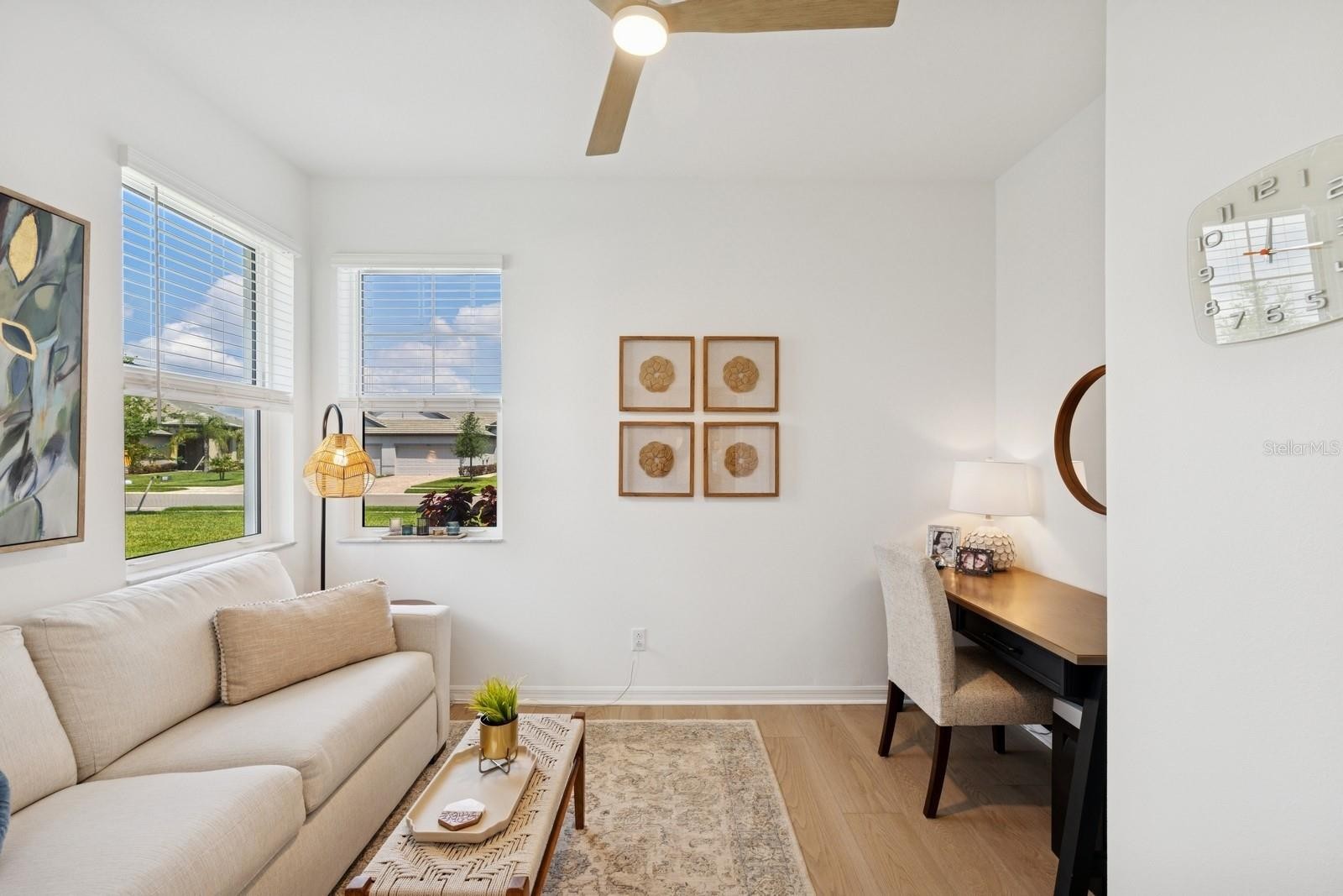 Experience the best of maintenance-free living in this totally updated 2-bedroom, plus Den/Office which can be used as an additional bedroom, 2-bath villa in Sweetwater at Lakewood Ranch community. Enjoy peaceful water views from the extended lanai perfect for entertaining or relaxing. The thoughtfully updated kitchen features pull-out shelves, soft closed drawers and cabinets throughout and a built-in-trash system, while the luxury primary suite boasts dual sinks, walk-in closet, and frameless glass shower. Additional highlights include a two-car garage with epoxy flooring, luxury vinyl flooring throughout and walking distance to all community amenities.