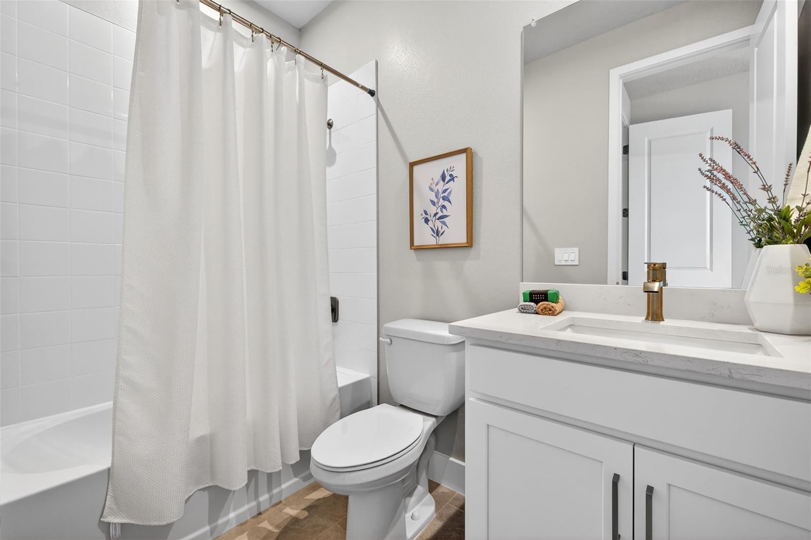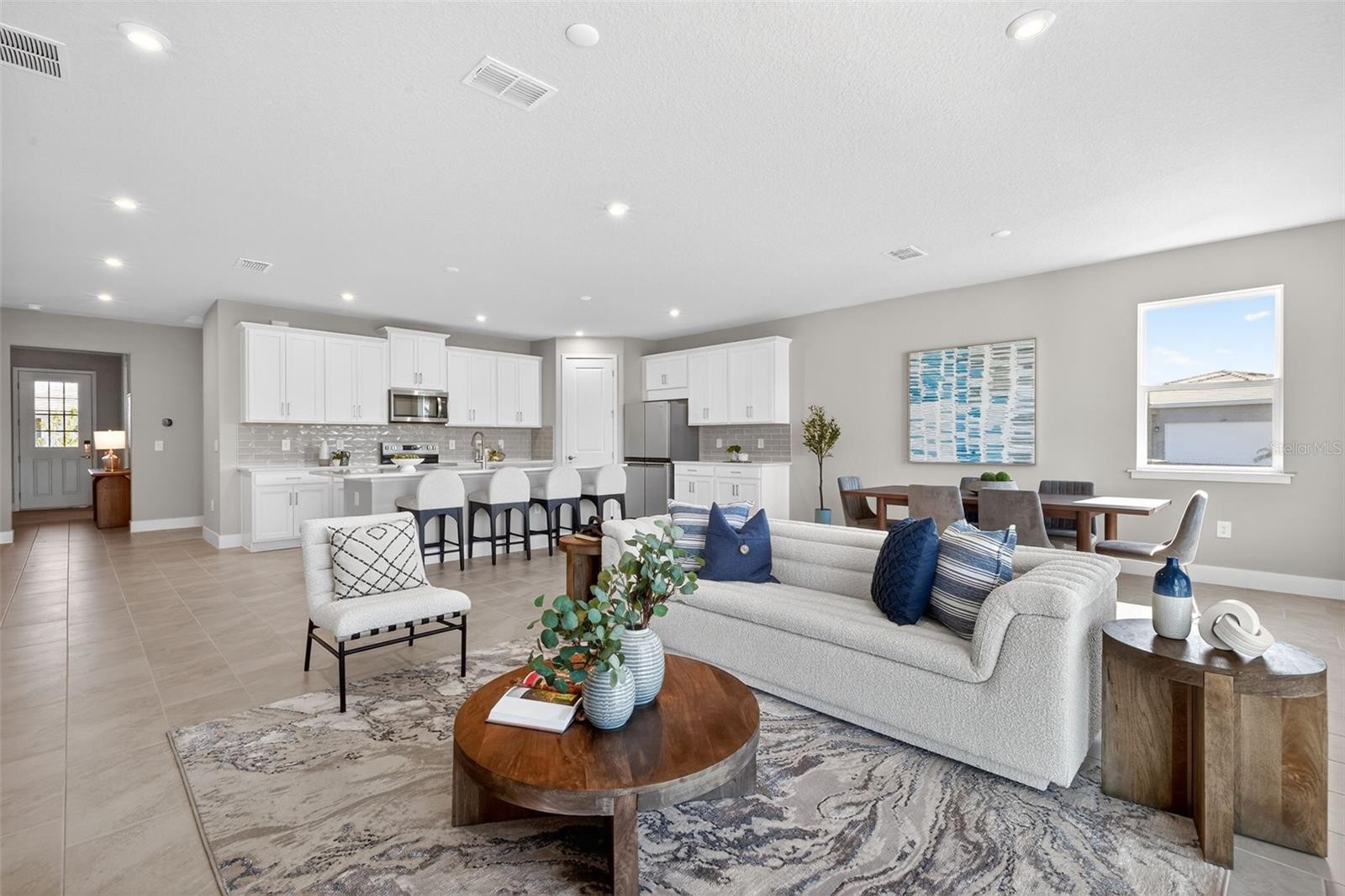 A bright, inviting sense of space welcomes you into this thoughtfully upgraded Gateway home, where soft, airy finishes and an open layout set the stage for relaxed Florida living. The kitchen features smooth linen-toned cabinetry with satin-nickel pulls, sleek light-marbled quartz counters, a coordinating stacked tile backsplash, an undermount stainless sink, and a complete Whirlpool stainless-steel appliance suite—plus an ENERGY STAR® 4-door refrigerator. Wide-format tile with a natural stone look flows throughout the main living areas in an elegant staggered pattern, while all bedrooms feature soft light-beige carpet for added comfort. A convenient stop-and-drop zone keeps daily essentials organized, and the home offers a full bedroom-and-bath suite in lieu of the flex room—perfect for guests or multigenerational living. The owner’s suite provides a peaceful retreat with spacious dual vanities, rectangular undermount sinks, and a clear-glass shower wrapped in bright stacked tile. Additional highlights include raised-height bath vanities, upgraded interior trim, 8-foot interior doors, and a covered lanai overlooking the backyard, finished with textured pavers in a West Indies pattern. A washer and dryer are already installed for easy move-in. Sunstone residents enjoy two lifestyle-rich amenity campuses, featuring resort-style pools with lap lanes, a fitness center, pickleball courts, firepit lounges, dog parks, a tot lot, and multiple social spaces curated by a full-time Lifestyle Director. Located within a gated community near shopping, dining, entertainment and Gulf beaches, this home blends thoughtful design with the vibrant Wellen Park lifestyle. ***Photos, renderings and plans are for illustrative purposes only and may vary from the actual home. Pricing, dimensions and features are subject to change without notice or obligation. Photos may be of a model home and not the home offered for sale.