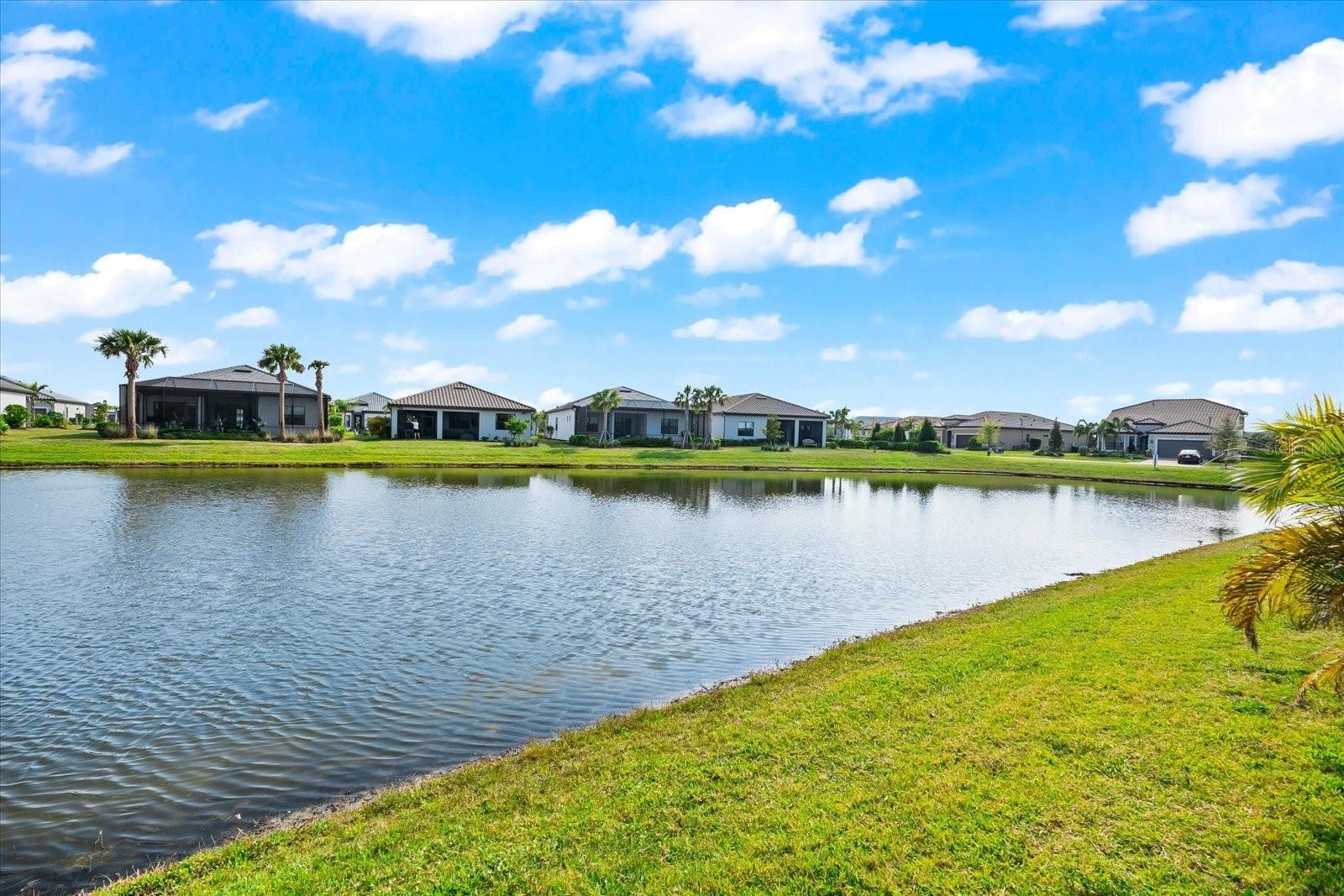 WHOLE HOUSE GENERATOR* IMPACT DOORS AND WINDOWS* PRICED TO SELL*Modern Comfort Meets Resort-Style Living in Del Webb Lakewood Ranch. Welcome to easy, elegant living in the heart of Del Webb Lakewood Ranch—one of the area's most desirable 55+ communities. Set on a premium south-facing waterfront lot, this beautifully upgraded Renown floor plan offers everything you need for comfort, style, and low-maintenance Florida living. Step inside to discover an open, airy layout with 3 spacious bedrooms, 3.5 bathrooms, and a flexible bonus room—perfect for a home office, hobby space, or additional living area. Thoughtful upgrades shine throughout the home, from tray ceilings and crown molding to plantation shutters and impact-resistant windows and doors. The gourmet kitchen is a standout feature, complete with Bosch induction cooktop, built-in double ovens, stainless steel range hood, 2-zone wine fridge, wine rack, reverse osmosis system, touchless faucet, custom cabinetry, and a perfectly organized walk-in pantry. The oversized island is the heart of the home—ideal for casual dining, entertaining, or prepping meals in style. The owner’s suite is your personal retreat, featuring a luxurious bath with dual vanities, an oversized walk-in shower, private water closet, and two custom walk-in closets. Two additional guest suites, each with their own private bath and walk-in closet, offer comfort and privacy for visitors. Enjoy peace of mind with a whole-house 24kW generator, water softener system, and an extended 3-car garage with built-in storage and epoxy floors. A separate powder room, drop zone, and large laundry room add to the home’s smart and functional design. Love the outdoors? You’ll appreciate the custom-designed heated saltwater pool and spa, extended brick-paver lanai, automatic sunshades, awning, and panoramic water views—perfect for relaxing or entertaining year-round. Large pocket sliding doors open wide to blend indoor and outdoor living effortlessly. Living in Del Webb Lakewood Ranch means more than just a beautiful home—it’s a lifestyle. Enjoy access to top-tier amenities including 6 tennis courts, 8 pickleball courts, bocce ball, a fitness center with group classes, a resort-style and lap pool, on-site restaurant and bar, and endless social opportunities organized by a full-time Lifestyle Director. With close proximity to Gulf Coast beaches, airports, shopping, dining, and culture, this home truly has it all. Move-in ready and meticulously maintained—don’t miss the opportunity to make it yours.