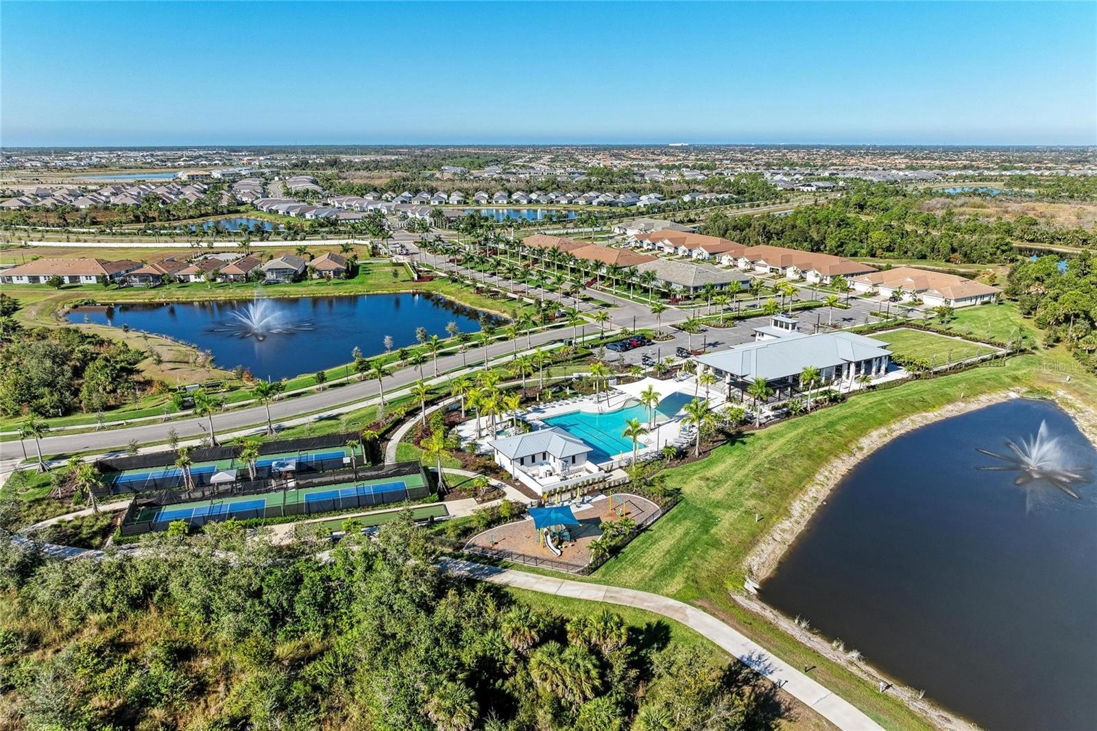 Welcome to this better-than-new 2024 Pinnacle floor plan in Sunstone at Wellen Park, perfectly tucked into the highly desirable Playmore District—where you can walk or take your golf cart to everything Wellen Park has to offer! This home screams LOCATION and BEAUTY alike! This 4 bedroom, 3 bathroom + den home offers an open-concept layout and comes fully loaded with high-end, better than builder upgrades already completed—saving you time, money, and the hassle of post-construction additions. CUSTOM UPGRADES include: luxury vinyl flooring throughout all living spaces, NO CARPET, plantation shutters, upgraded light and fan fixtures, brand new custom mirrors, lighting and tile in all bathrooms, crown molding throughout, custom pantry shelving, and a built-in primary closet! The kitchen is beautifully finished with new and upgraded appliances! Enjoy smart functionality throughout the home, including exterior cameras, a Clare smart doorbell, and an interior electric lanai sunscreen. Step out to the covered screened in lanai to enjoy peaceful lake views, enhanced by additional lanai pavers, creating the perfect space for relaxing or entertaining. The widened driveway adds both convenience and curb appeal. Built in 2024 and barely lived in, this home truly feels brand new—without the wait. It offers a level of finish and convenience that builder inventory simply can’t match. As a resident of Sunstone, you’ll enjoy an impressive lineup of luxury, resort-style amenities, including a resort-style pool with shaded seating, fire pit, state-of-the-art fitness center, clubhouse, full-time events manager, walking trails, pickle ball courts, playground, and gated entry for added security—plus so much more. Ideally located in the Playmore District, you’re just moments from Wellen Park’s dining, shopping, entertainment, and year-round events. Hop in your golf cart and head to Downtown Wellen Park or CoolToday Park for endless community events, great restaurants, live entertainment, walks around the Grand Lake or even catch a Braves spring training game. This is a rare opportunity to own a move-in-ready, highly upgraded home in one of Wellen Park’s most desirable neighborhoods—without paying builder premiums or waiting on construction. Don't wait to see this one! Schedule your private showing today!!