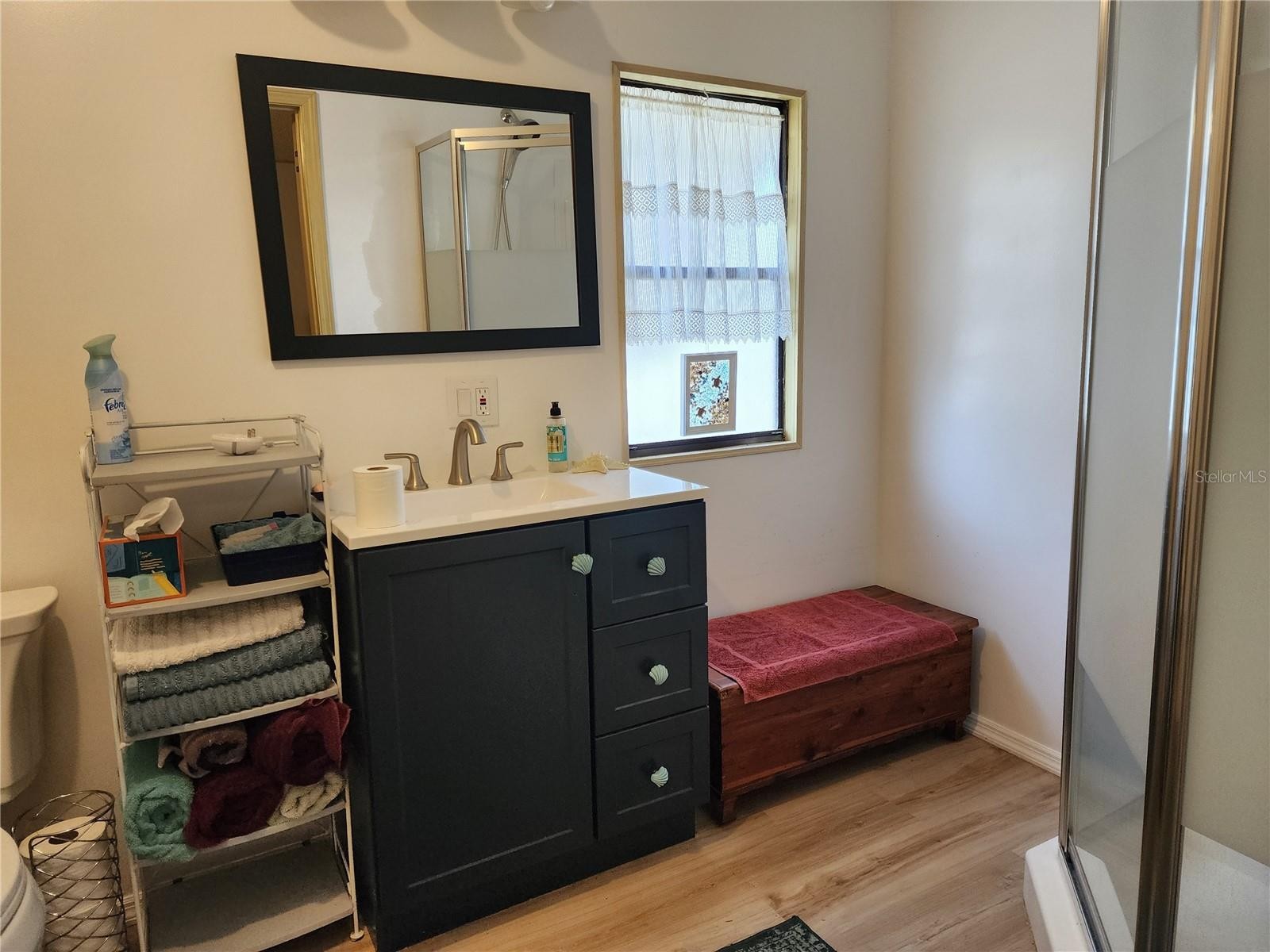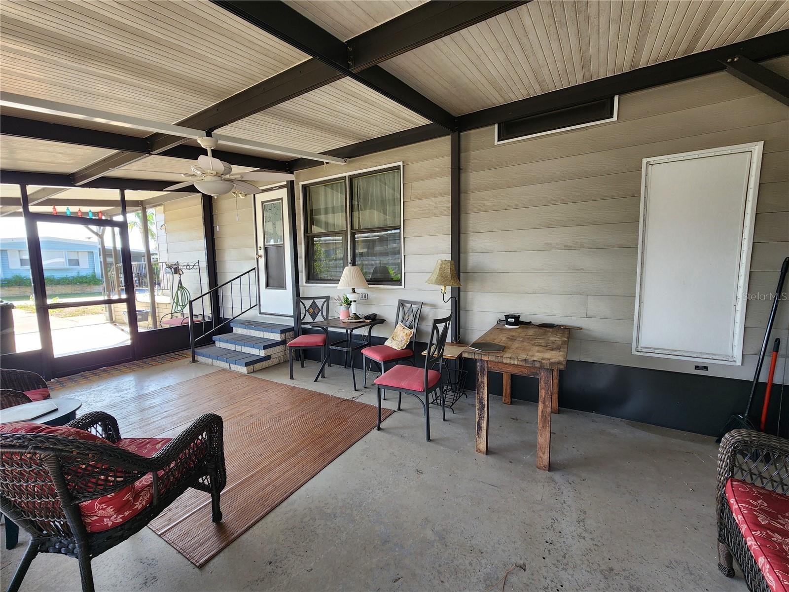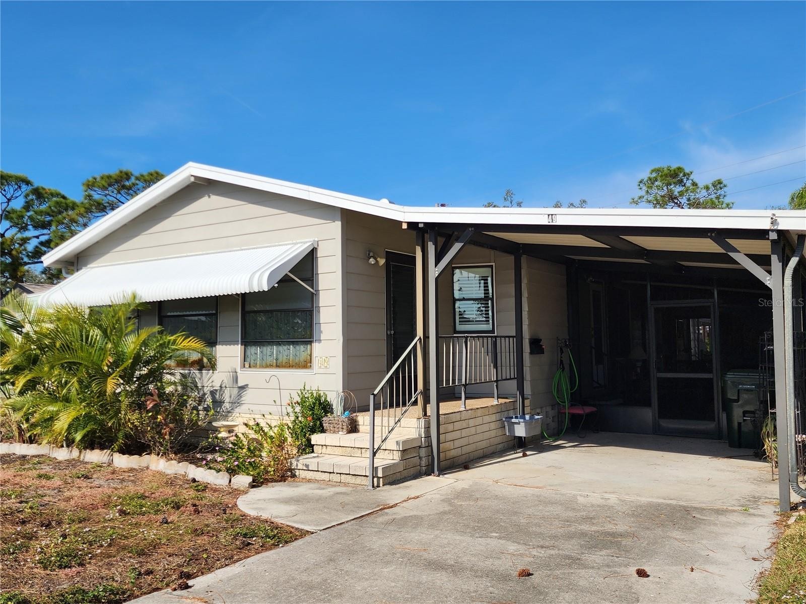 Discover the charm of this light-filled 2-bedroom, 2-bath home offering over 1,000 sq ft under air. Step inside to an open floorplan enhanced by low-maintenance laminate flooring and cathedral ceilings that create a bright, spacious feel. The updated kitchen is a standout with shaker-style cabinetry, granite countertops, stainless steel appliances, and a convenient breakfast bar. It flows seamlessly into the dining and living areas—perfect for entertaining or everyday comfort. The oversized primary bedroom features high ceilings and an inviting retreat-like atmosphere. Its spacious en suite bathroom includes a walk-in shower plus an in-home washer for added convenience. The second bedroom makes an ideal guest room, office, or craft space. Enjoy two expansive lanais: one off the great room and another at the front of the carport. The front lanai, enclosed with windows, creates a welcoming indoor/outdoor living space. A bonus outdoor storage room offers a washer and dryer along with ample shelving for beach gear, golf equipment, and more. Located just 3.9 miles from Manasota Beach, Oak Grove offers a friendly, active community with amenities including a heated pool, clubhouse, billiards, bocce, shuffleboard, and more. The Acorn Club hosts bingo, crafts, dinners, dances, exercise classes, and plenty of opportunities to stay social and engaged. With a low monthly association fee of $130 covering grounds maintenance, this turn-key furnished home is an exceptional opportunity for easy Florida living. Cash sale only. Don’t miss your chance—schedule your tour today and embrace the Oak Grove lifestyle!