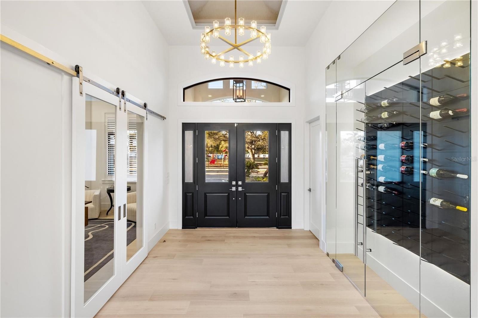 Nestled in the heart of West of the Trail, this luxury single-story estate represents the pinnacle of modern living. Encompassing 3,262 square feet, the home features 4 bedrooms, 4 full bathrooms, and 2 half baths, all thoughtfully designed for both comfort and functionality. Set on an expansive 15,930-square-foot lot, the residence offers tranquility just moments from the shops and dining of Southside Village. Enjoy the convenience of a circular driveway with a custom paver design and garage space for three cars. With striking architecture, impeccable craftsmanship, and beautiful, thoughtfully curated finishings—showcasing detailed trim work and refined design throughout—this residence delivers sophistication and all-inclusive resort-style living in one of the area’s most desirable locations. Inside, soaring 18-foot vaulted ceilings and custom tray ceilings enhance the open-concept layout, while 12-foot full pocket sliders seamlessly connect indoor and outdoor living spaces. The living room is anchored by a sleek fireplace, creating a warm yet modern focal point. The chef’s kitchen is equipped with professional-grade gas appliances, a waterfall-edge quartz island, custom cabinetry, and an expansive butler’s pantry for effortless entertaining. A glass-enclosed wine display and tray ceiling details add dramatic appeal. The primary suite features 14-foot ceilings and a spa-inspired bath with a freestanding soaking tub, dual vanities, and a luxurious walk-in shower. All bedrooms include custom California Closets. A designated large office, spacious laundry room, and private gym complete the interior amenities. The home also has a full security system installed. Outdoors, the resort-style backyard showcases a heated saltwater pool and hot tub spa with elegant water features. The back patio, finished with a Brazilian hardwood ceiling, is enhanced with remote-controlled mosquito blinds for year-round comfort, as well as a full sound system that can be app controlled. A fully equipped outdoor kitchen, fire pit, and outdoor SunBrite TV create the ultimate entertaining space, while a private putt-putt golf course adds a one-of-a-kind touch to this exceptional property. Please let us know how we can help and give us a call to set up a tour of this beautiful home. Thank you.