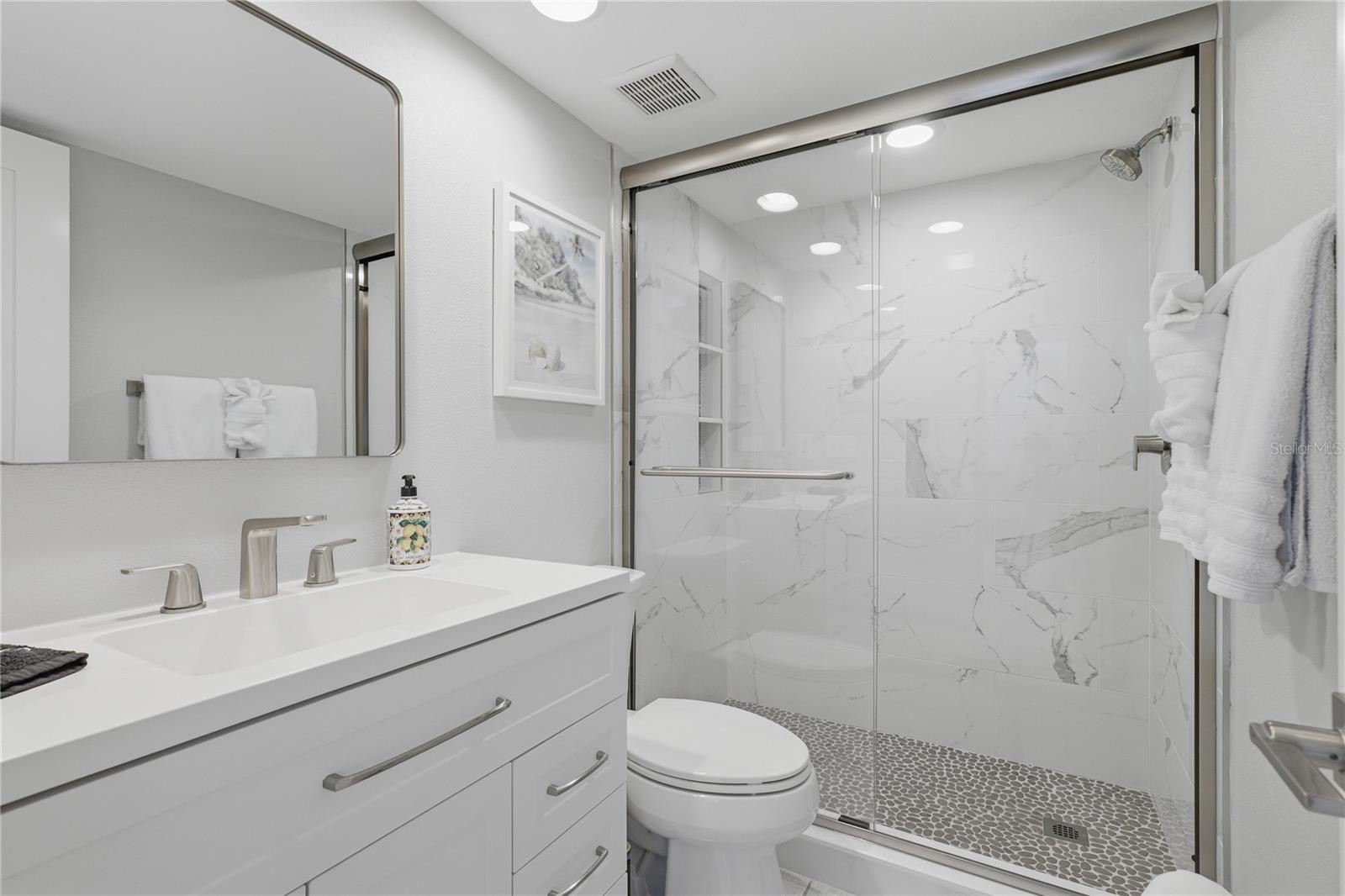 Welcome to Runaway Bay an island-style waterfront community in Bradenton Beach offering the ideal combination of coastal living and income potential, with weekly rentals permitted. This beautifully updated 2-bedroom, 2-bath ground-level condo showcases breathtaking open water views across Anna Maria Sound. Step inside to discover a stunning, fully remodeled coastal kitchen that has been thoughtfully opened to the living and dining areas creating a bright, airy space perfect for entertaining while maximizing the spectacular bay views. Natural light pours in, drawing your attention straight to the water. The spacious primary suite offers a peaceful retreat, where you can wake each morning to unforgettable sunrises over the bay. A generous walk-in closet and a beautifully renovated ensuite bath add to the comfort and functionality. The guest bedroom is equally inviting and conveniently located next to the updated guest bathroom. Start your day with coffee on the private lanai as the sun rises, and spend your evenings watching dolphins play and enjoying the tranquil coastal surroundings. This condo has been extensively updated, including the kitchen, bathrooms, flooring, trim, doors, appliances, water heater, A/C system, and furnishings making it truly move-in or rental ready. Runaway Bay has also undergone community-wide improvements, including new roofs and gutters, and offers an impressive lineup of resort-style amenities: deeded beach access, a newly constructed oversized bayfront observation and fishing pier, the largest heated pool on Anna Maria Island (recently renovated), resurfaced pickleball and tennis courts, shuffleboard, a kayak launch, multiple grilling stations, and a clubhouse with a fitness center currently being refreshed. Whether you’re seeking a personal island escape or a high-performing investment property, this condo delivers with strong rental history and bookings already secured.