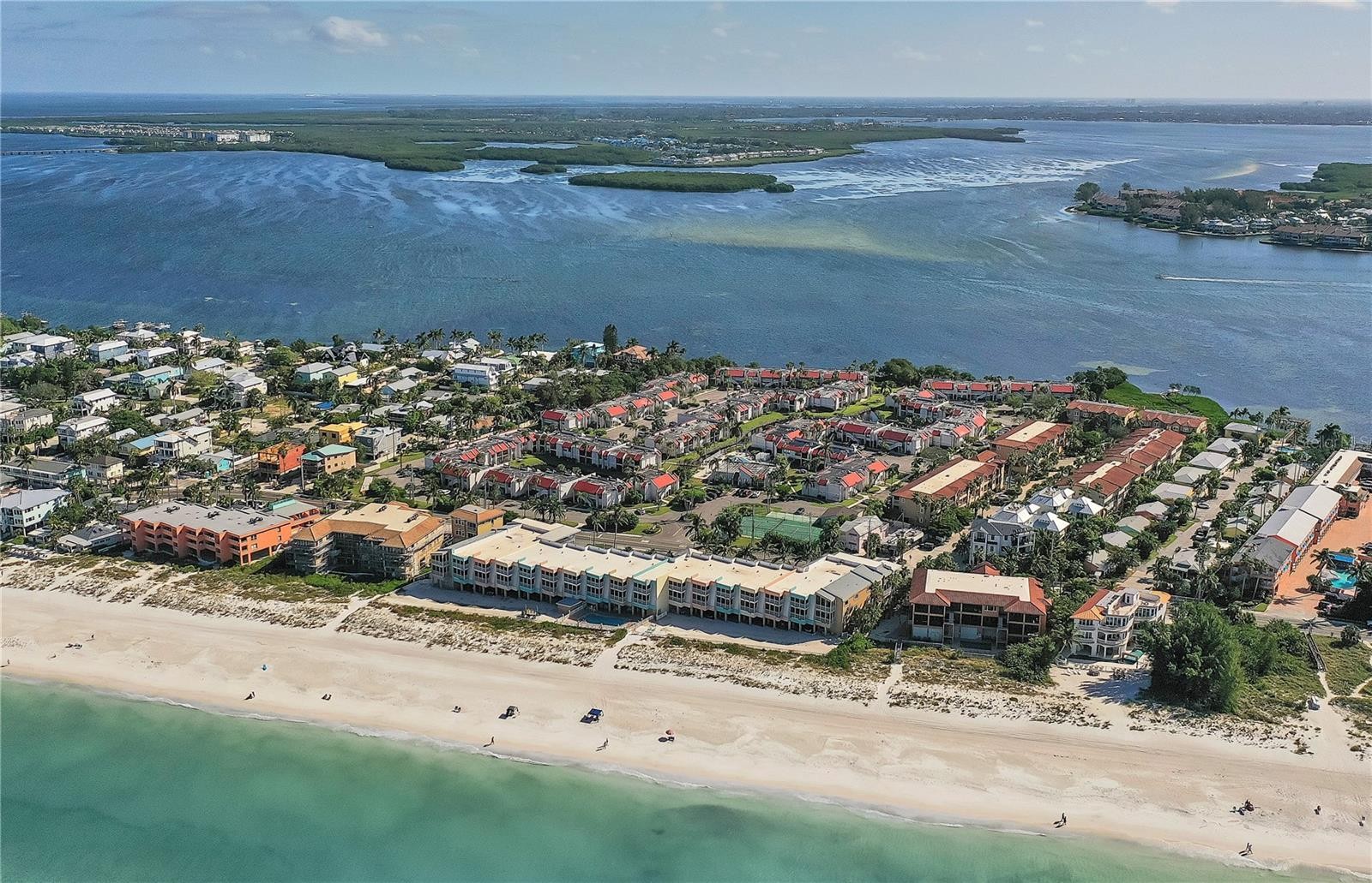 Welcome to your piece of paradise on Anna Maria Island! This meticulously, completely remodeled 2-bedroom, 2-bathroom ground-floor condo is not only a luxury island retreat but also an investment opportunity. With just a short walk to the pristine beaches and the intercoastal waters on the other side, you won't ever want to leave! Forget about the hassle of renovations; this condo comes with recent upgrades, including impact windows (installed in 2022), HVAC system (installed in 2022), interior electrical panel (2022), exterior electrical panel (2024). 2025 boasts many upgrades after the hurricanes in fall of 2024 such as; A new roof, ALL kitchen appliances, quartz counter top, back splash and cabinets, new bathrooms, washer & dryer and all new furnishings. The community has also had many upgrades to the grounds and amenities offered at Runaway Bay. The property is offered fully furnished with rental potential mindfully thought out in every decision. The enclosed porch was replaced in 2025 and new outdoor furniture was added. This is the perfect place to sit and sip while admiring the fountain in the pond and feeling the island breeze. The condo community of Runaway Bay offers a wide array of amenities, including a heated swimming pool, clubhouse, fitness center, tennis courts, pickleball, bocce ball, kayak launch, shuffleboard, and recreational areas. Live a coastal lifestyle by riding the free trolley or taking a stroll to the nearby restaurants, shops, and beaches. Don't miss your opportunity to live your dream and be part of the AMI family! The unit opened on the vacation rental market in late fall 2025 and already has several bookings in place from 1/14/26 - May 2026.