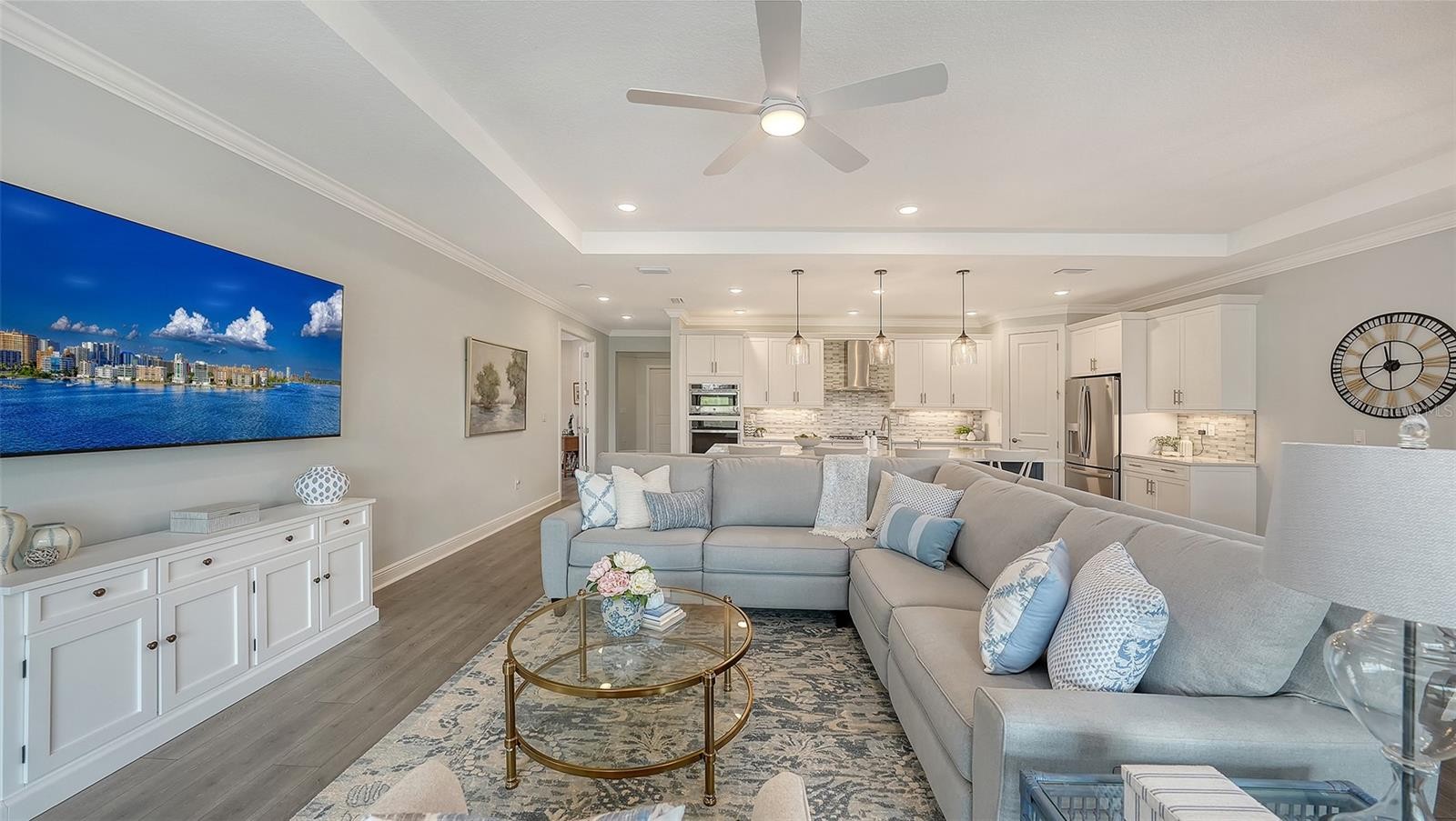 Experience elevated, easy living in the vibrant 55+ community of Cresswind at Lakewood Ranch. This lightly lived-in Fiesta floor plan by Kolter Homes features 3 bedrooms, 3 bathrooms, and a dedicated office space—blending comfort, functionality, and thoughtful upgrades throughout. Situated on a private homesite in the neighborhood, the property offers added space and privacy, while the extended covered lanai provides a wonderful outdoor setting for entertaining, relaxing, or enjoying Florida’s beautiful year-round weather. Inside, the open-concept layout flows effortlessly, creating an ideal balance of elegance and everyday livability. The beautifully upgraded kitchen showcases GE Profile stainless steel appliances, quartz countertops, a spacious center island, decorative tile backsplash, and soft-close cabinetry with convenient pull-out drawers—perfect for both casual meals and hosting guests. Upgraded finishes continue throughout the home, including enhanced flooring, quartz counters, and stylish cabinetry and hardware. The spacious primary suite offers a peaceful retreat and features a spa-inspired bath designed for relaxation as well as a large walk-in closet, while the guest bedrooms and baths maintain the home’s cohesive, upscale feel. Residents of Cresswind enjoy a pet-friendly, amenity-rich lifestyle across more than 250 acres, featuring pickleball and tennis courts, walking trails, bocce, a dog park, resort-style pool and spa, resistance pool, event lawn, and abundant social spaces. The resident-only clubhouse offers a state-of-the-art fitness center, yoga studio, art and ceramics rooms, card spaces, and a full calendar of activities led by a full-time lifestyle director. Beyond the gates, you’ll enjoy the exceptional convenience and lifestyle of Lakewood Ranch—one of the nation’s top-selling master-planned communities—offering nearby shopping, dining, championship golf, medical facilities, farmers markets, parks, trails, and year-round events, all just a short drive to the world-famous Gulf Coast beaches. This home offers the perfect balance—an active, engaging community when you want connection, and a comfortable, low-maintenance retreat when you’re ready to unwind. It’s more than a home—it’s a lifestyle designed for your next chapter.