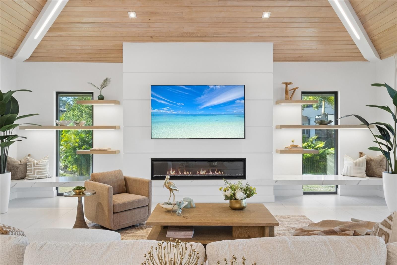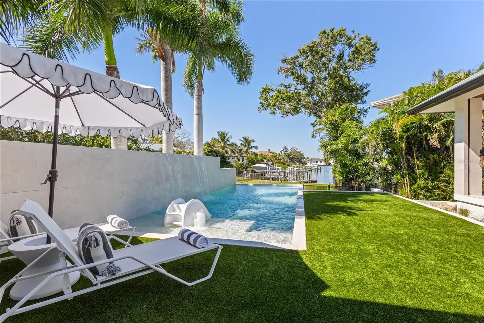 Welcome to 1808 Flower Drive, a resort-style masterpiece located in the highly coveted Harbor Acres neighborhood — one of Sarasota’s most prestigious addresses. This 4-bedroom, 6-bathroom home spans 5,450 square feet of meticulously designed living space, blending timeless elegance with cutting-edge smart home technology throughout. Completely renovated in 2022, this home offers the ultimate in luxury and comfort. The expansive chef’s kitchen features premium appliances, a built-in office nook, breakfast retreat, and a walk-in wine cellar, perfect for the culinary enthusiast. The primary suite serves as a serene retreat, highlighted by an oversized spa-style shower, dual vanities, and designer finishes. The upstairs addition provides flexible living space—ideal for use as a media room, game room, or private guest suite. Step outside to your own private oasis, complete with a putting green, turf lawn, and resort-style outdoor living area designed for entertaining. Whether relaxing poolside, hosting al fresco dinners, or enjoying sunset cocktails, this property delivers the quintessential Florida lifestyle. This stunning residence invites you to experience the best of Sarasota waterfront living.