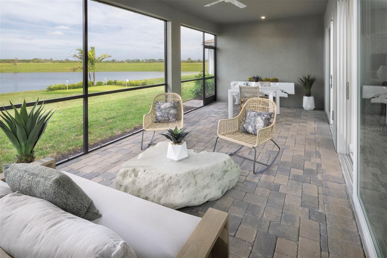 Step into the Merigold, a beautifully finished single-family home where sunlit rooms, flowing open spaces, and refined details create an atmosphere that feels both inviting and effortlessly polished. This thoughtfully planned layout offers 2 bedrooms, 2 baths, a study, and a spacious 2-car garage, paired with the warm curb appeal of the Craftsman elevation. Inside, the main living areas are dressed in large-format wood-look tile laid in an elegant staggered pattern, lending the home a clean, natural foundation that’s both stylish and easy to maintain. The kitchen features soft gray cabinetry with crown molding, crisp white quartz countertops, a generous island, and a stacked tile backsplash that adds subtle texture. The owner’s suite includes a relaxing bedroom, a large walk-in closet, dual sinks, and a beautifully tiled walk-in shower with floor-to-ceiling tile. The second bathroom boasts an upgraded recessed shower with fresh, bright tilework. Soft neutral-tone carpet warms both bedrooms, while the study continues the same handsome tile as the main living areas. Impact-rated windows provide added peace of mind and year-round comfort. Additional highlights include 8' interior doors, brushed-nickel finishes, an included washer and dryer, and a screened lanai with paver flooring for enjoying breezy mornings and peaceful evenings. Residents enjoy an impressive 11-acre amenity campus with a resort-style pool, lap pool, spa, fitness studios, pickleball and bocce courts, gathering lawns, lakeside seating, plus a lively dining and social scene at the Bright Bar and Daily Drip café. All of this is located just minutes from Downtown Wellen’s waterfront restaurants, events, and boutiques, as well as Gulf beaches known for soft white sand and glowing sunsets, with access to miles of trails that wind throughout the Wellen Park community. ***Photos, renderings and plans are for illustrative purposes only and should never be relied upon and may vary from the actual home. Pricing, dimensions and features can change at any time without notice or obligation. The photos may be from a furnished model home and not the home offered for sale.