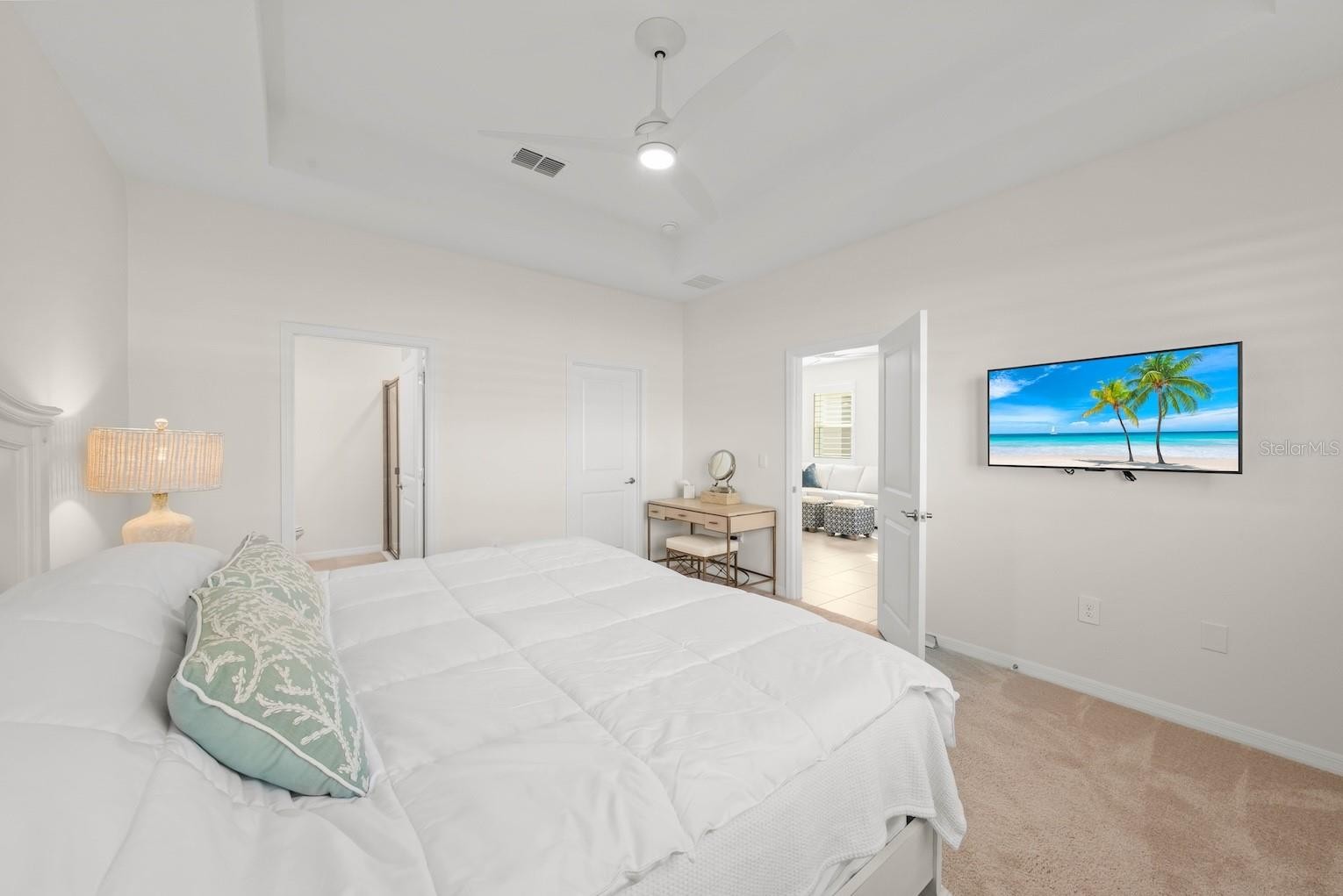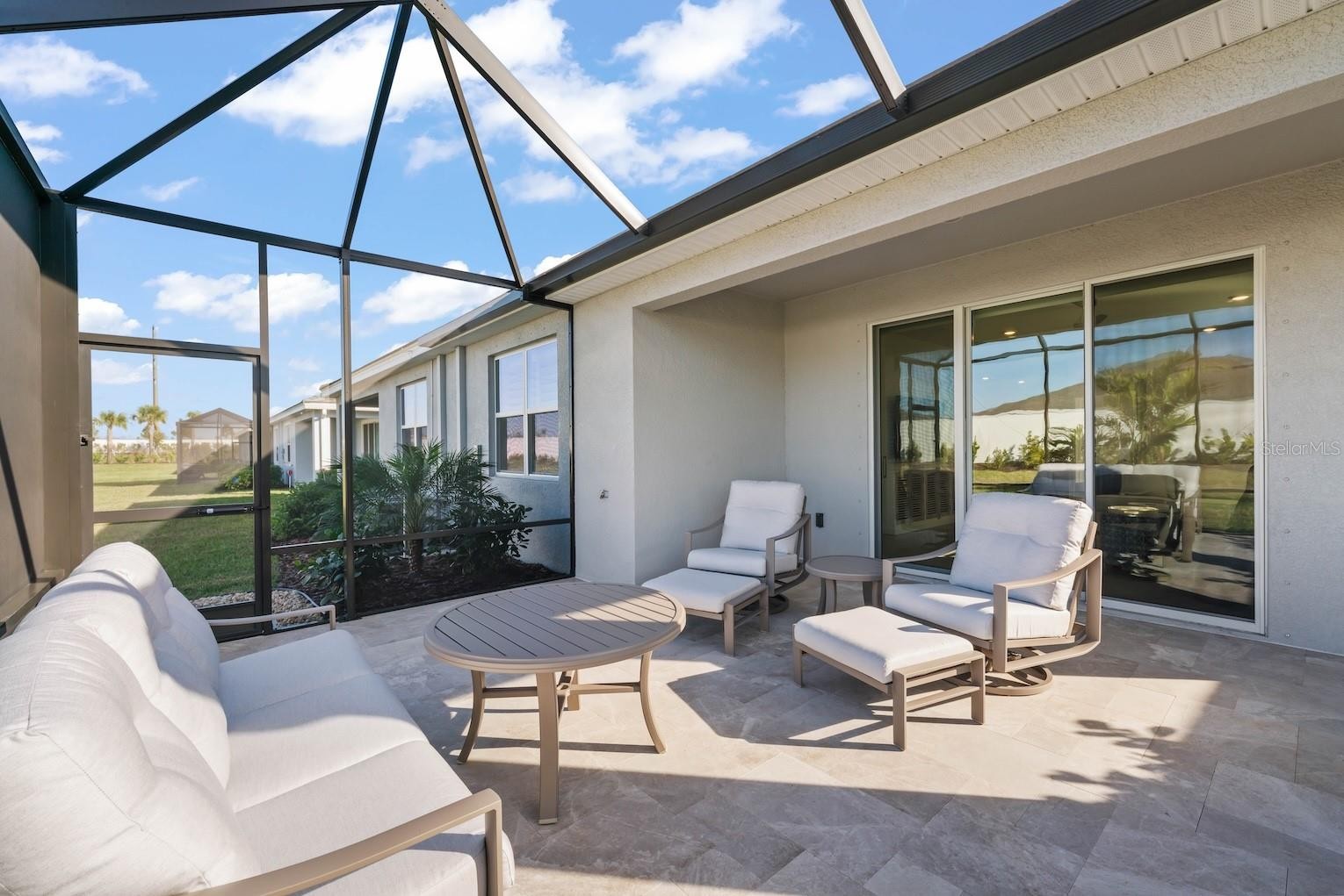 Welcome home ! This beautifully 2024 BUILT UPGRADED 3 BED, 2 BATH VILLA with a TILE ROOF and 2-car garage, located in the highly desirable STAR FARMS AT LAKEWOOD RANCH is ready for its new owners! This meticulously maintained home offers extensive upgrades throughout, creating a move-in ready Florida retreat. Interior features include UPGRADED PAINT on walls and ceilings, PLANTATION SHUTTERS on all windows, CUSTOM HUNTER DOUGLAS ELECTRIC BLINDS on the sliders, upgraded ceiling fans, and leak detection monitoring devices under kitchen and bath sinks plus laundry area for added PEACE OF MIND. Enjoy seamless indoor/outdoor living on the EXPANSIVE SCREENED IN LANAI with MARBLE TILE FLOORING, complete with electrical grounding in place for a future spa. The exterior showcases upgraded, extensive LANDSCAPING for your own personal oasis, and has professionally installed gutters specific to this floor plan. The 2-car garage features INSULATION in both the garage attic and garage door for improved energy efficiency, along with grounding of the exterior electrical box for lightning surge protection. Additional thoughtful upgrades include an installed medicine cabinet in the primary bath, plus towel racks and toilet paper holders in both bathrooms. Built with CONCRETE BLOCK, a TILE ROOF, and equipped with HURRICANE SHUTTERS, this home has it ALL! HOA fees include access to all resort-style amenities, gated entrances, and lawn care, offering true low-maintenance living. Community amenities feature a CLUBHOUSE, TIKI BAR / RESTAURANT, RESORT-STYLE POOLS (2), FITNESS CENTERS (2), PICKLEBALL COURTS, TENNIS COURTS, DOG PARKS, WALKING & BIKING TRAILS, AND SOCIAL EVENTS / GATHERING SPACES. Ideally located near shopping and dining, University Town Center (UTC) Mall, Downtown Lakewood Ranch, Waterside at Lakewood Ranch, top-rated schools, medical facilities, and Sarasota’s beautiful Gulf beaches. A rare opportunity to own a villa loaded with upgrades that truly lives like a custom home.